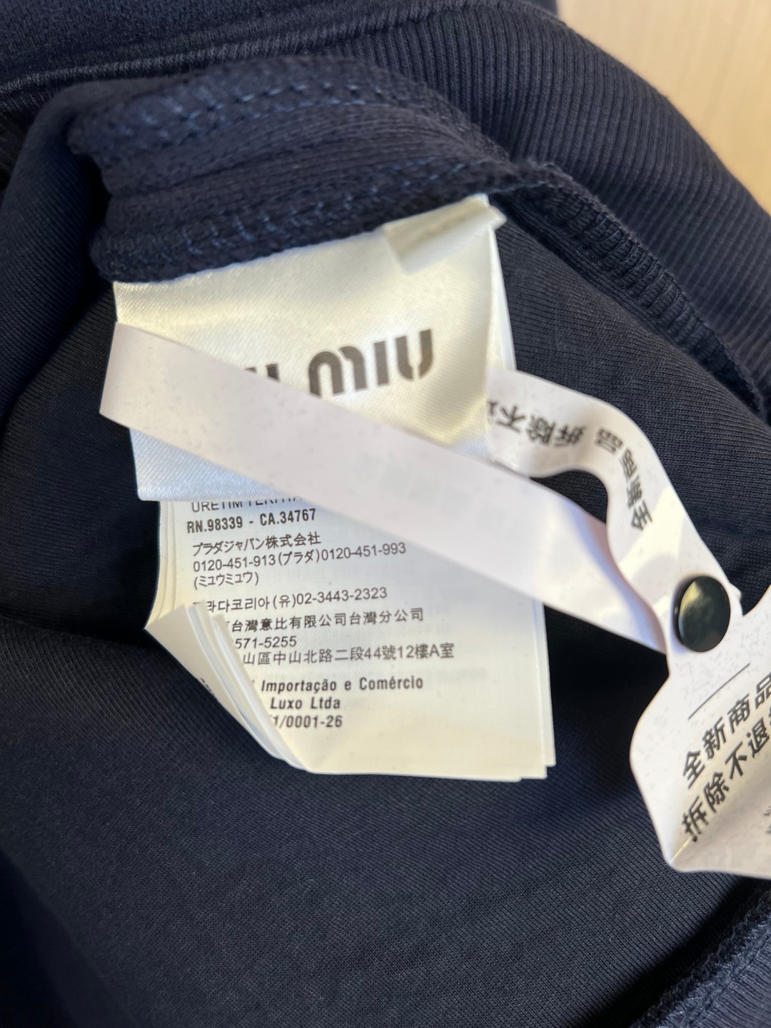 这款衣服是AAAAA 1:1 质量 (非常棒). 使用了和原版一模一样的材料. 商标部分也保持了和缪缪/Miu Miu一样. 图片拍摄是实物衣服拍摄, 您所收到的实物保证和我们图片一模一样.