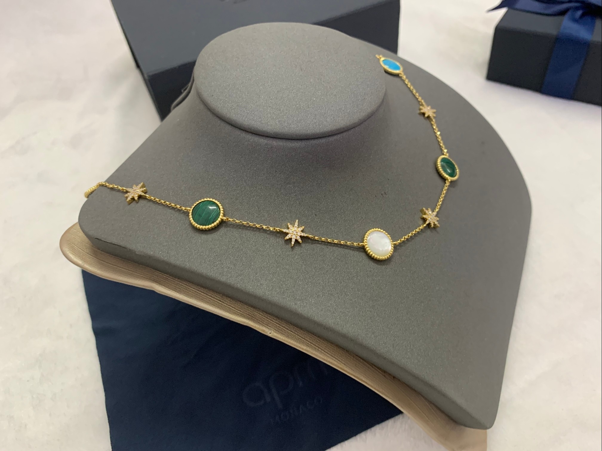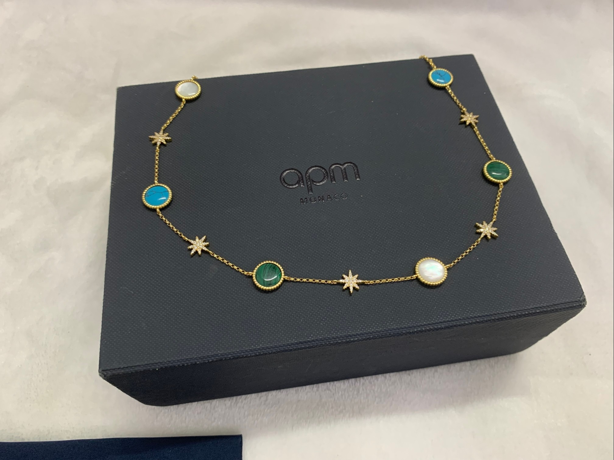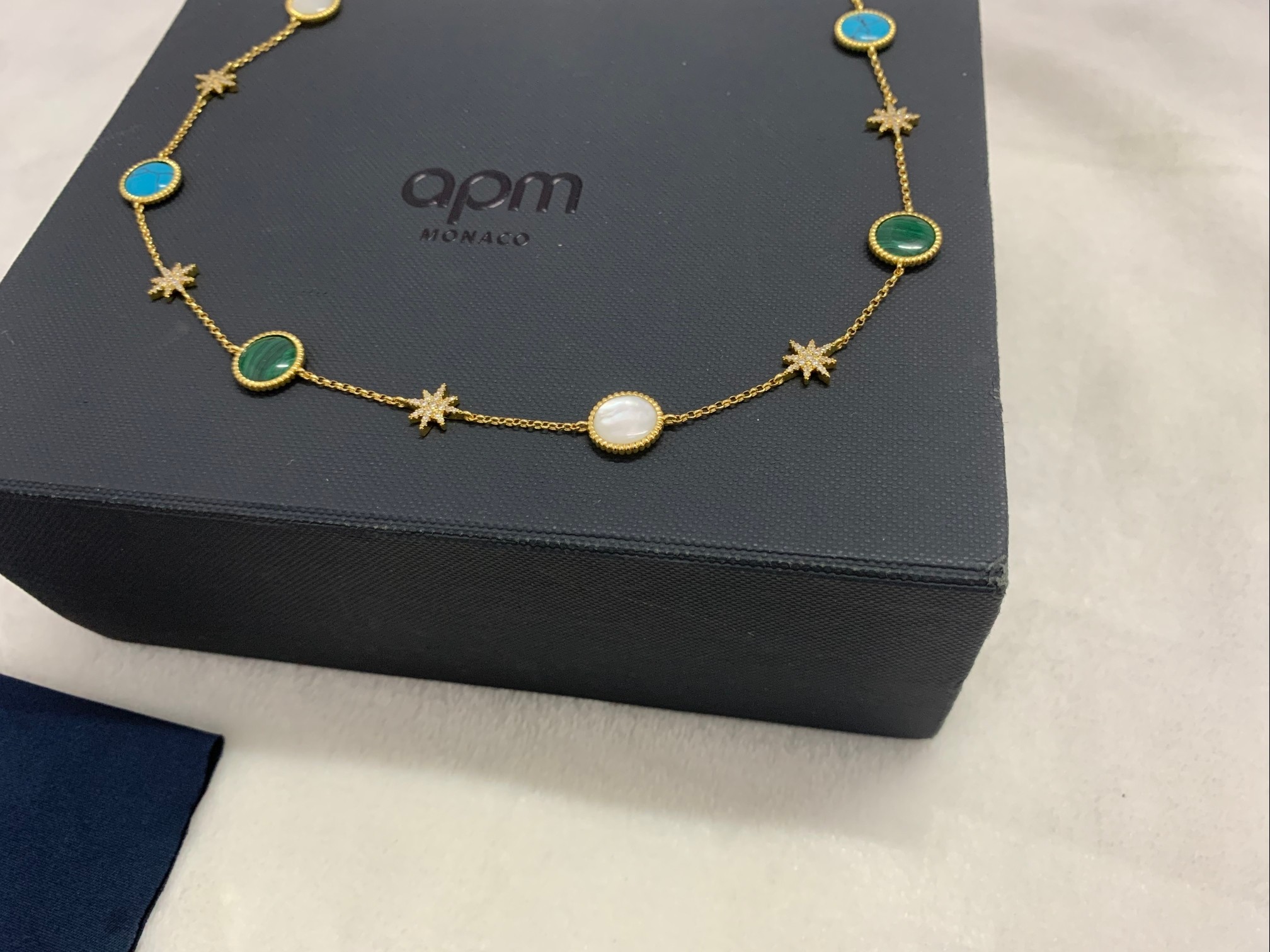 这款首饰是AAAAA 1:1 质量 (非常棒). 使用了和原版一模一样的材料. 商标部分也保持了和APM Monaco一样. 图片拍摄是实物首饰拍摄, 您所收到的实物保证和我们图片一模一样.