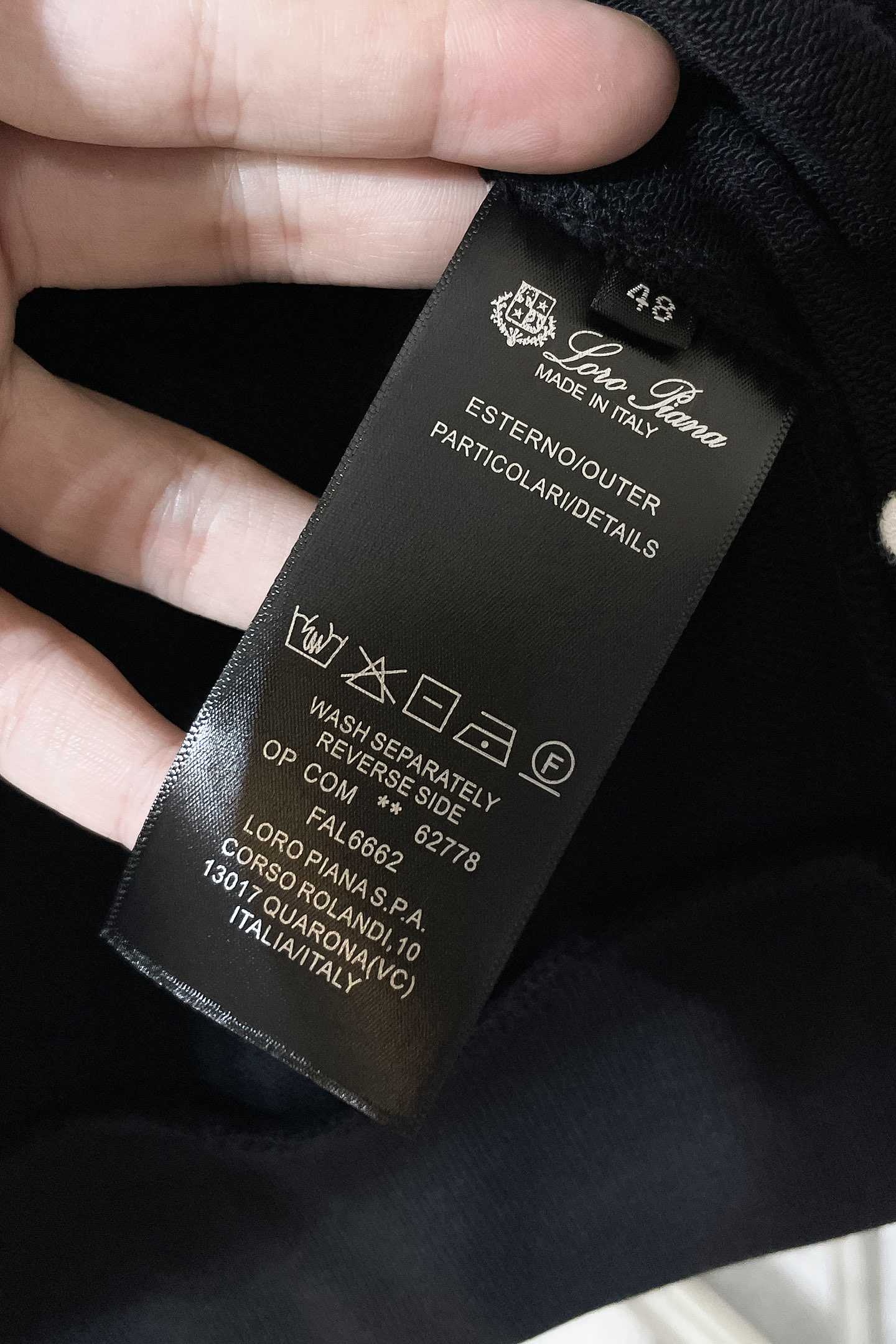 这款衣服是AAAAA 1:1 质量 (非常棒). 使用了和原版一模一样的材料. 商标部分也保持了和洛罗皮亚纳/Loro Piana一样. 图片拍摄是实物衣服拍摄, 您所收到的实物保证和我们图片一模一样.
