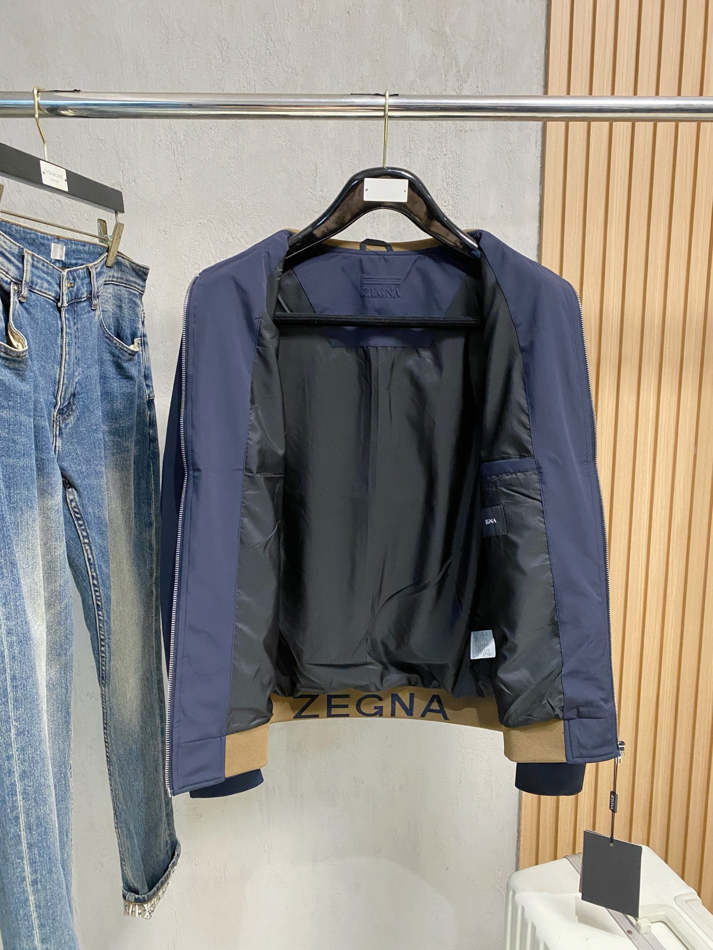 这款衣服是AAAAA 1:1 质量 (非常棒). 使用了和原版一模一样的材料. 商标部分也保持了和杰尼亚/Zegna一样. 图片拍摄是实物衣服拍摄, 您所收到的实物保证和我们图片一模一样.