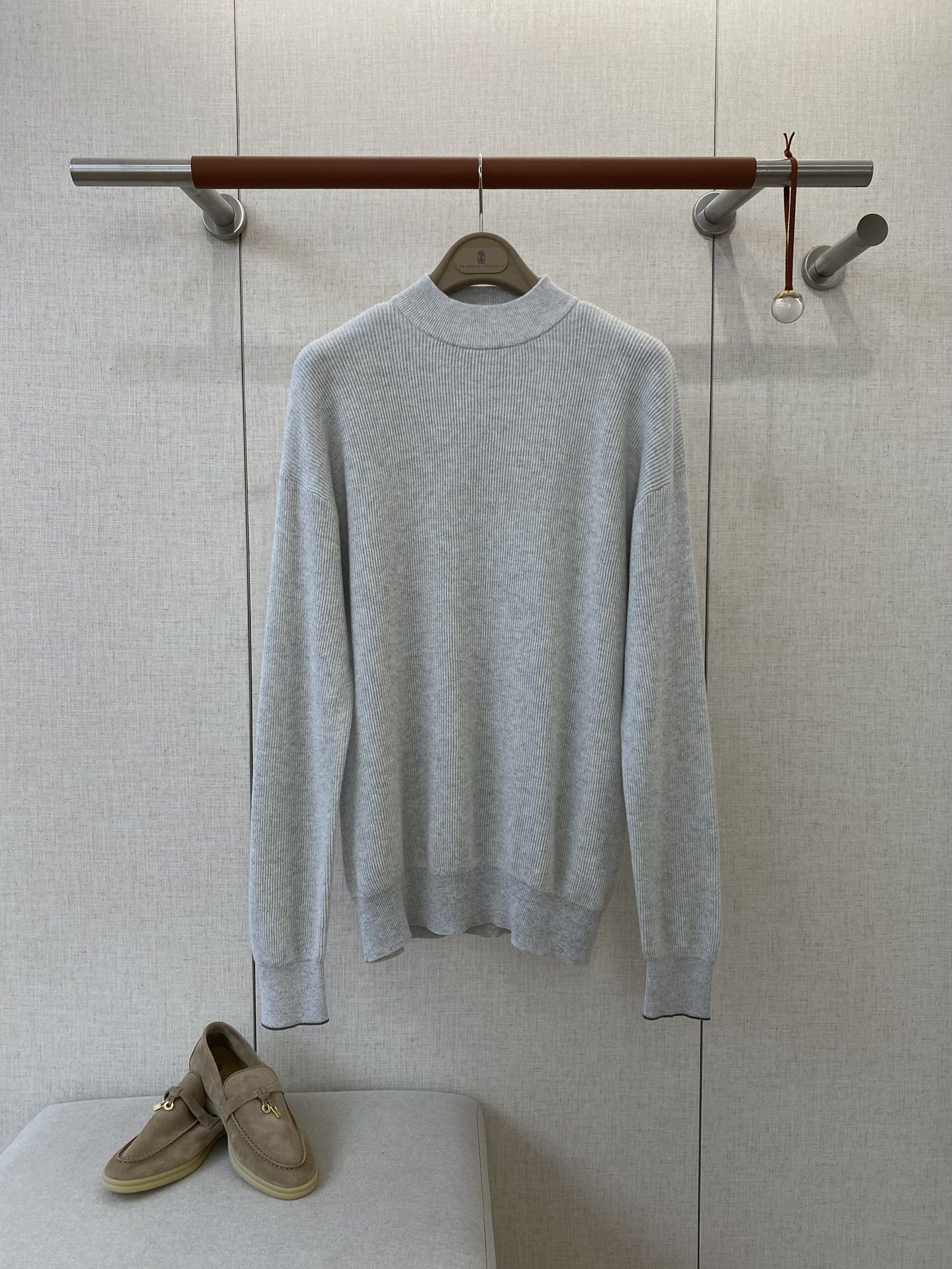 这款衣服是AAAAA 1:1 质量 (非常棒). 使用了和原版一模一样的材料. 商标部分也保持了和Brunello Cucinelli一样. 图片拍摄是实物衣服拍摄, 您所收到的实物保证和我们图片一模一样.