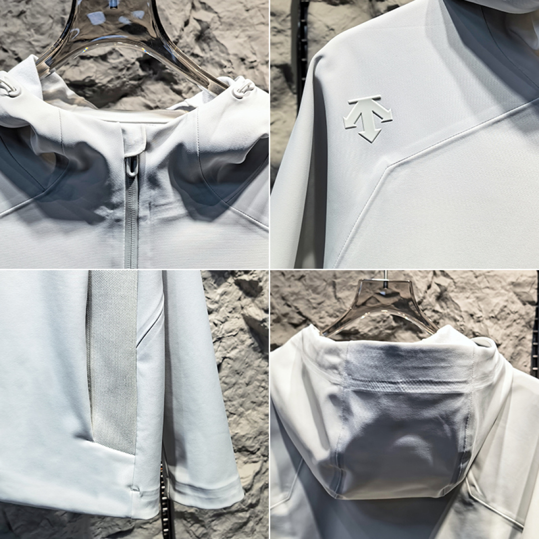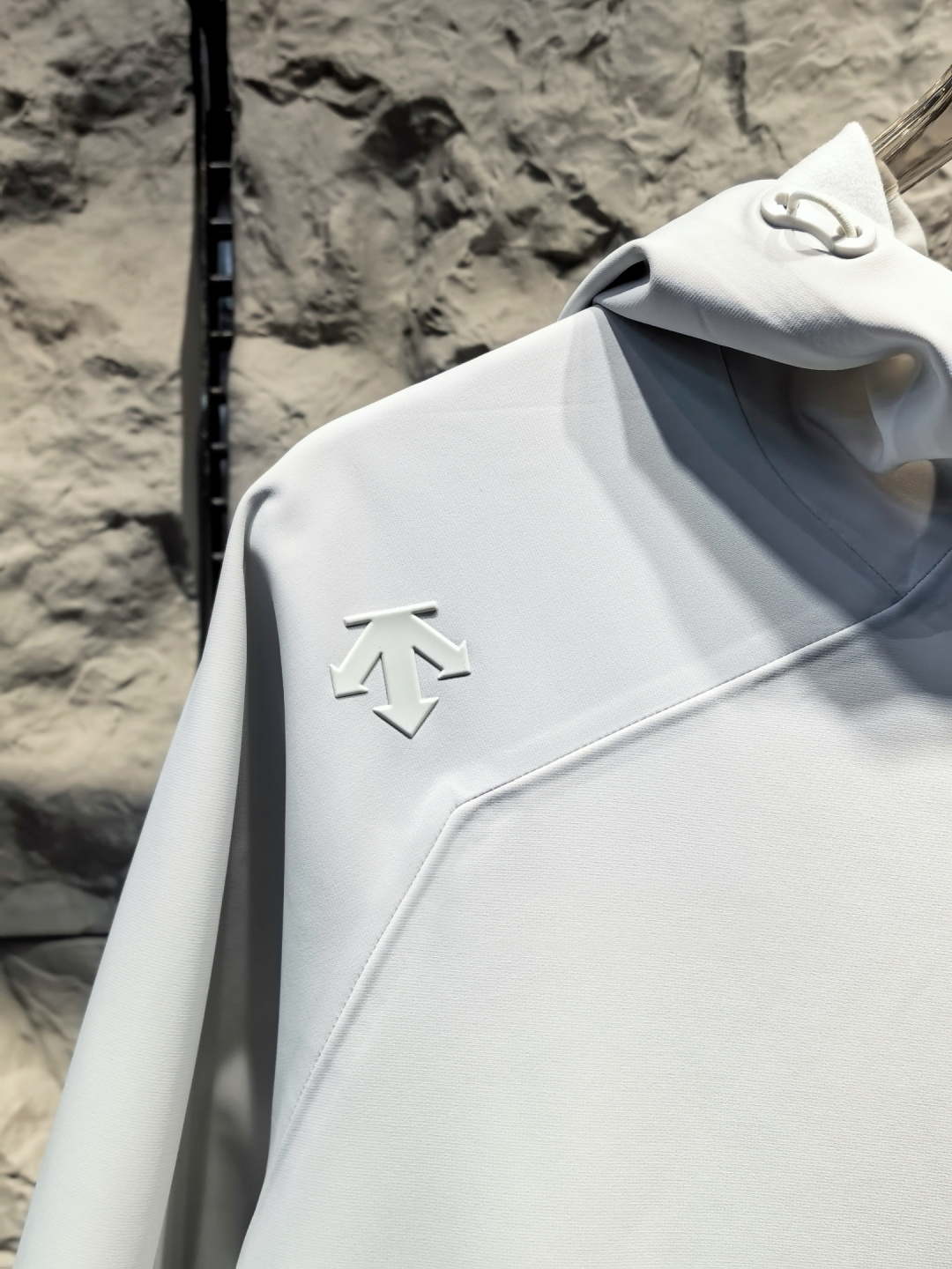 这款衣服是AAAAA 1:1 质量 (非常棒). 使用了和原版一模一样的材料. 商标部分也保持了和Descente一样. 图片拍摄是实物衣服拍摄, 您所收到的实物保证和我们图片一模一样.