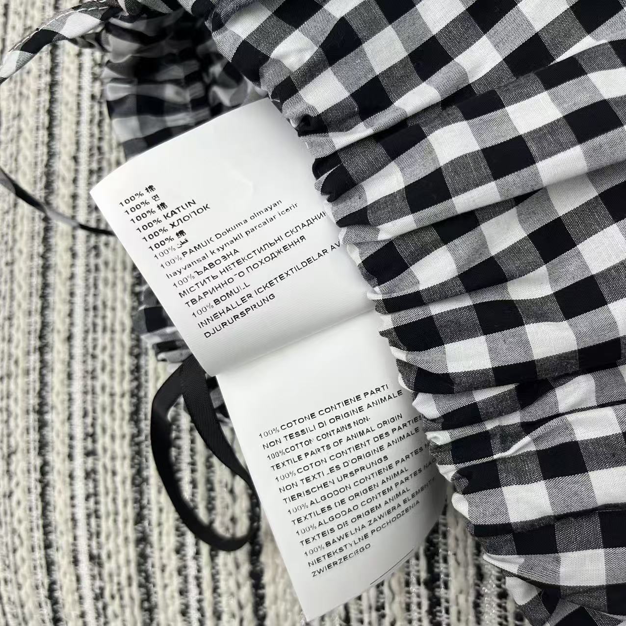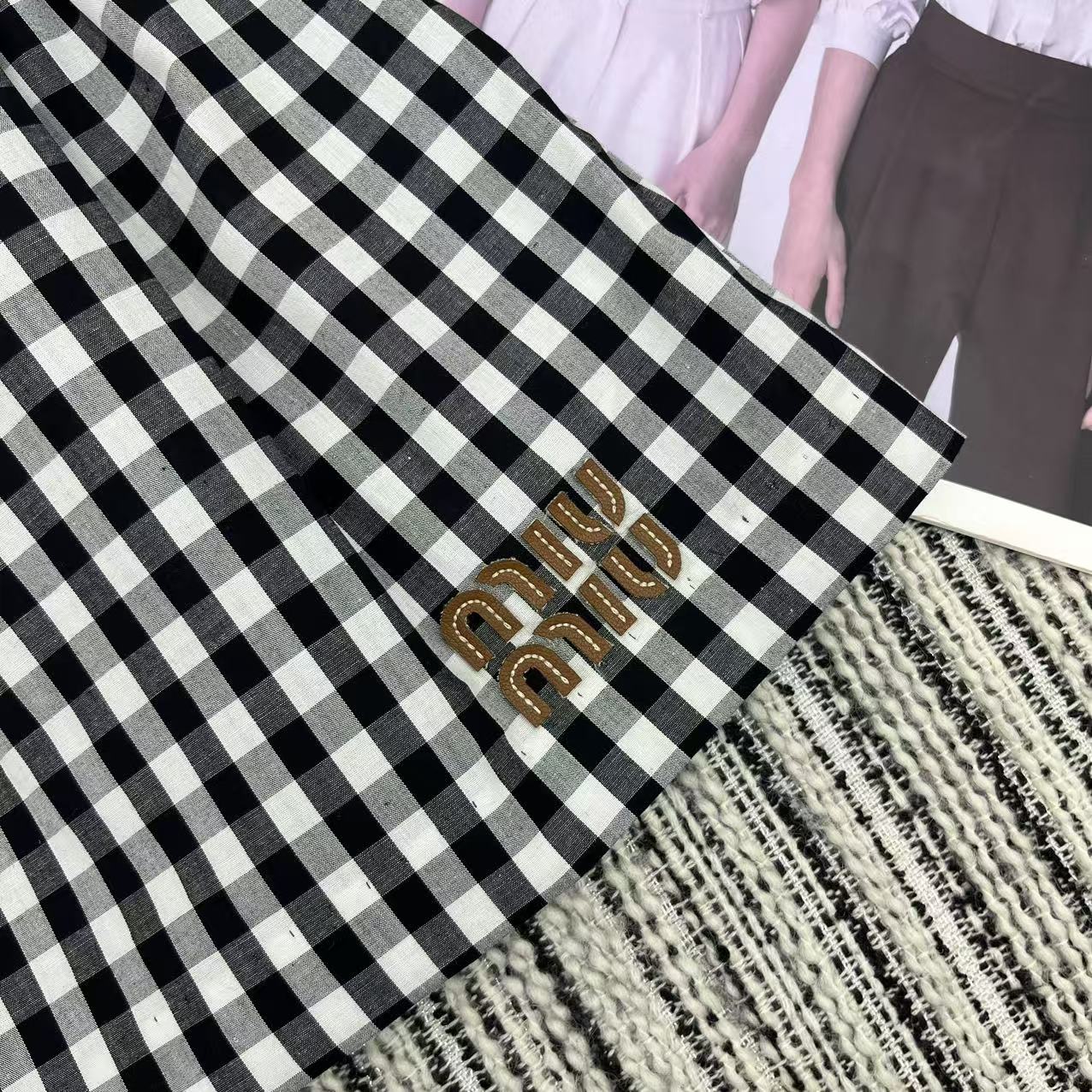 这款衣服是AAAAA 1:1 质量 (非常棒). 使用了和原版一模一样的材料. 商标部分也保持了和缪缪/Miu Miu一样. 图片拍摄是实物衣服拍摄, 您所收到的实物保证和我们图片一模一样.