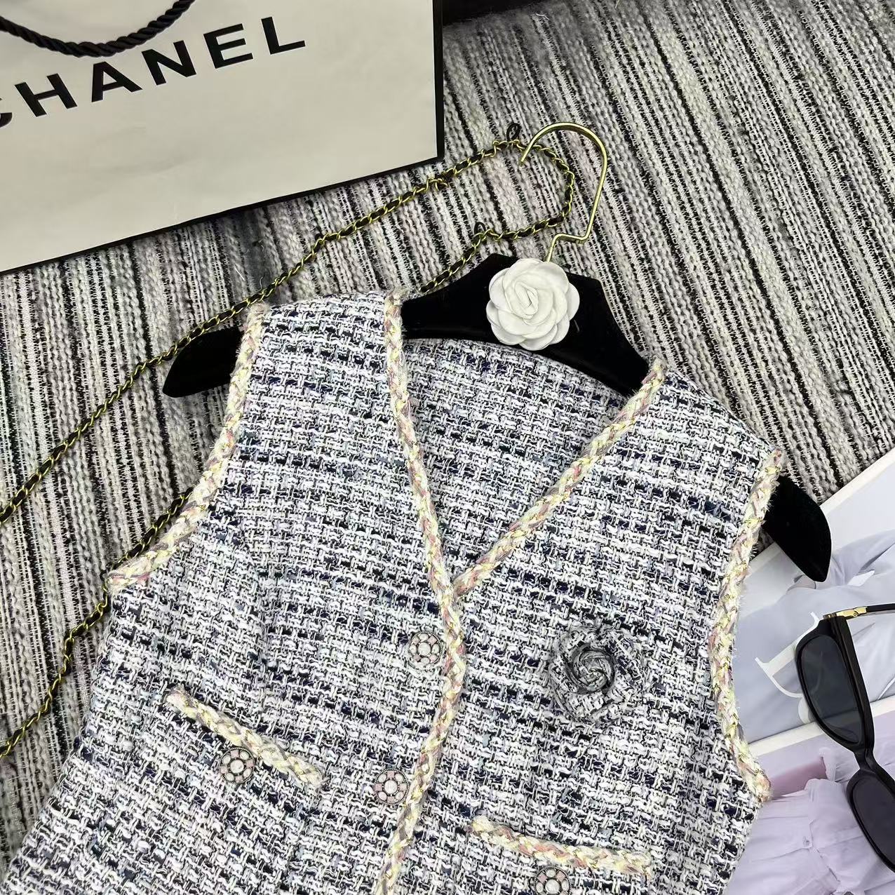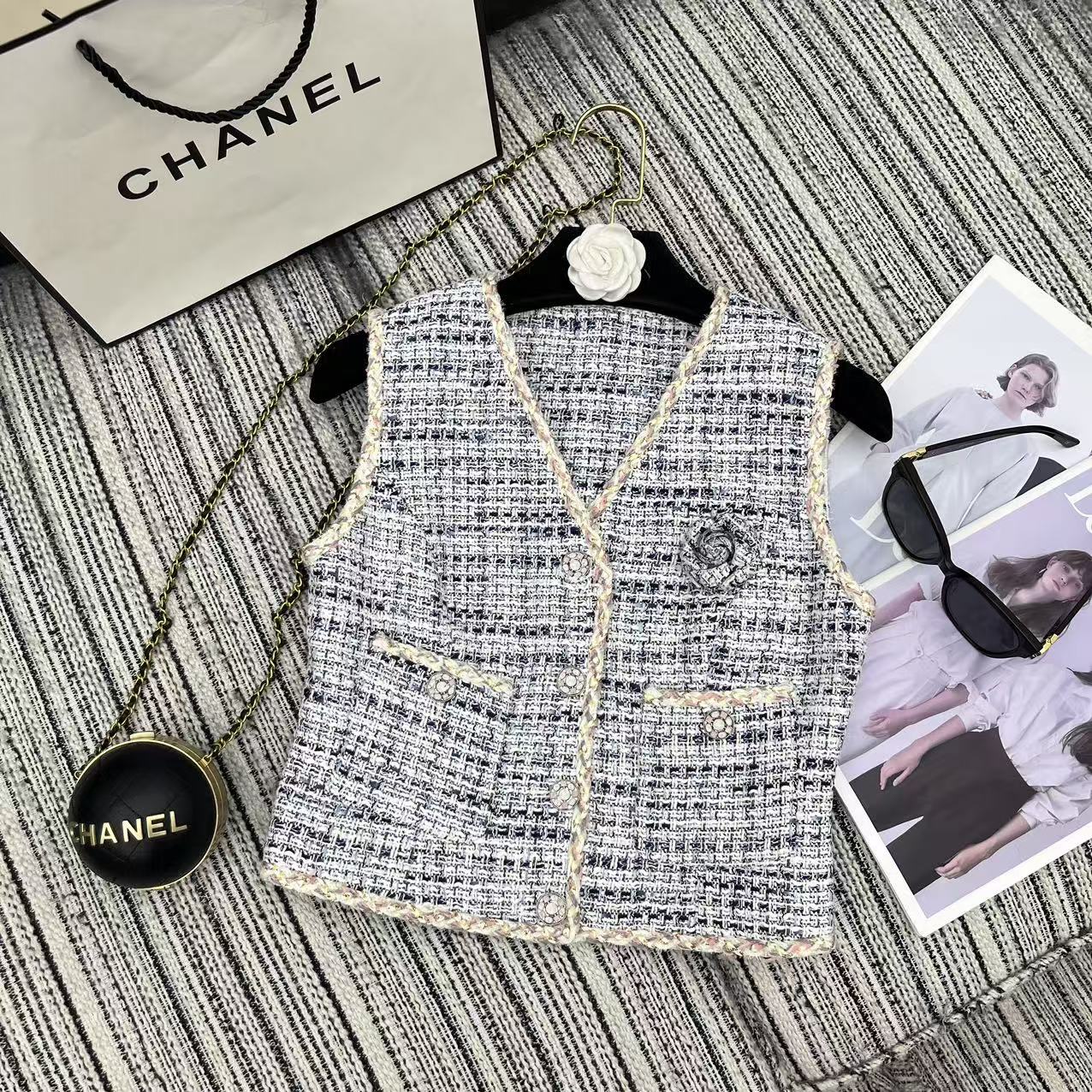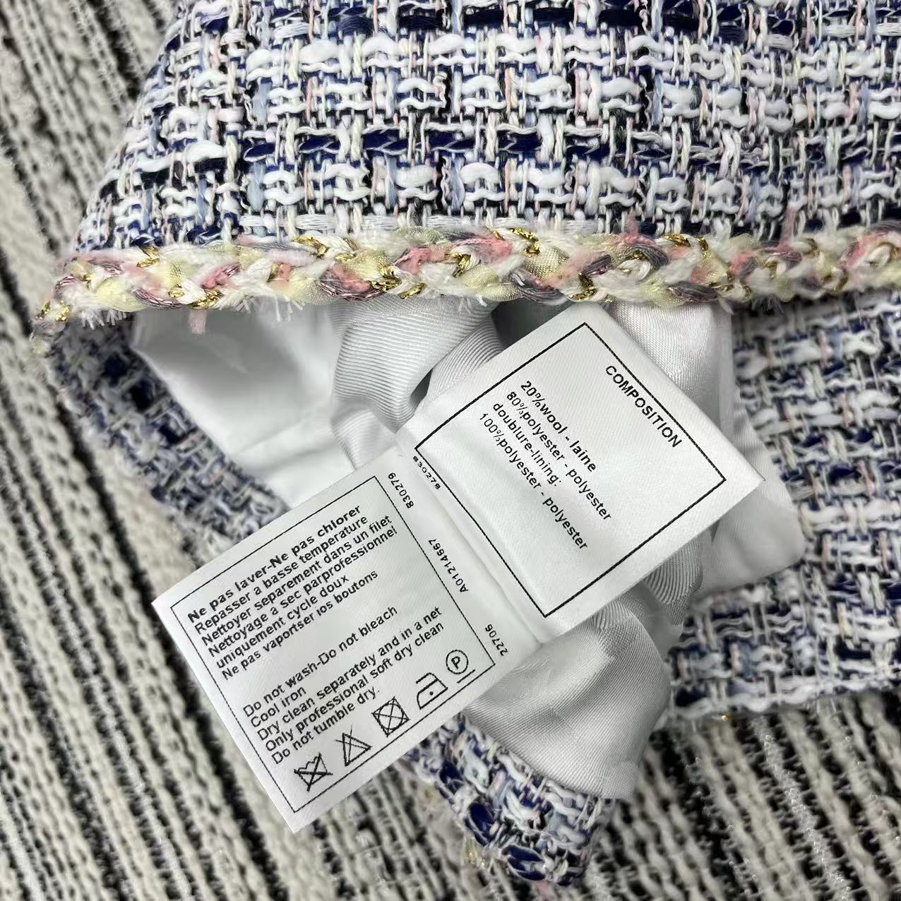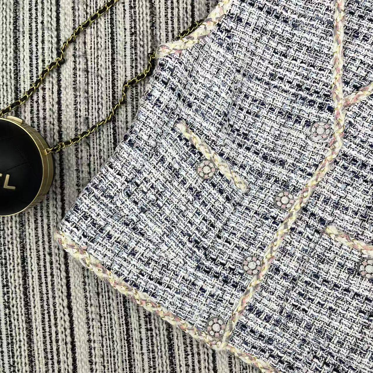 这款衣服是AAAAA 1:1 质量 (非常棒). 使用了和原版一模一样的材料. 商标部分也保持了和香奈儿/Chanel一样. 图片拍摄是实物衣服拍摄, 您所收到的实物保证和我们图片一模一样.