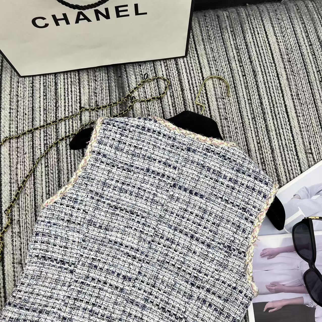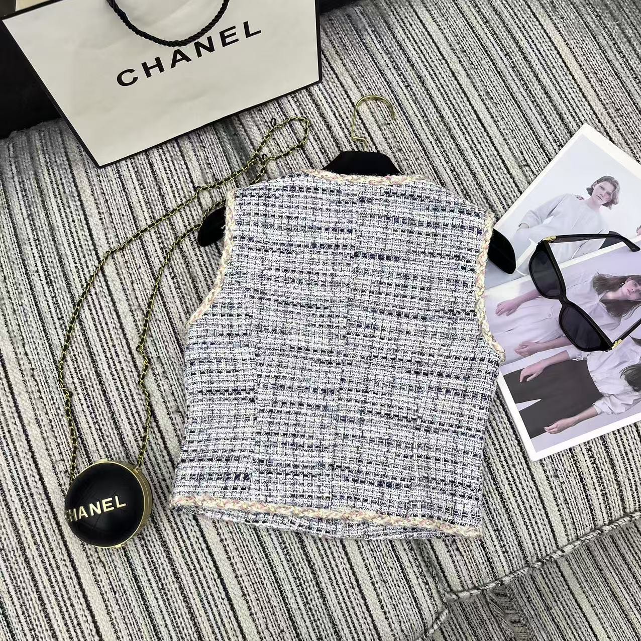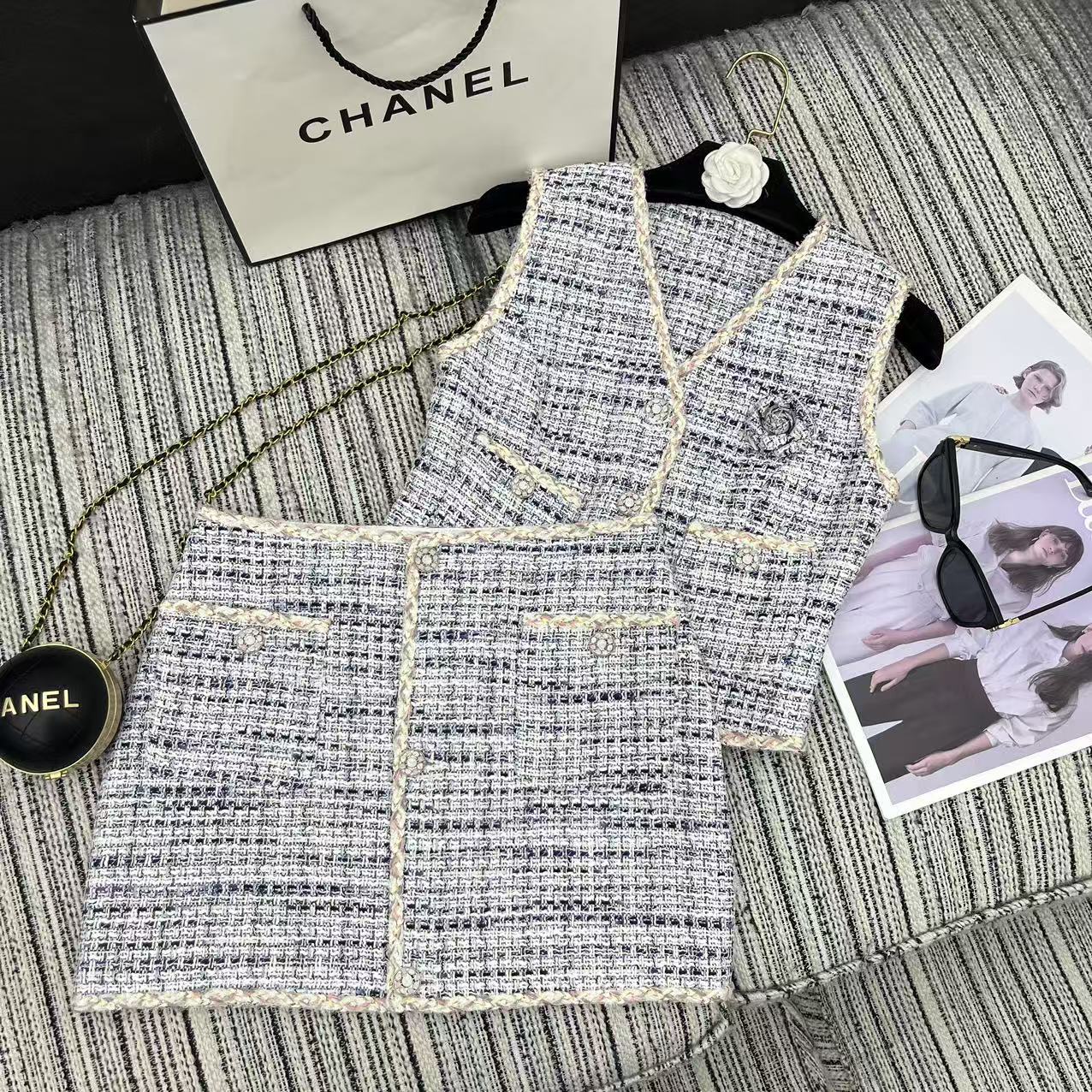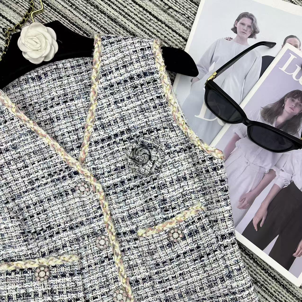 这款衣服是AAAAA 1:1 质量 (非常棒). 使用了和原版一模一样的材料. 商标部分也保持了和香奈儿/Chanel一样. 图片拍摄是实物衣服拍摄, 您所收到的实物保证和我们图片一模一样.