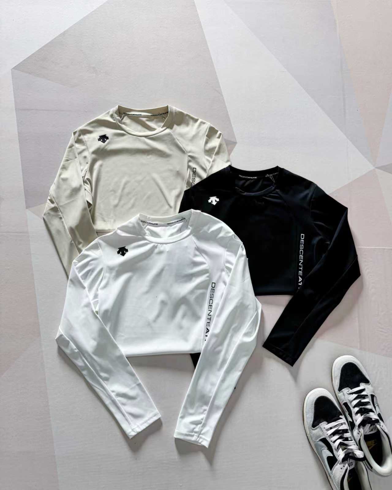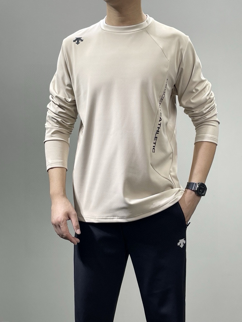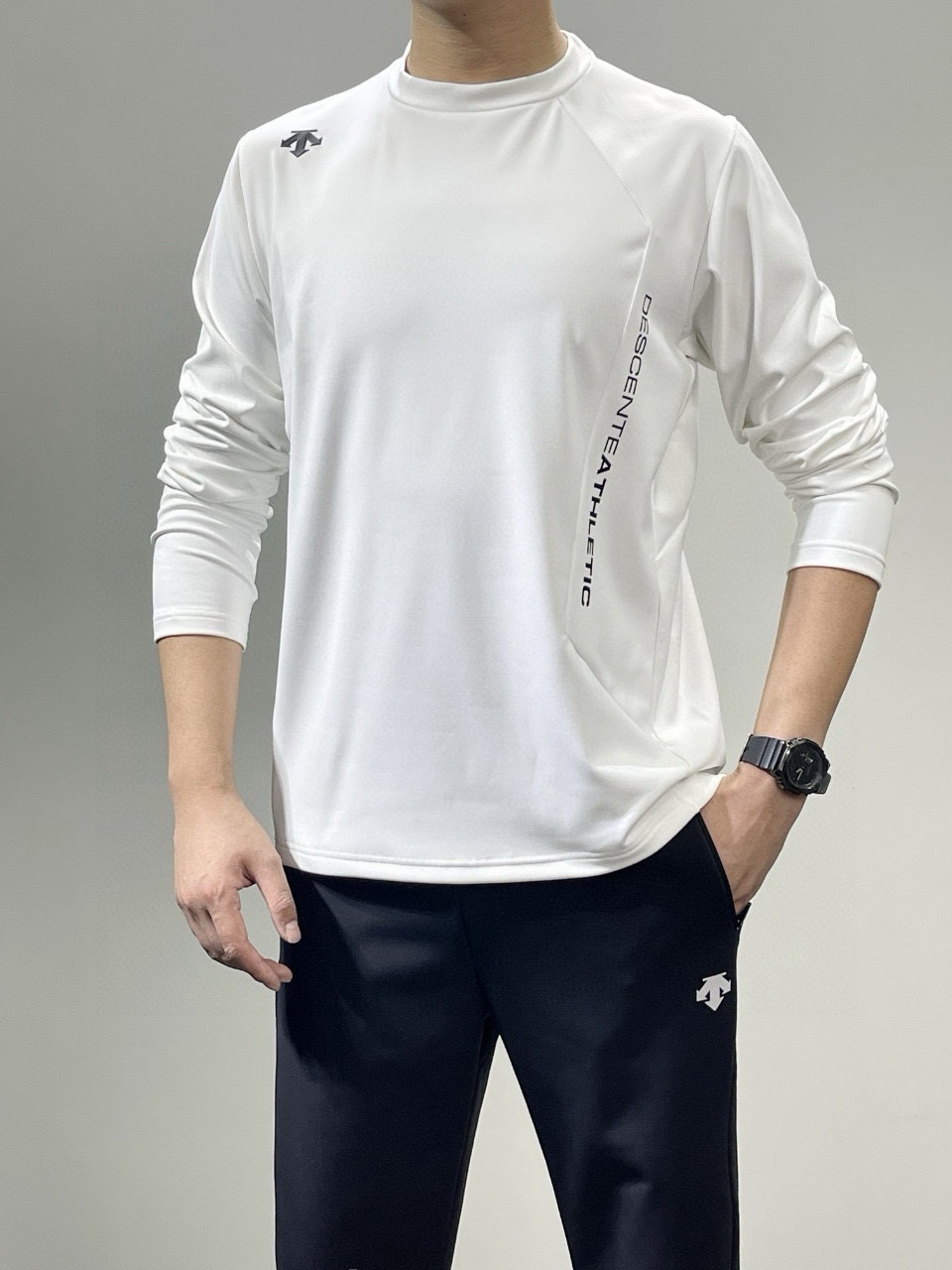 这款衣服是AAAAA 1:1 质量 (非常棒). 使用了和原版一模一样的材料. 商标部分也保持了和Descente一样. 图片拍摄是实物衣服拍摄, 您所收到的实物保证和我们图片一模一样.