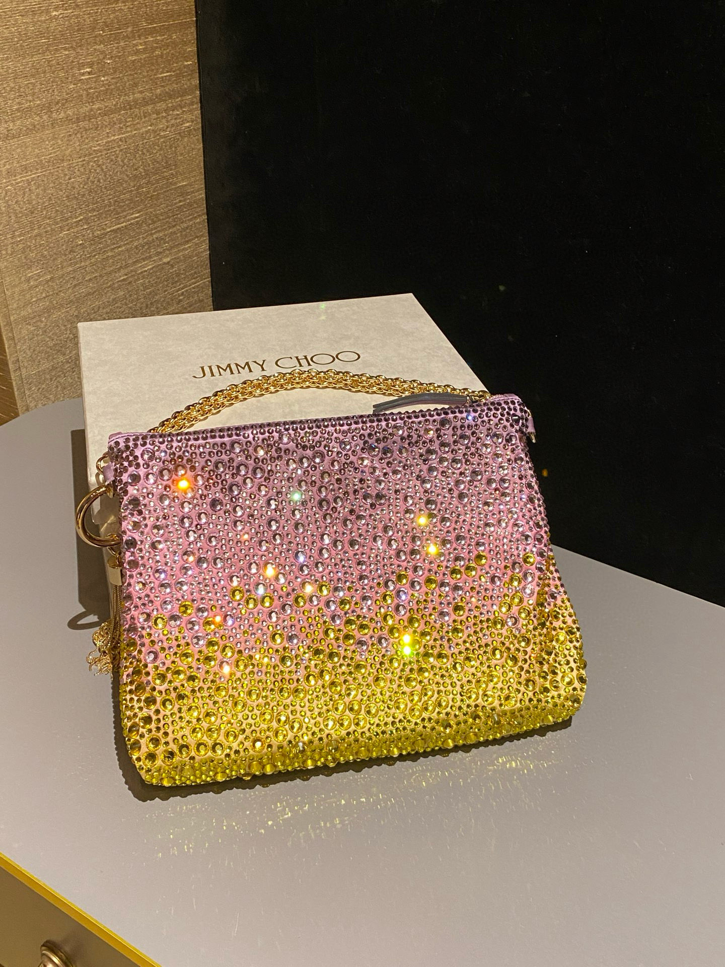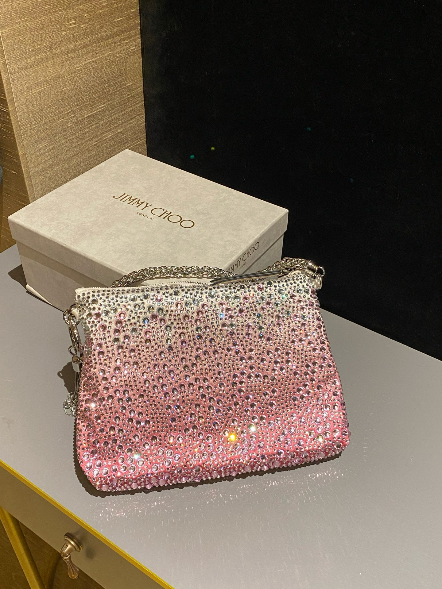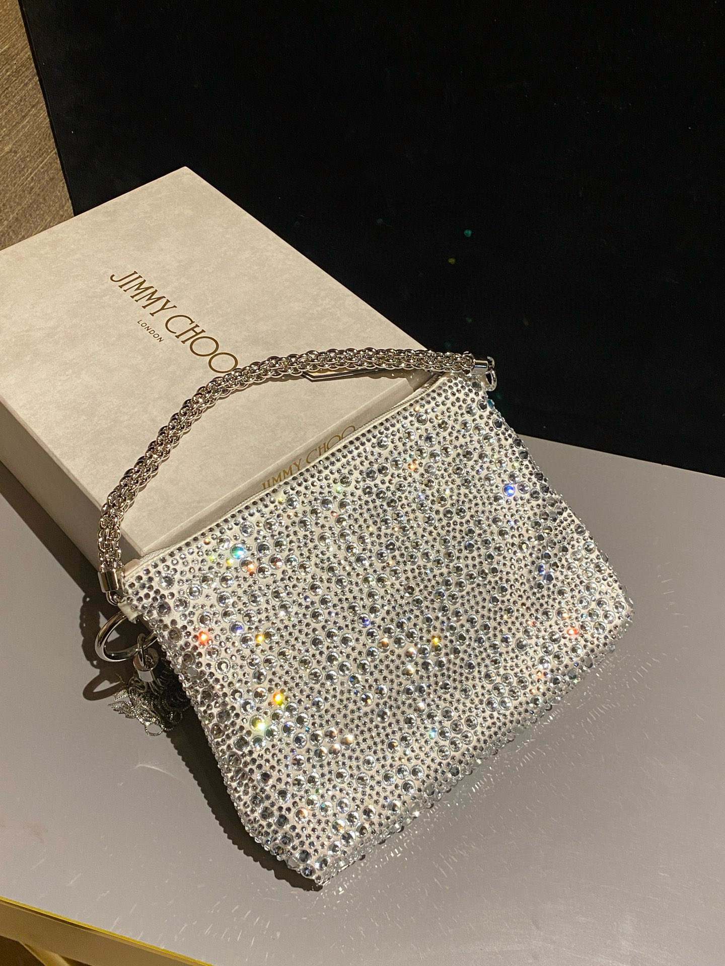 这款包包是AAAAA 1:1 质量 (非常棒). 使用了和原版一模一样的材料. 商标部分也保持了和吉米乔/JIMMY CHOO一样. 图片拍摄是实物包包拍摄, 您所收到的实物保证和我们图片一模一样.
