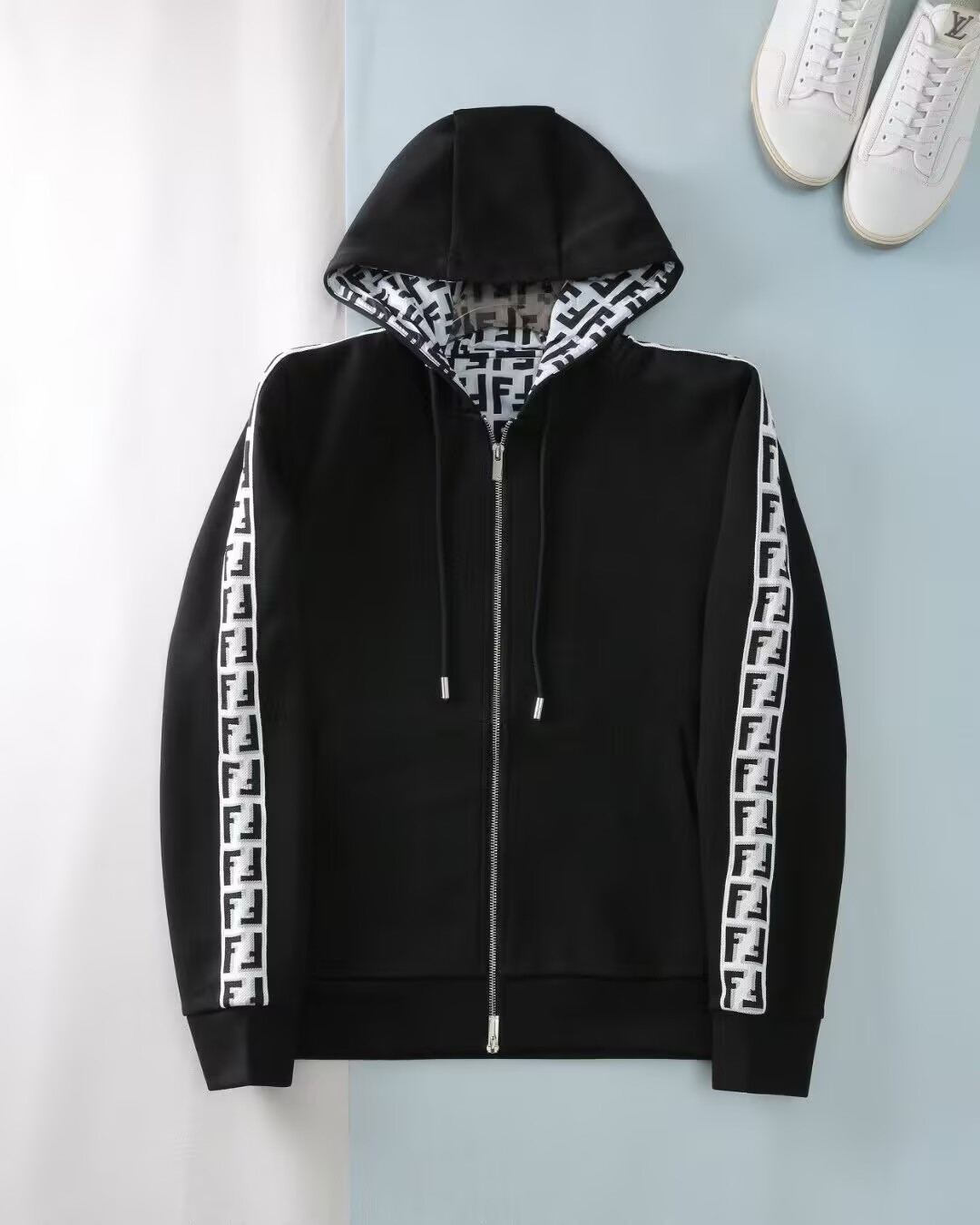 这款衣服是AAAAA 1:1 质量 (非常棒). 使用了和原版一模一样的材料. 商标部分也保持了和芬迪/Fendi一样. 图片拍摄是实物衣服拍摄, 您所收到的实物保证和我们图片一模一样.