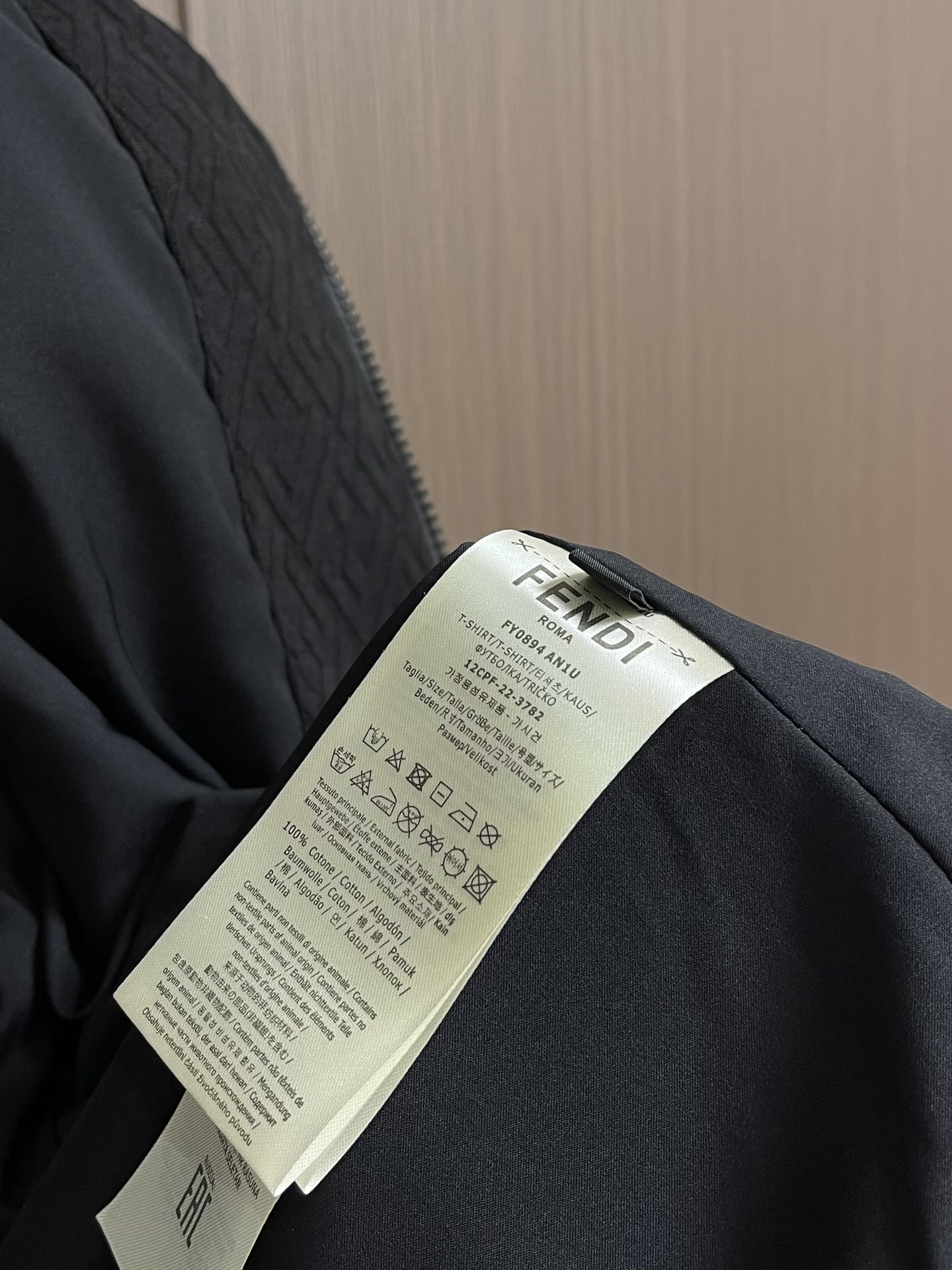 这款衣服是AAAAA 1:1 质量 (非常棒). 使用了和原版一模一样的材料. 商标部分也保持了和芬迪/Fendi一样. 图片拍摄是实物衣服拍摄, 您所收到的实物保证和我们图片一模一样.