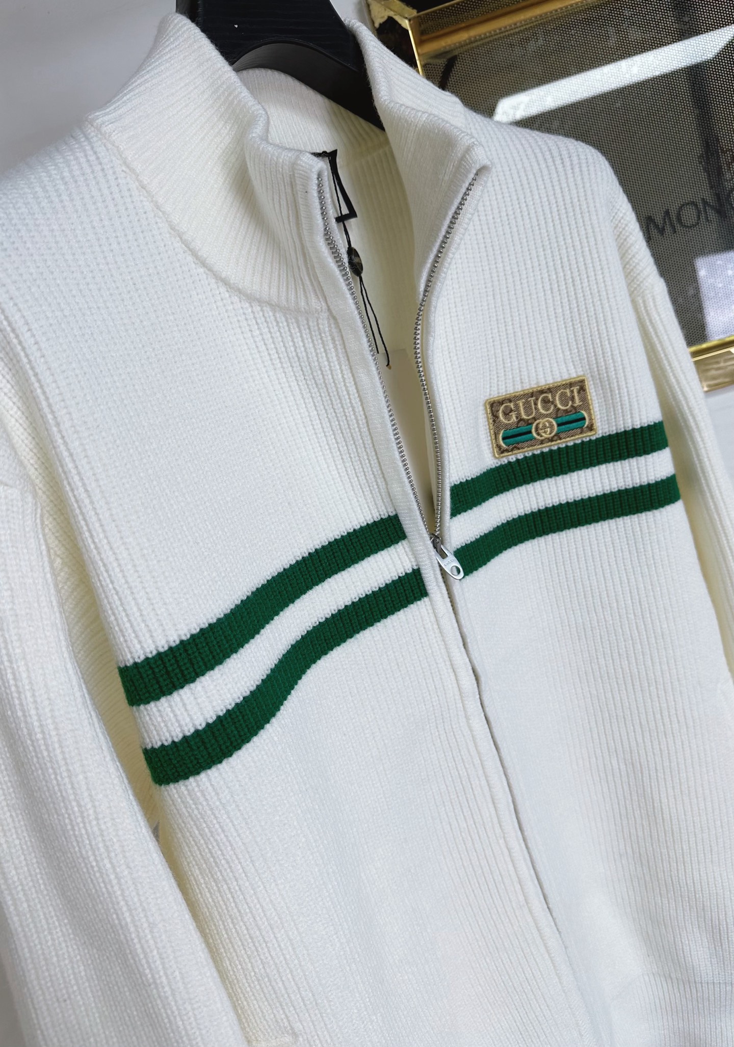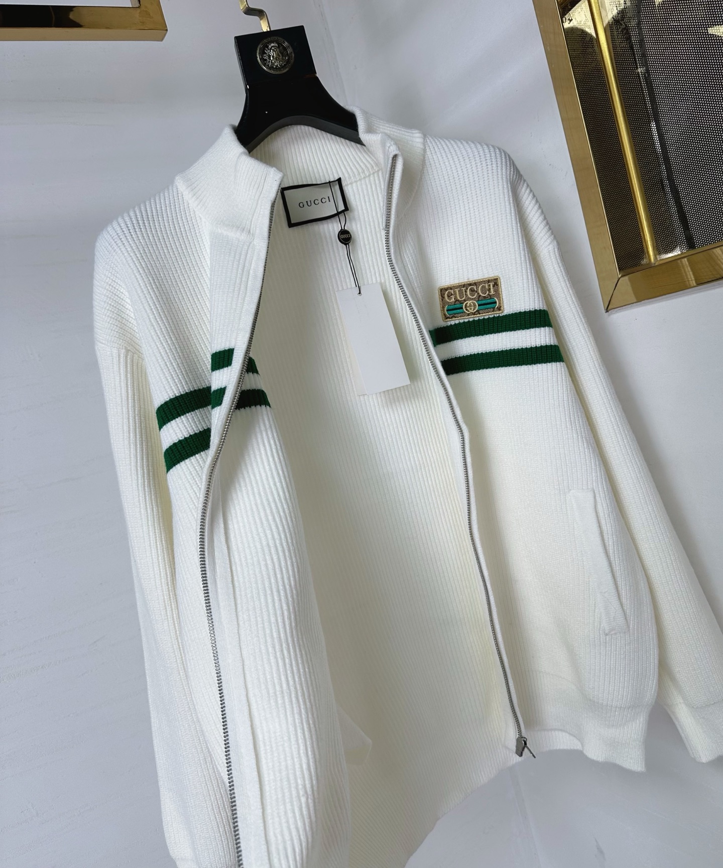这款衣服是AAAAA 1:1 质量 (非常棒). 使用了和原版一模一样的材料. 商标部分也保持了和古奇/Gucci一样. 图片拍摄是实物衣服拍摄, 您所收到的实物保证和我们图片一模一样.