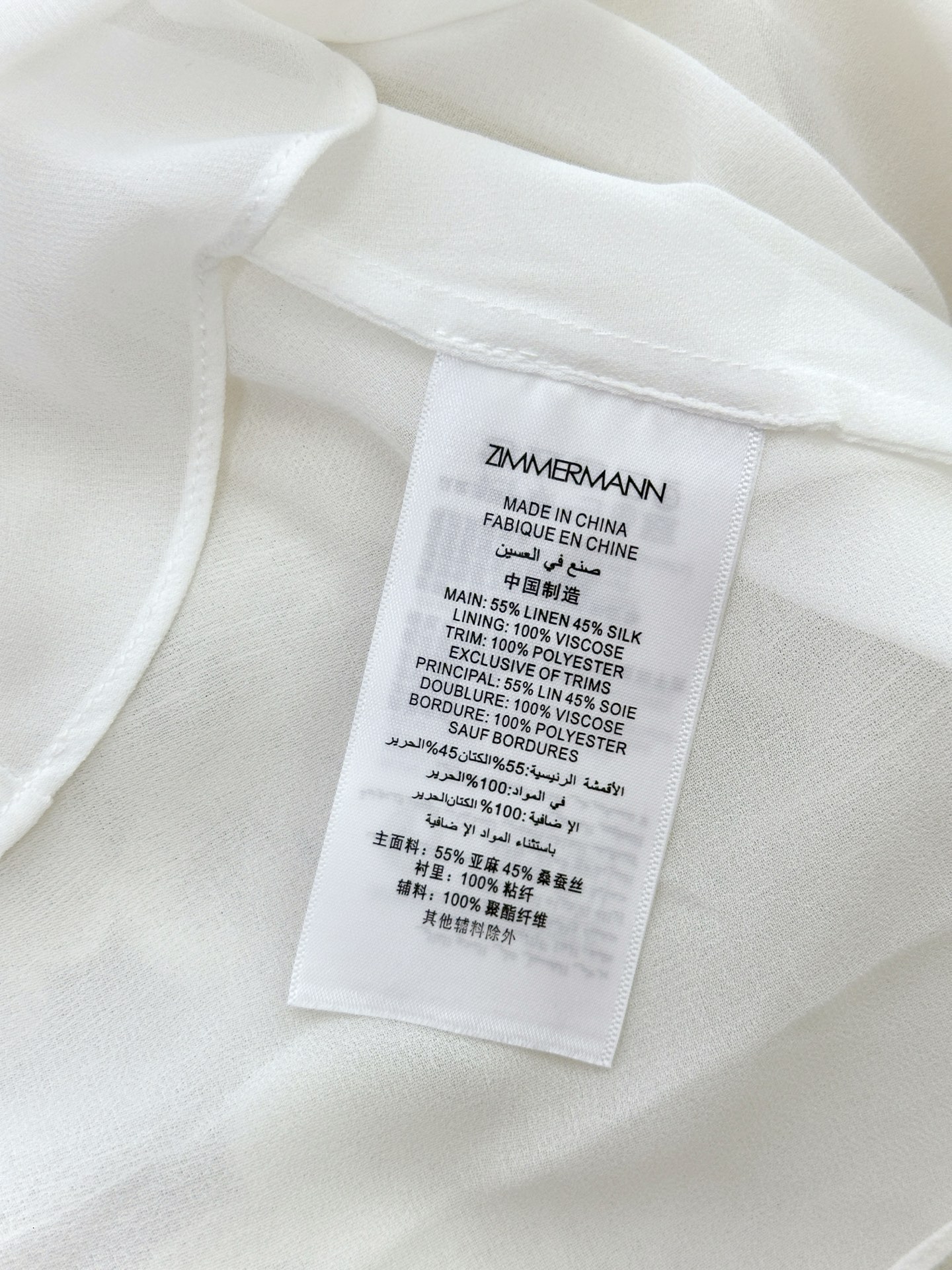 这款衣服是AAAAA 1:1 质量 (非常棒). 使用了和原版一模一样的材料. 商标部分也保持了和ZIMMERMANN一样. 图片拍摄是实物衣服拍摄, 您所收到的实物保证和我们图片一模一样.