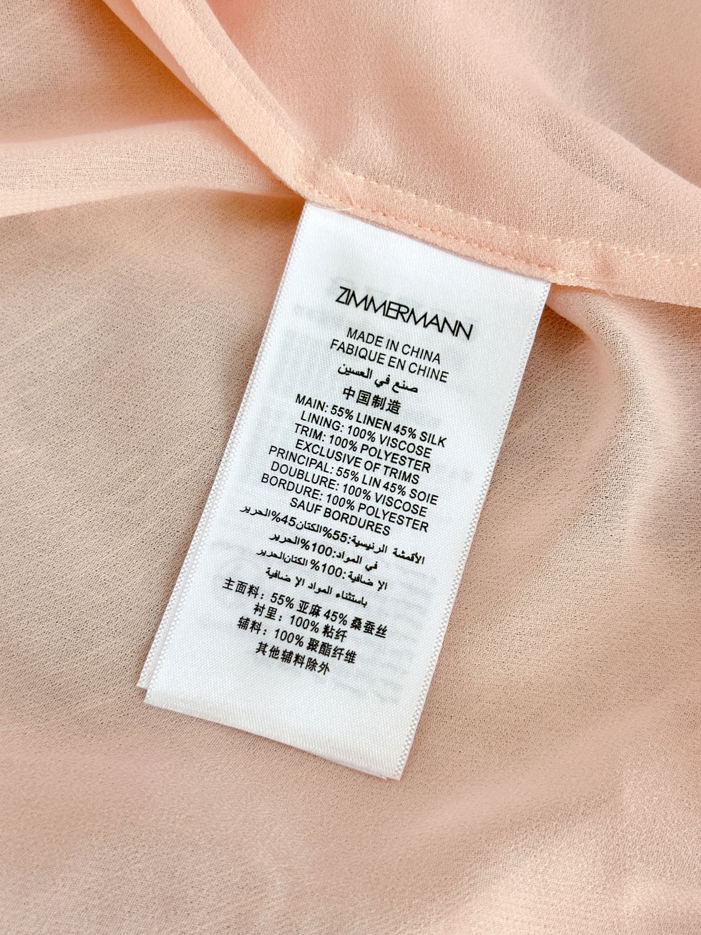 这款衣服是AAAAA 1:1 质量 (非常棒). 使用了和原版一模一样的材料. 商标部分也保持了和ZIMMERMANN一样. 图片拍摄是实物衣服拍摄, 您所收到的实物保证和我们图片一模一样.