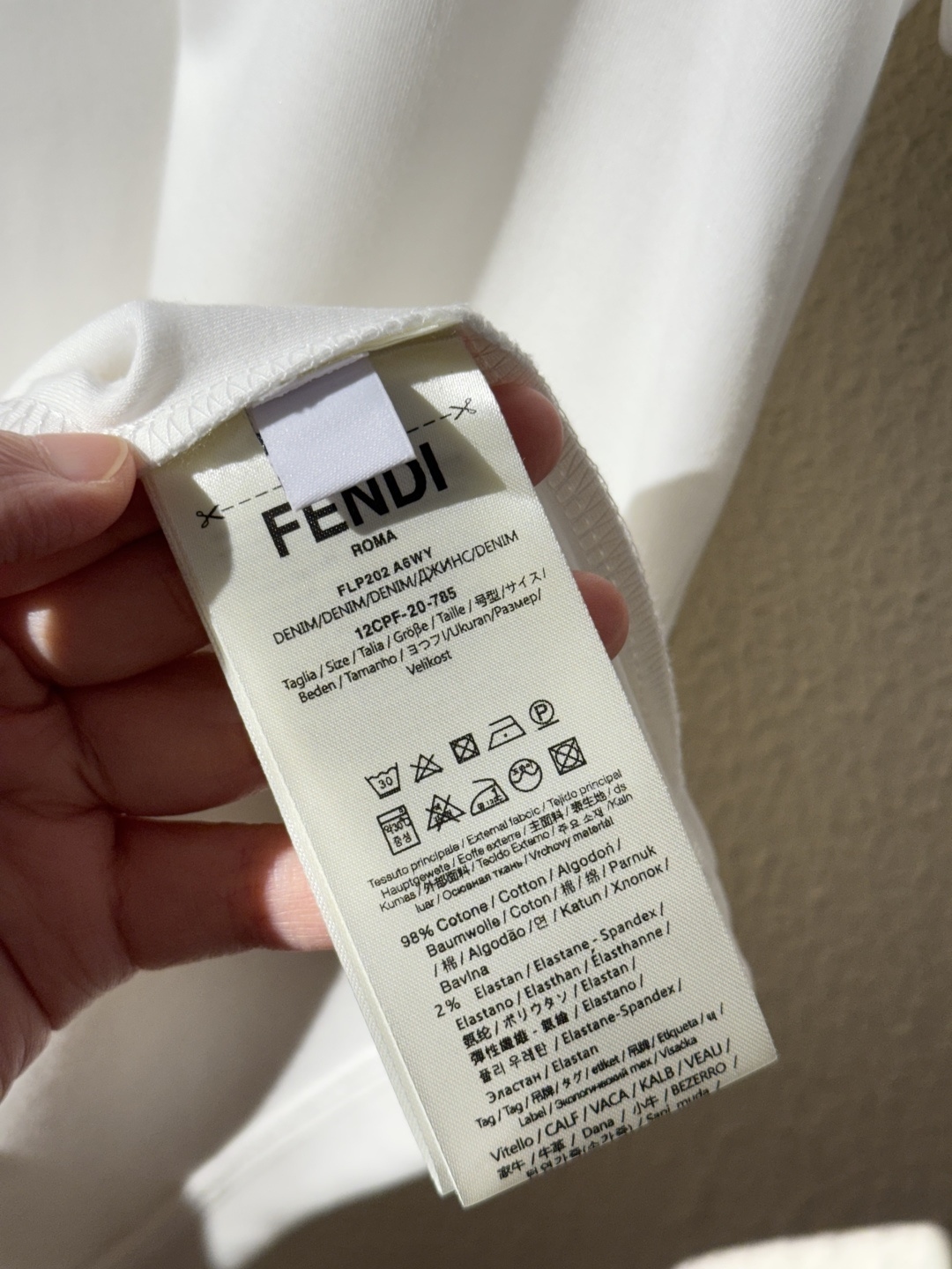 这款衣服是AAAAA 1:1 质量 (非常棒). 使用了和原版一模一样的材料. 商标部分也保持了和芬迪/Fendi一样. 图片拍摄是实物衣服拍摄, 您所收到的实物保证和我们图片一模一样.
