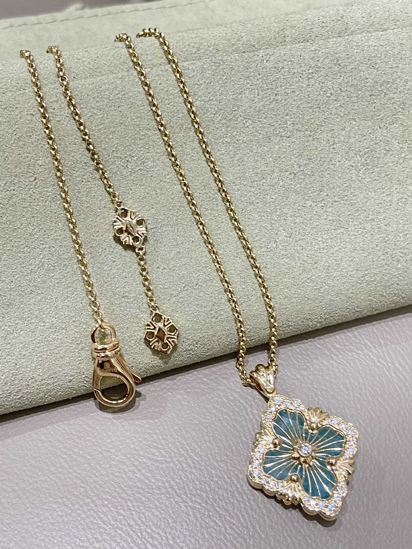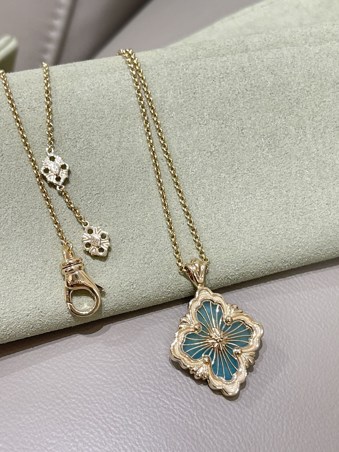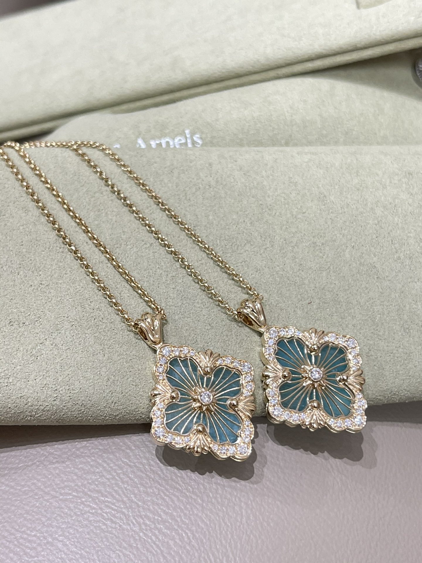 这款首饰是AAAAA 1:1 质量 (非常棒). 使用了和原版一模一样的材料. 商标部分也保持了和Buccellati一样. 图片拍摄是实物首饰拍摄, 您所收到的实物保证和我们图片一模一样.