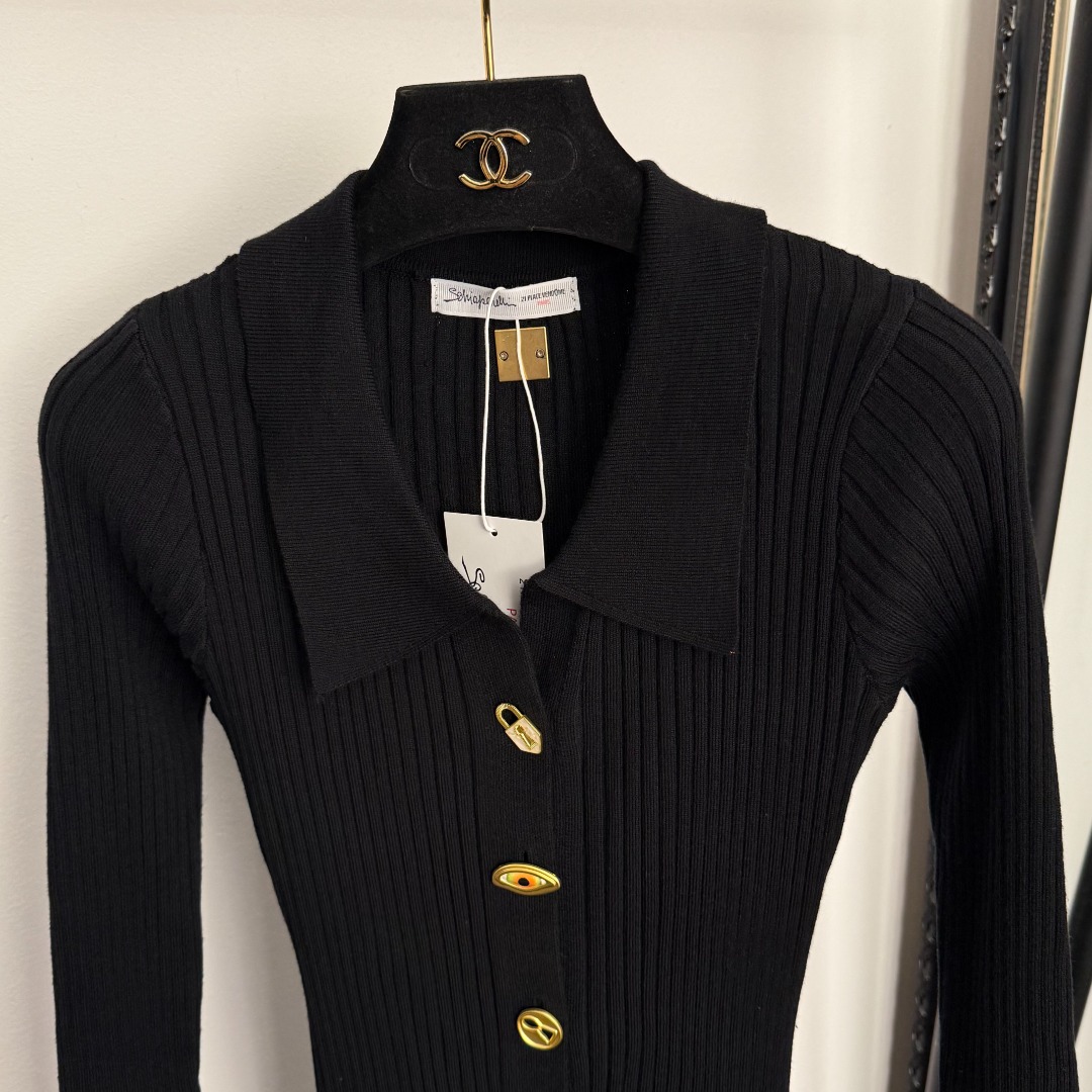 这款衣服是AAAAA 1:1 质量 (非常棒). 使用了和原版一模一样的材料. 商标部分也保持了和Schiaparelli一样. 图片拍摄是实物衣服拍摄, 您所收到的实物保证和我们图片一模一样.