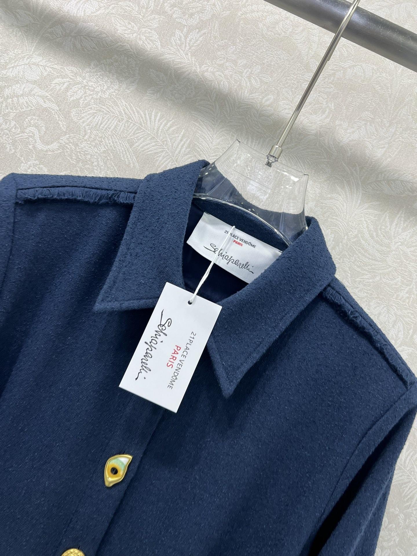 这款衣服是AAAAA 1:1 质量 (非常棒). 使用了和原版一模一样的材料. 商标部分也保持了和Schiaparelli一样. 图片拍摄是实物衣服拍摄, 您所收到的实物保证和我们图片一模一样.