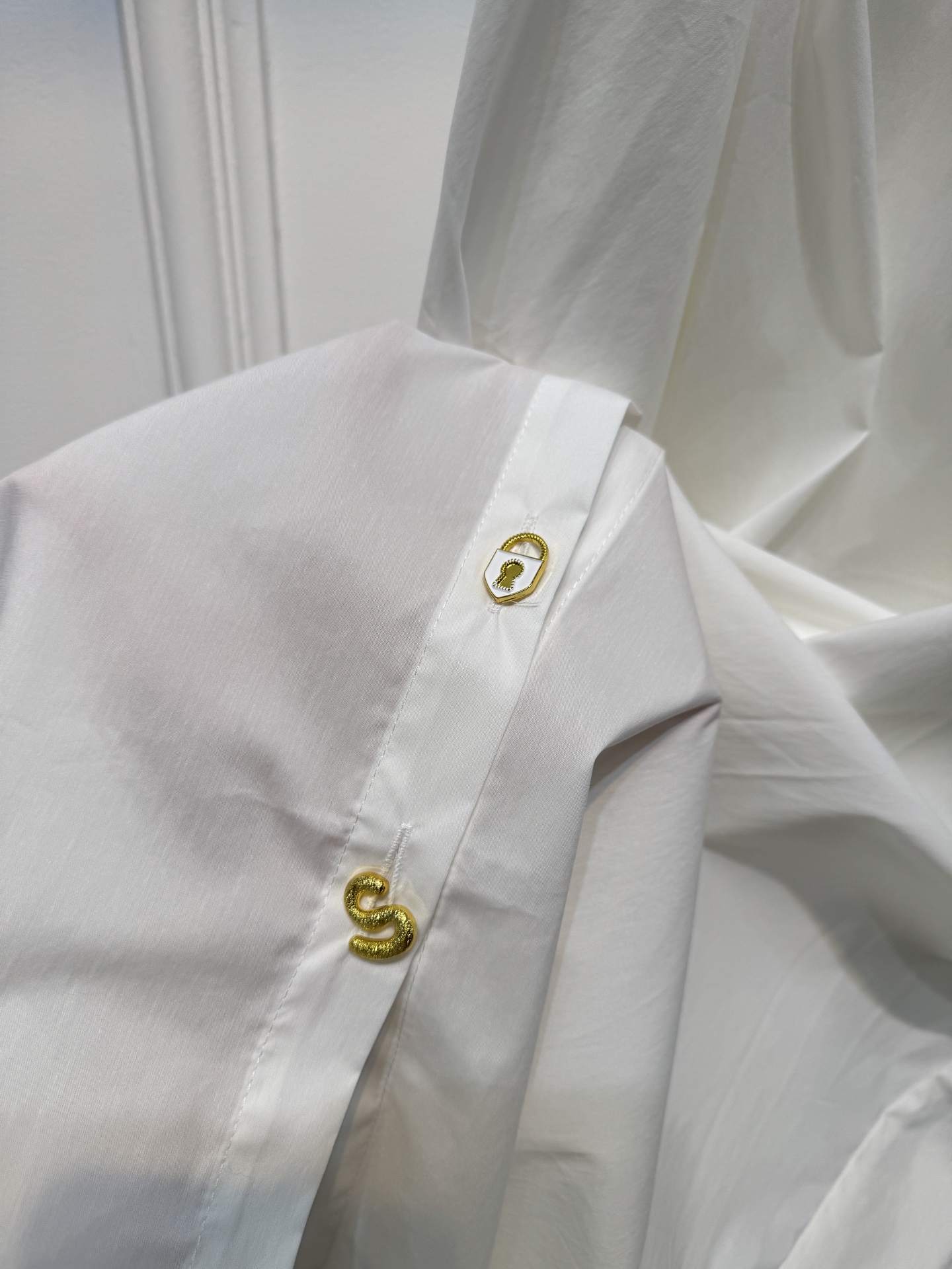 这款衣服是AAAAA 1:1 质量 (非常棒). 使用了和原版一模一样的材料. 商标部分也保持了和Schiaparelli一样. 图片拍摄是实物衣服拍摄, 您所收到的实物保证和我们图片一模一样.