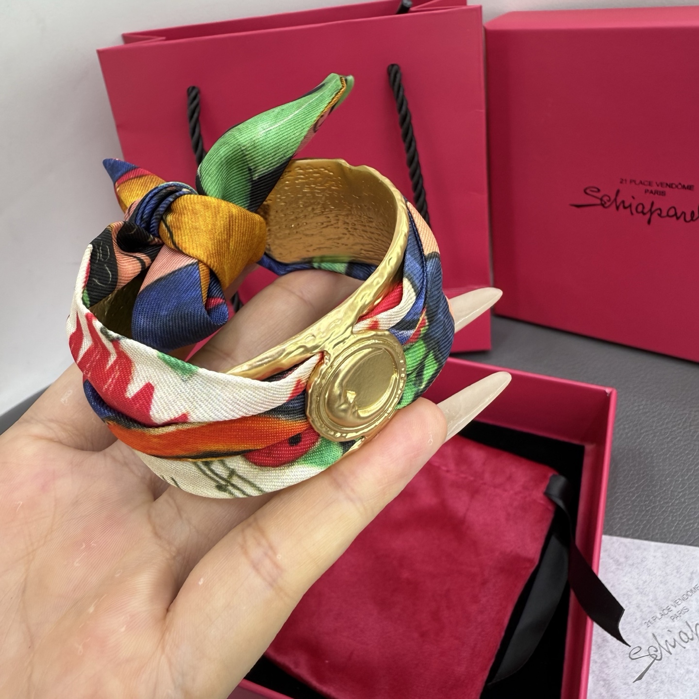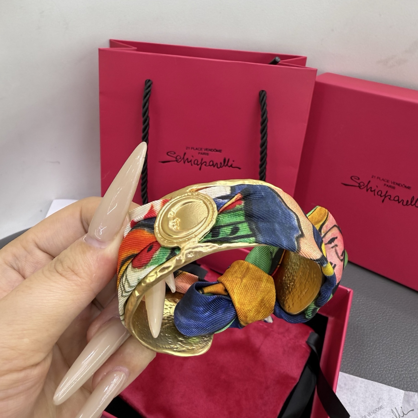 这款首饰是AAAAA 1:1 质量 (非常棒). 使用了和原版一模一样的材料. 商标部分也保持了和Schiaparelli一样. 图片拍摄是实物首饰拍摄, 您所收到的实物保证和我们图片一模一样.