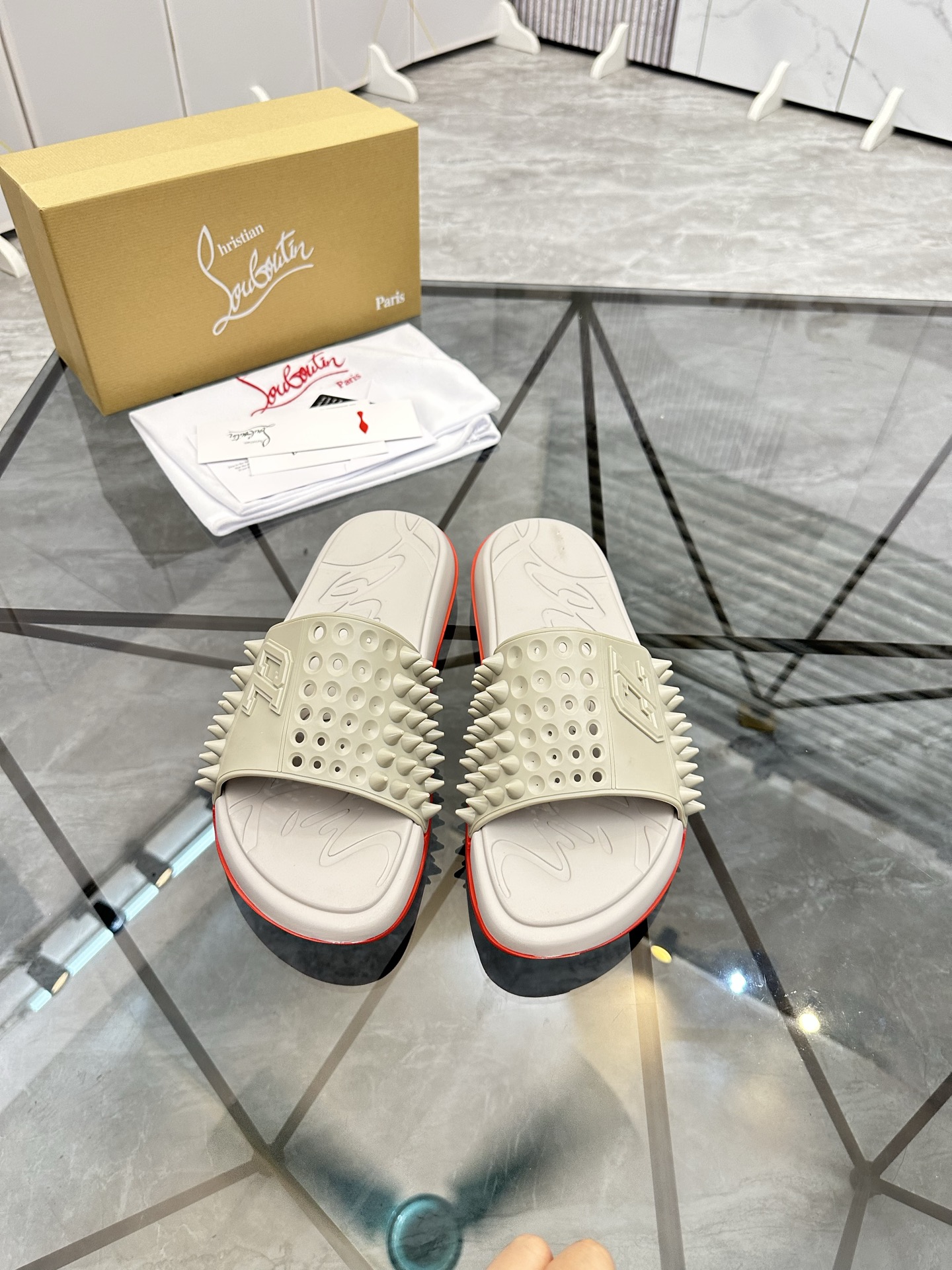 这款鞋子是AAAAA 1:1 质量 (非常棒). 使用了和原版一模一样的材料. 商标部分也保持了和克里斯提·鲁布托/Christian Louboutin一样. 图片拍摄是实物鞋子拍摄, 您所收到的实物保证和我们图片一模一样.