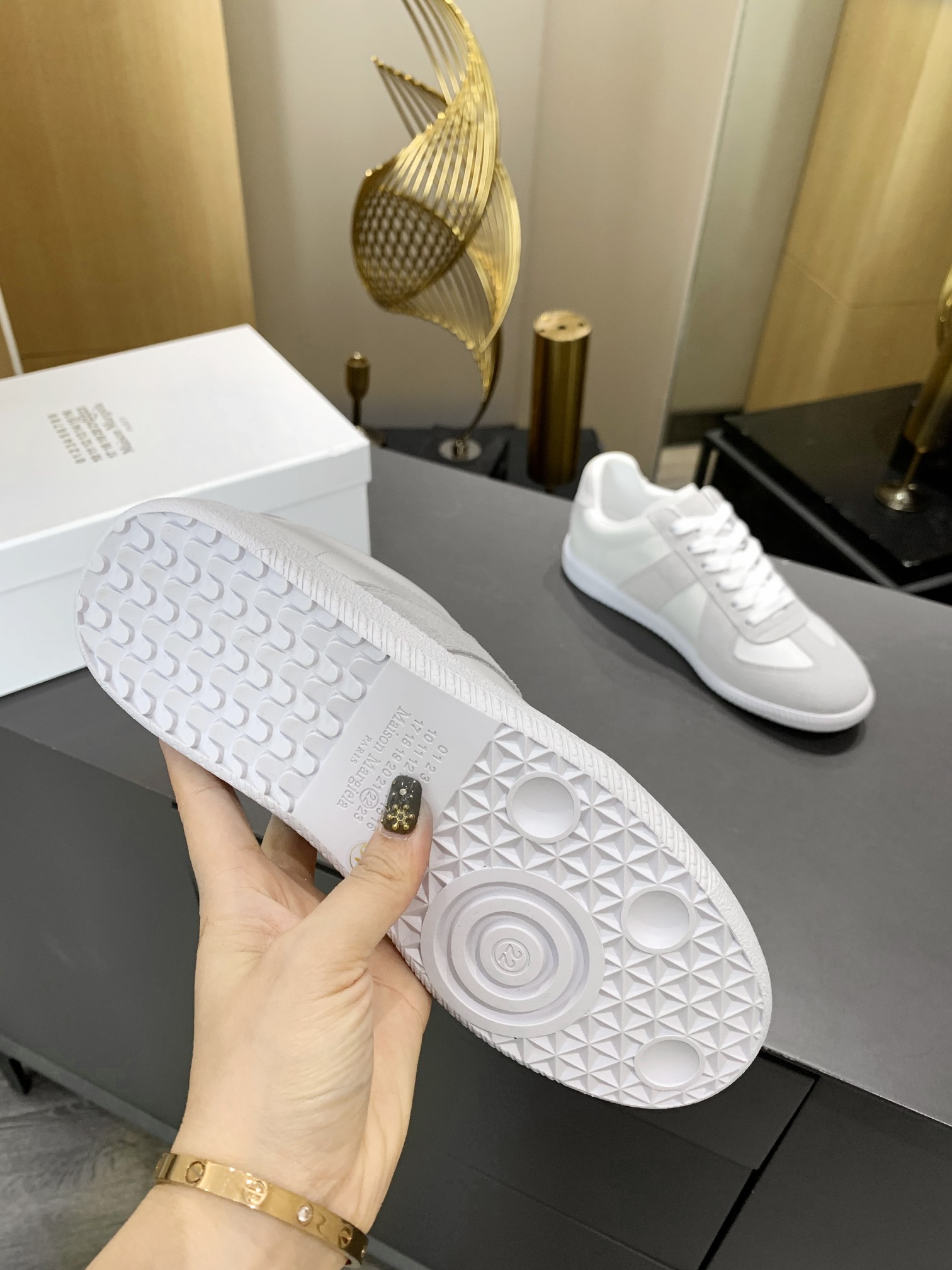 这款鞋子是AAAAA 1:1 质量 (非常棒). 使用了和原版一模一样的材料. 商标部分也保持了和Maison Margiela一样. 图片拍摄是实物鞋子拍摄, 您所收到的实物保证和我们图片一模一样.