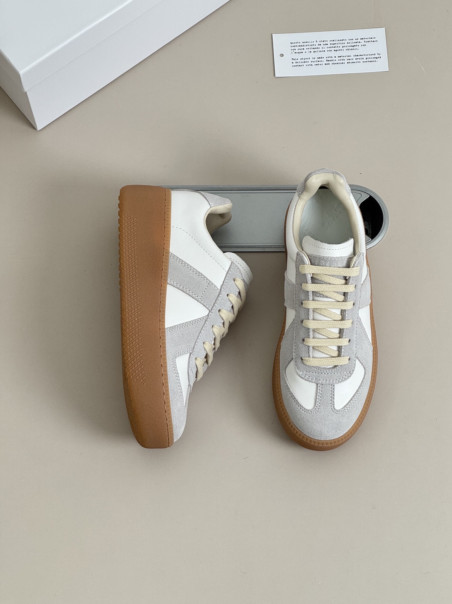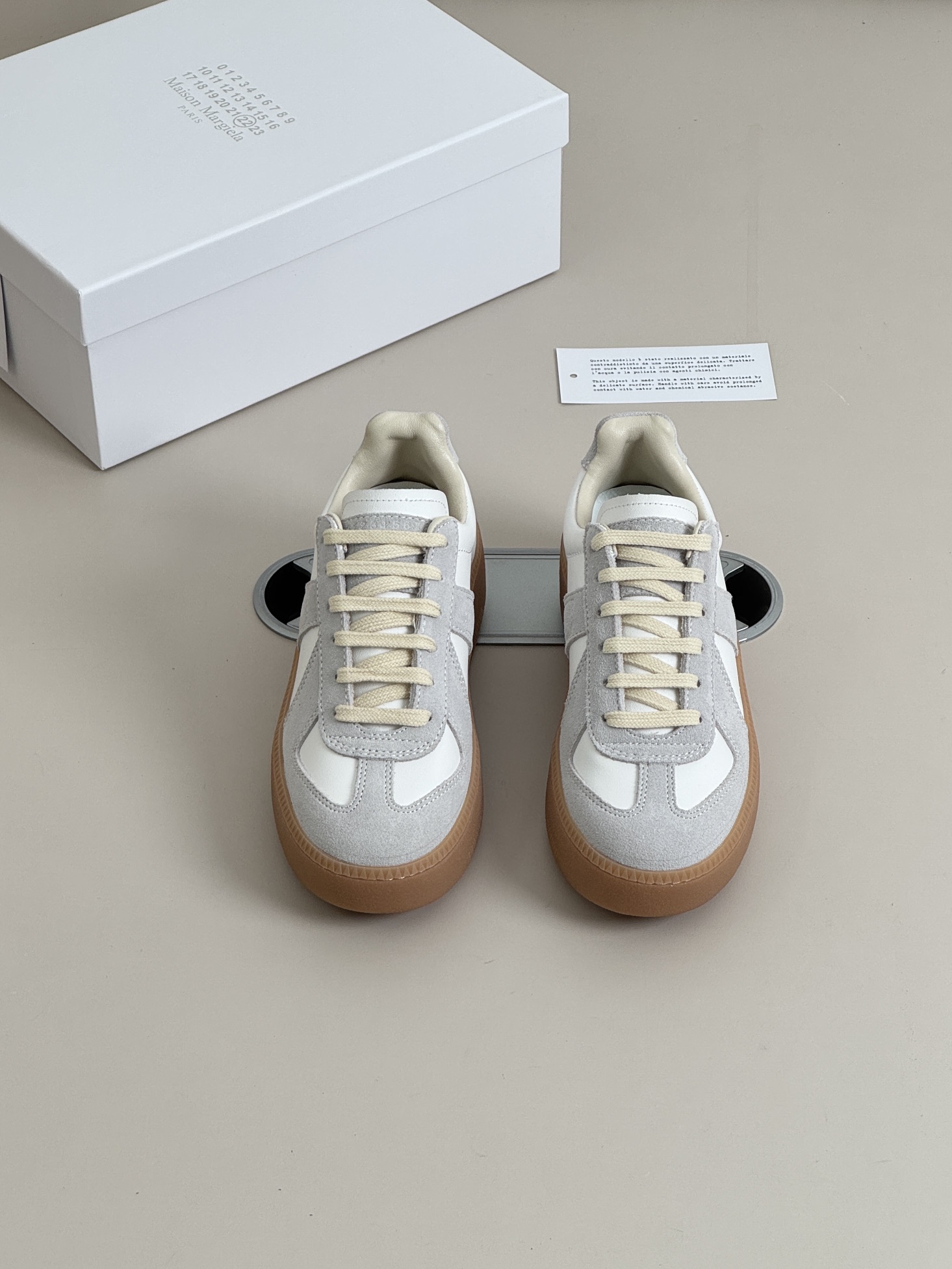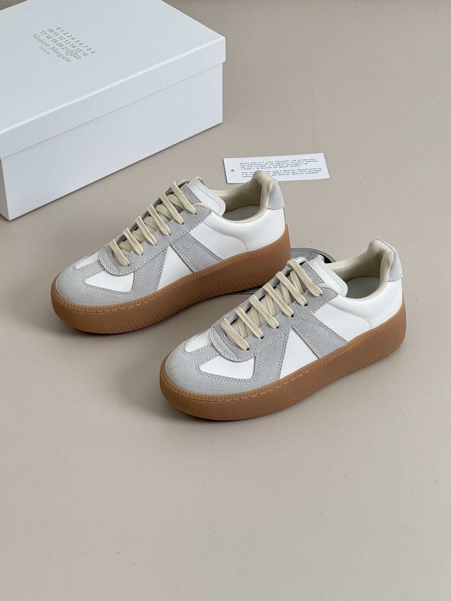 这款鞋子是AAAAA 1:1 质量 (非常棒). 使用了和原版一模一样的材料. 商标部分也保持了和Maison Margiela一样. 图片拍摄是实物鞋子拍摄, 您所收到的实物保证和我们图片一模一样.
