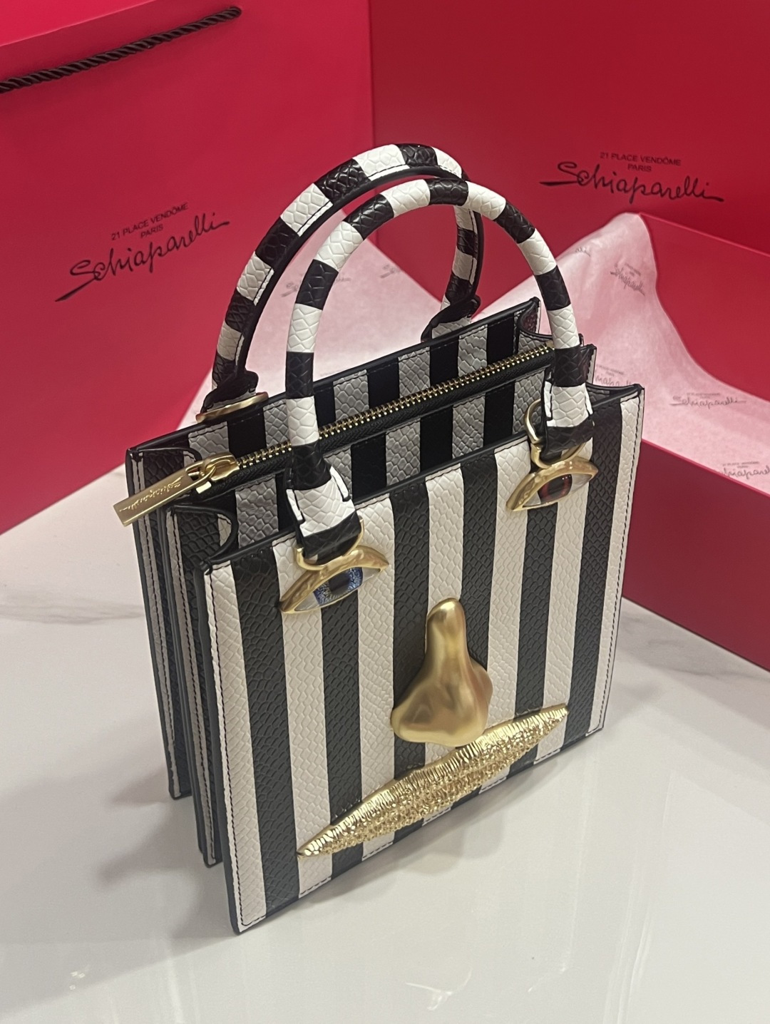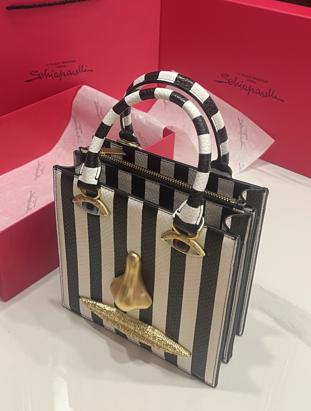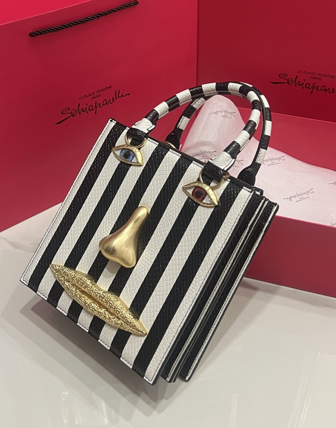 这款包包是AAAAA 1:1 质量 (非常棒). 使用了和原版一模一样的材料. 商标部分也保持了和Schiaparelli一样. 图片拍摄是实物包包拍摄, 您所收到的实物保证和我们图片一模一样.