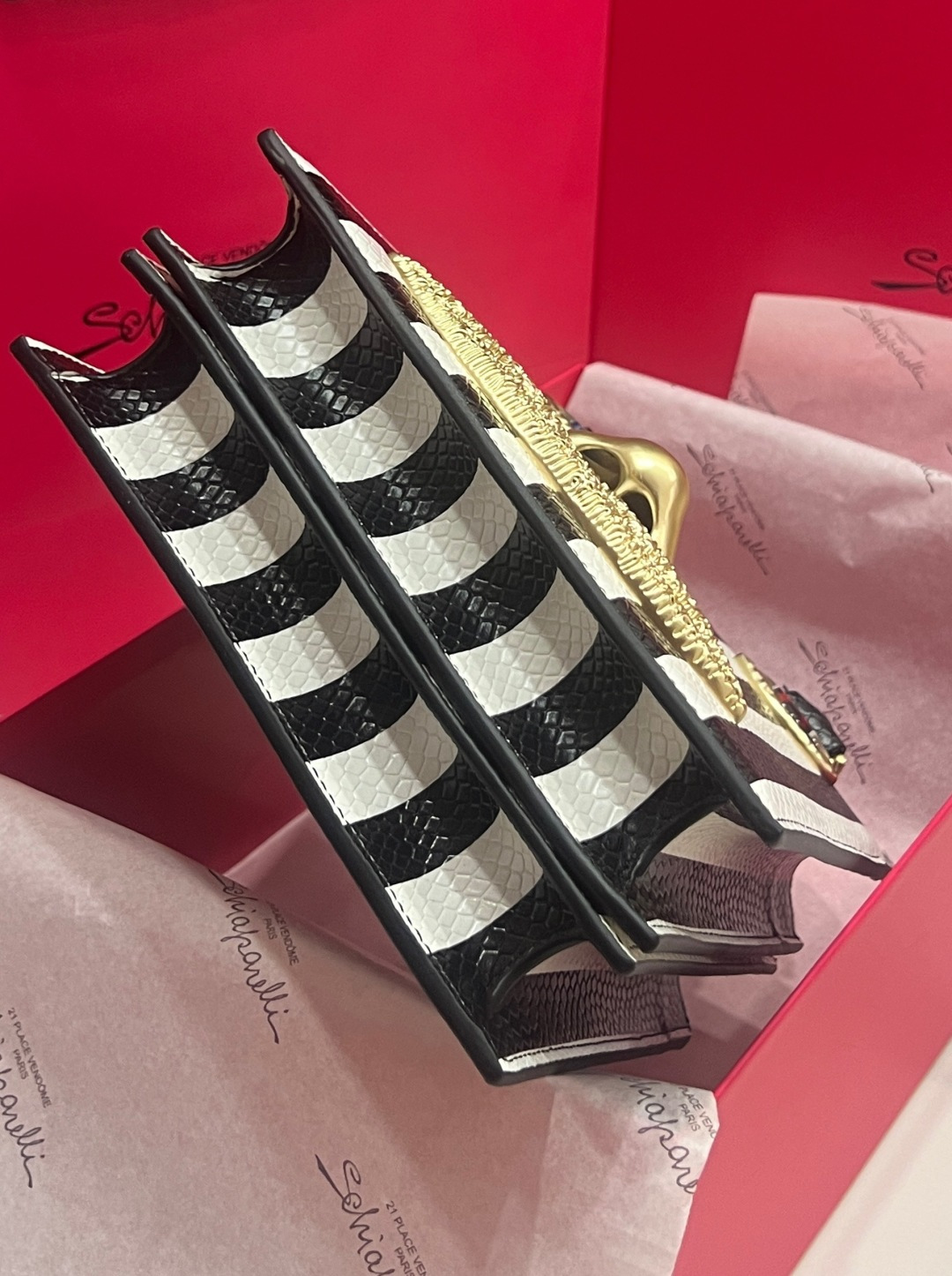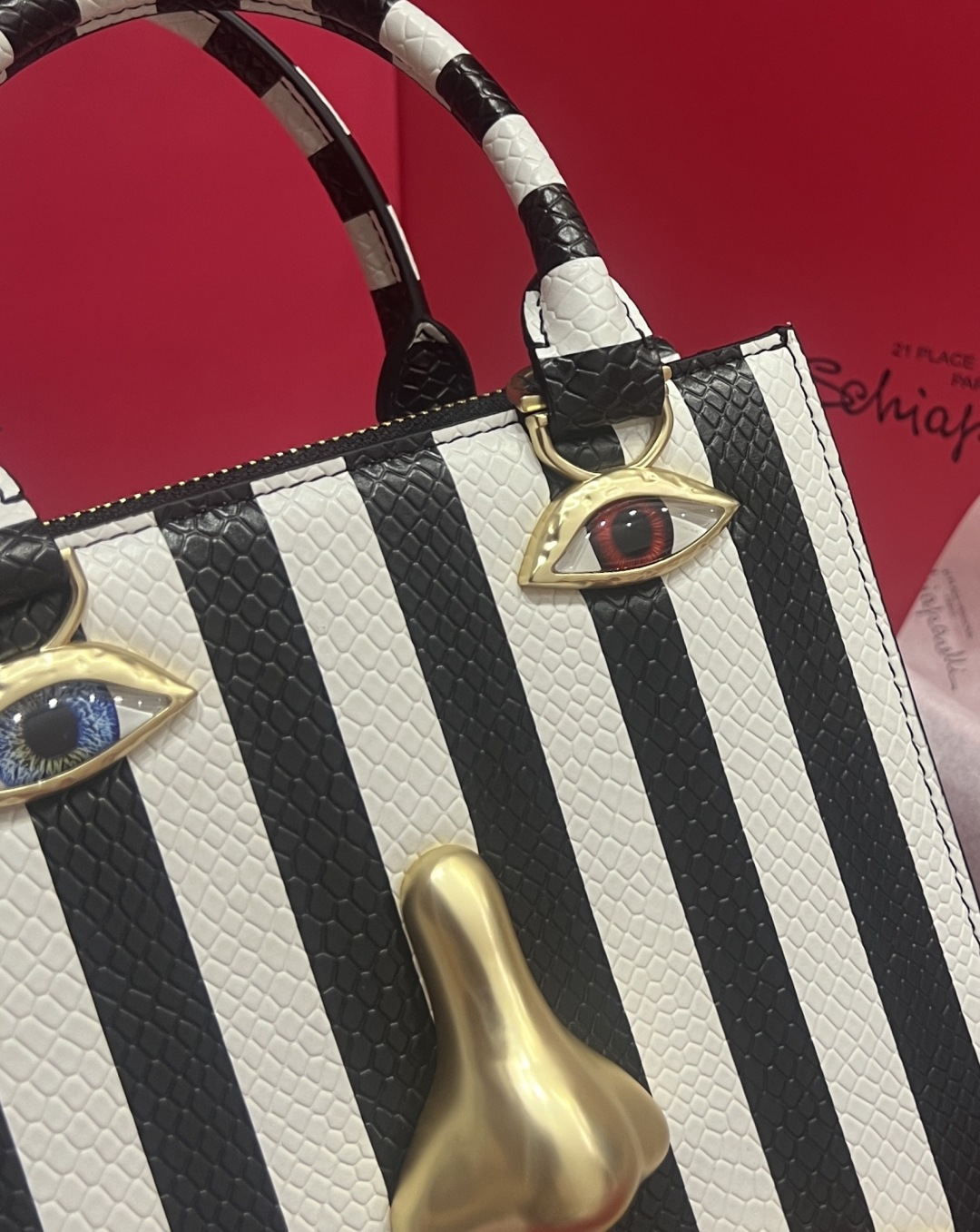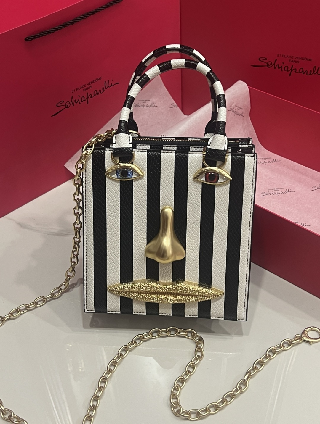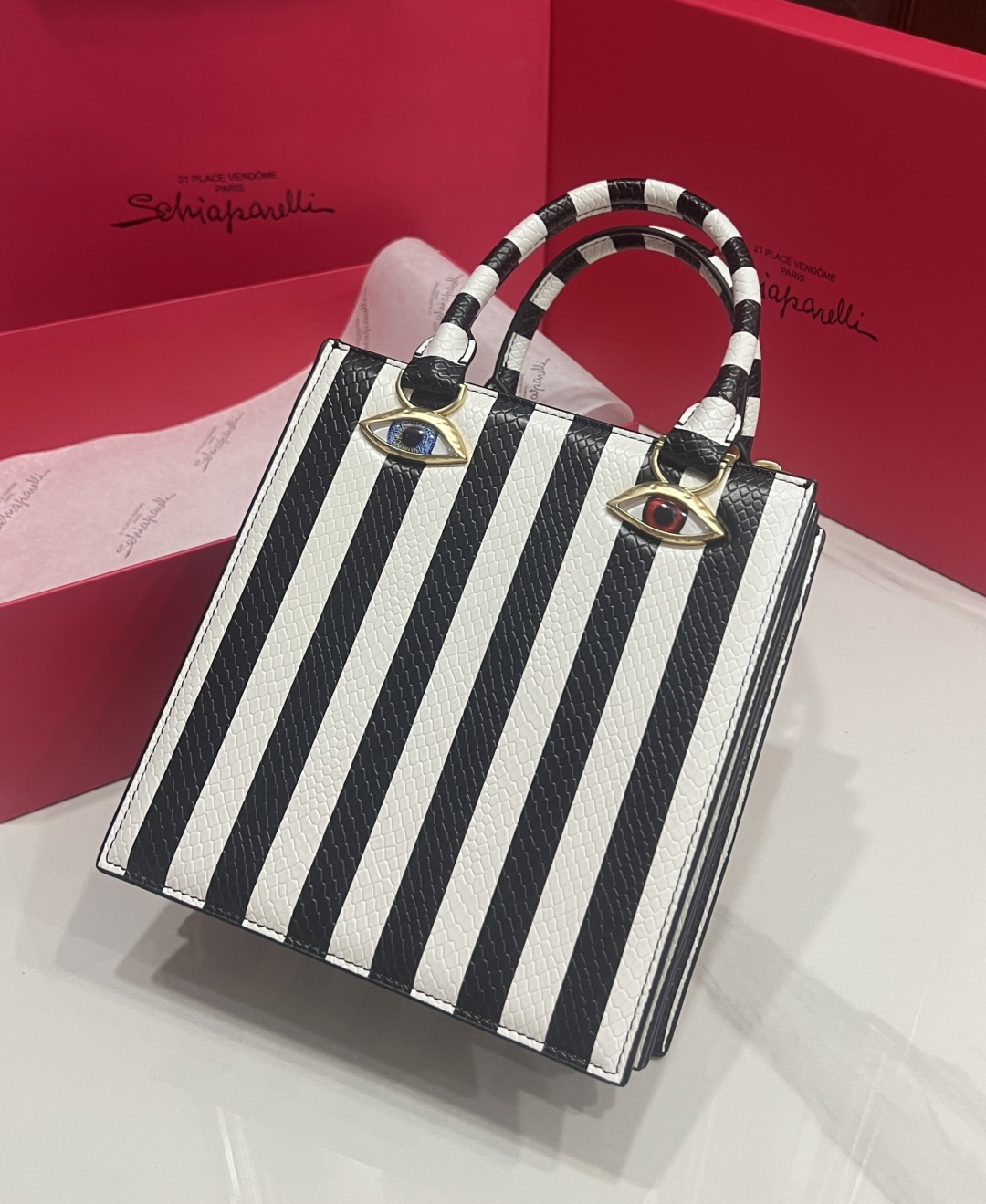 这款包包是AAAAA 1:1 质量 (非常棒). 使用了和原版一模一样的材料. 商标部分也保持了和Schiaparelli一样. 图片拍摄是实物包包拍摄, 您所收到的实物保证和我们图片一模一样.