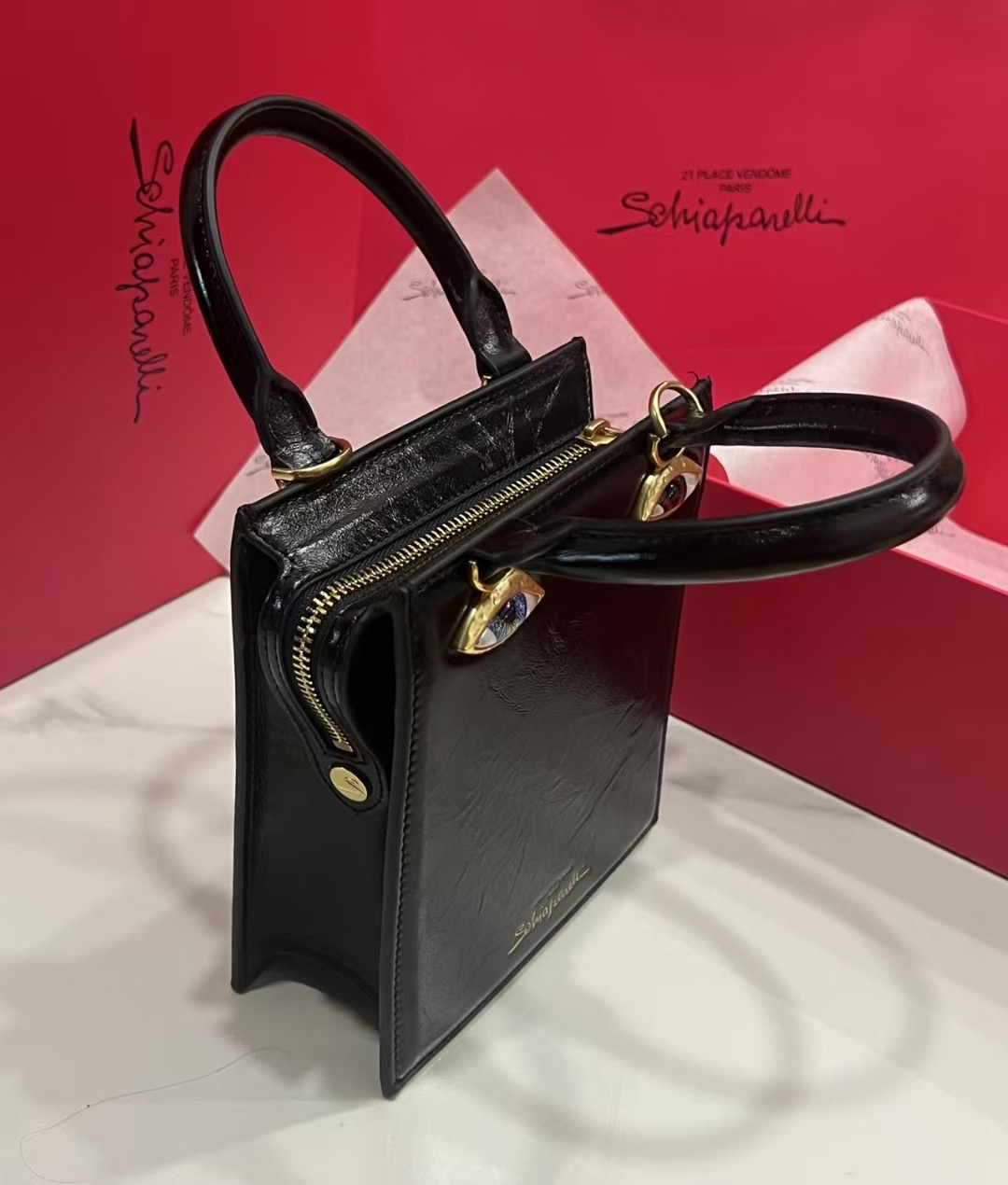 这款包包是AAAAA 1:1 质量 (非常棒). 使用了和原版一模一样的材料. 商标部分也保持了和Schiaparelli一样. 图片拍摄是实物包包拍摄, 您所收到的实物保证和我们图片一模一样.