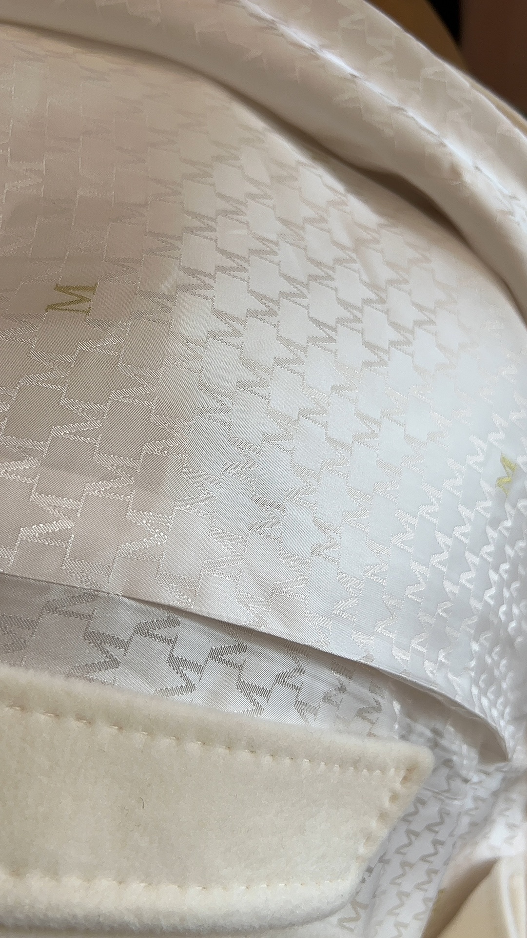 这款衣服是AAAAA 1:1 质量 (非常棒). 使用了和原版一模一样的材料. 商标部分也保持了和Max Mara一样. 图片拍摄是实物衣服拍摄, 您所收到的实物保证和我们图片一模一样.