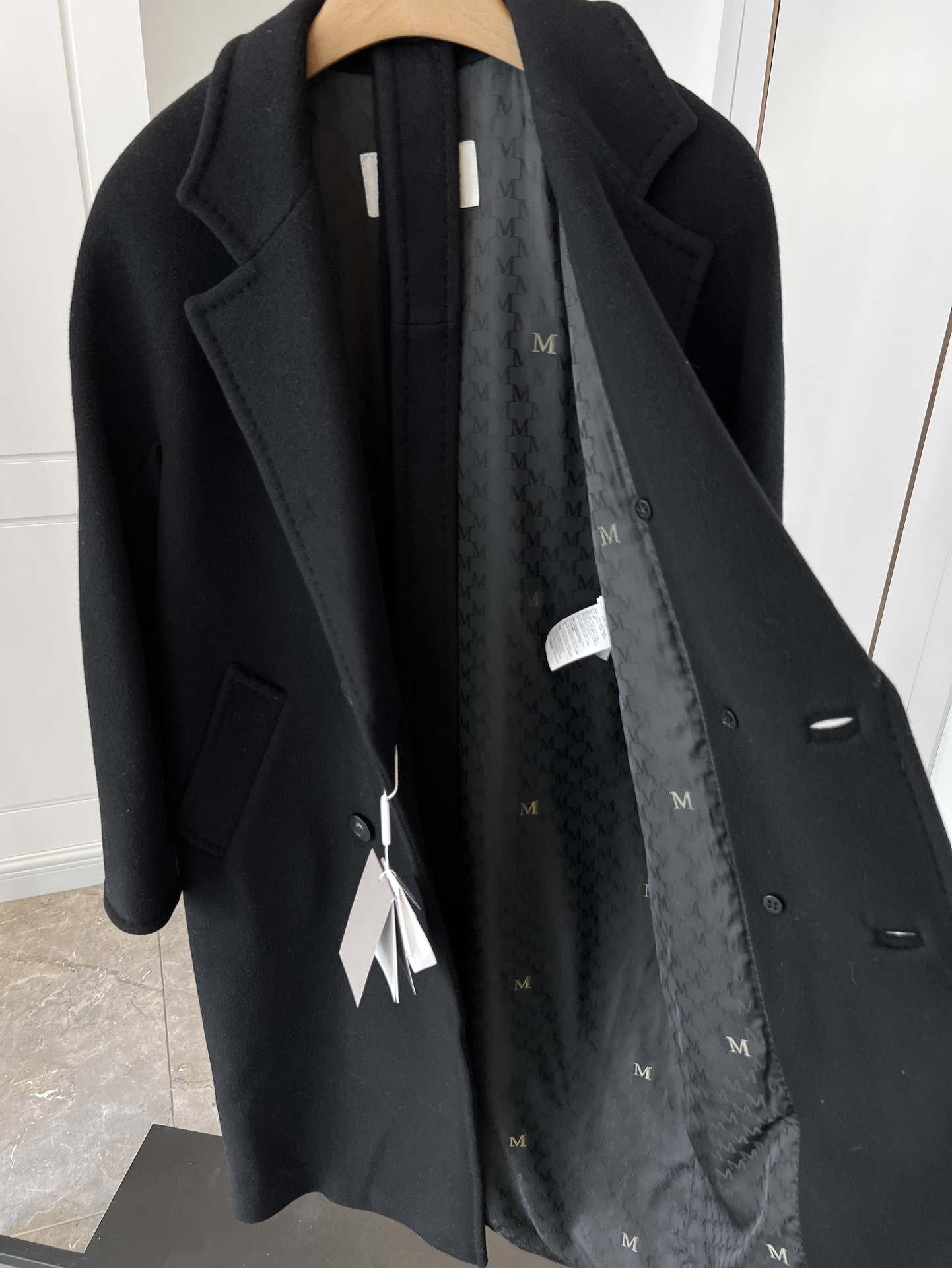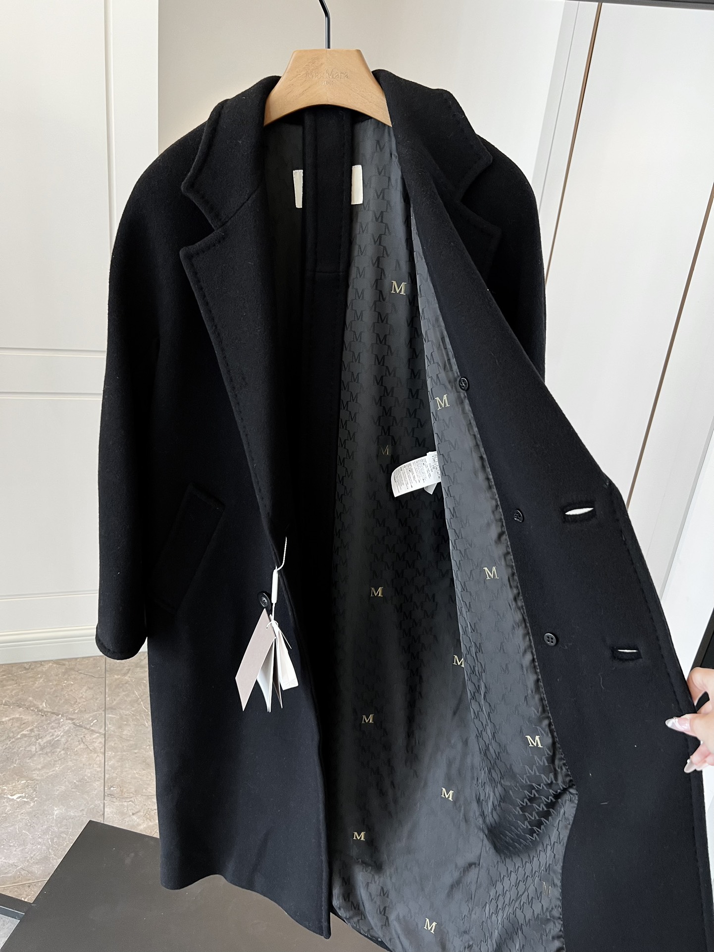 这款衣服是AAAAA 1:1 质量 (非常棒). 使用了和原版一模一样的材料. 商标部分也保持了和Max Mara一样. 图片拍摄是实物衣服拍摄, 您所收到的实物保证和我们图片一模一样.
