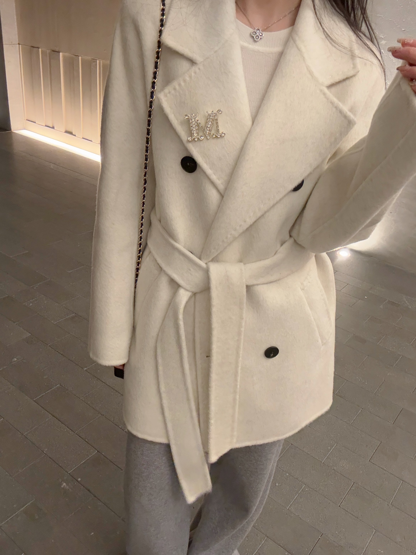 这款衣服是AAAAA 1:1 质量 (非常棒). 使用了和原版一模一样的材料. 商标部分也保持了和Max Mara一样. 图片拍摄是实物衣服拍摄, 您所收到的实物保证和我们图片一模一样.