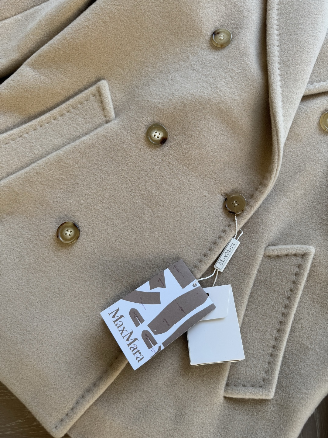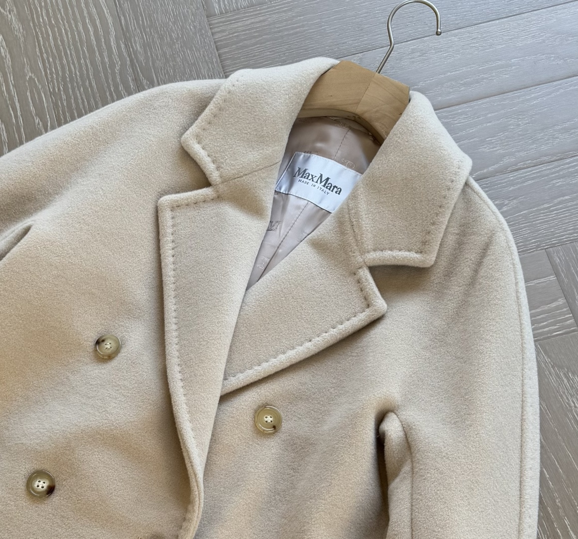 这款衣服是AAAAA 1:1 质量 (非常棒). 使用了和原版一模一样的材料. 商标部分也保持了和Max Mara一样. 图片拍摄是实物衣服拍摄, 您所收到的实物保证和我们图片一模一样.