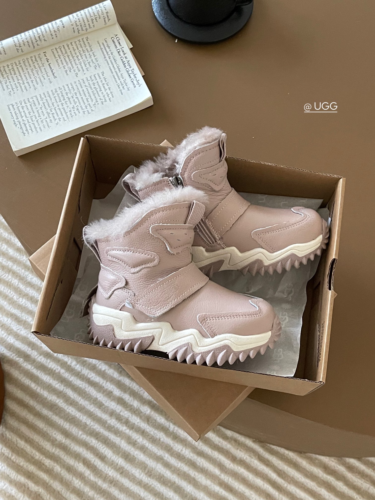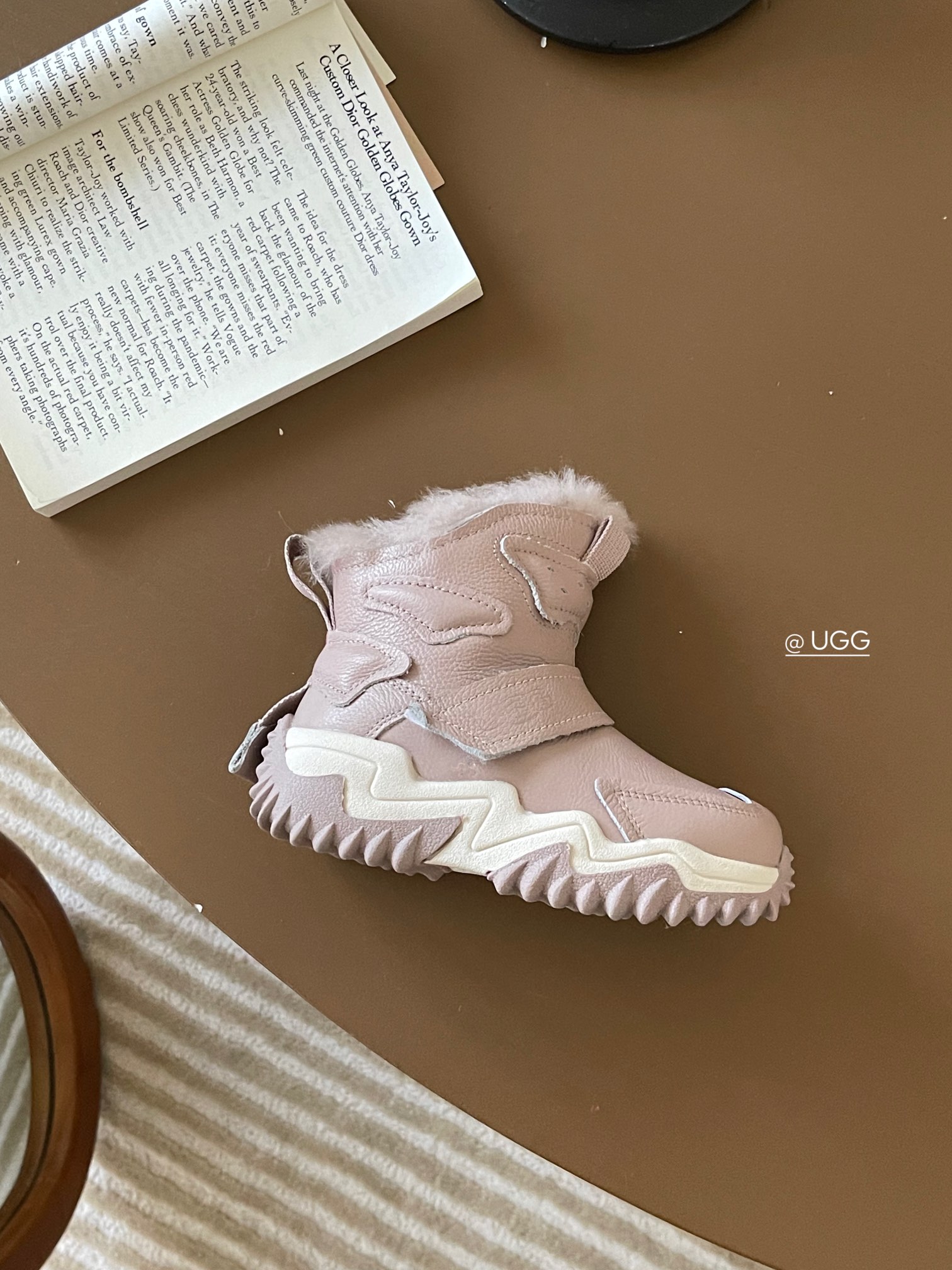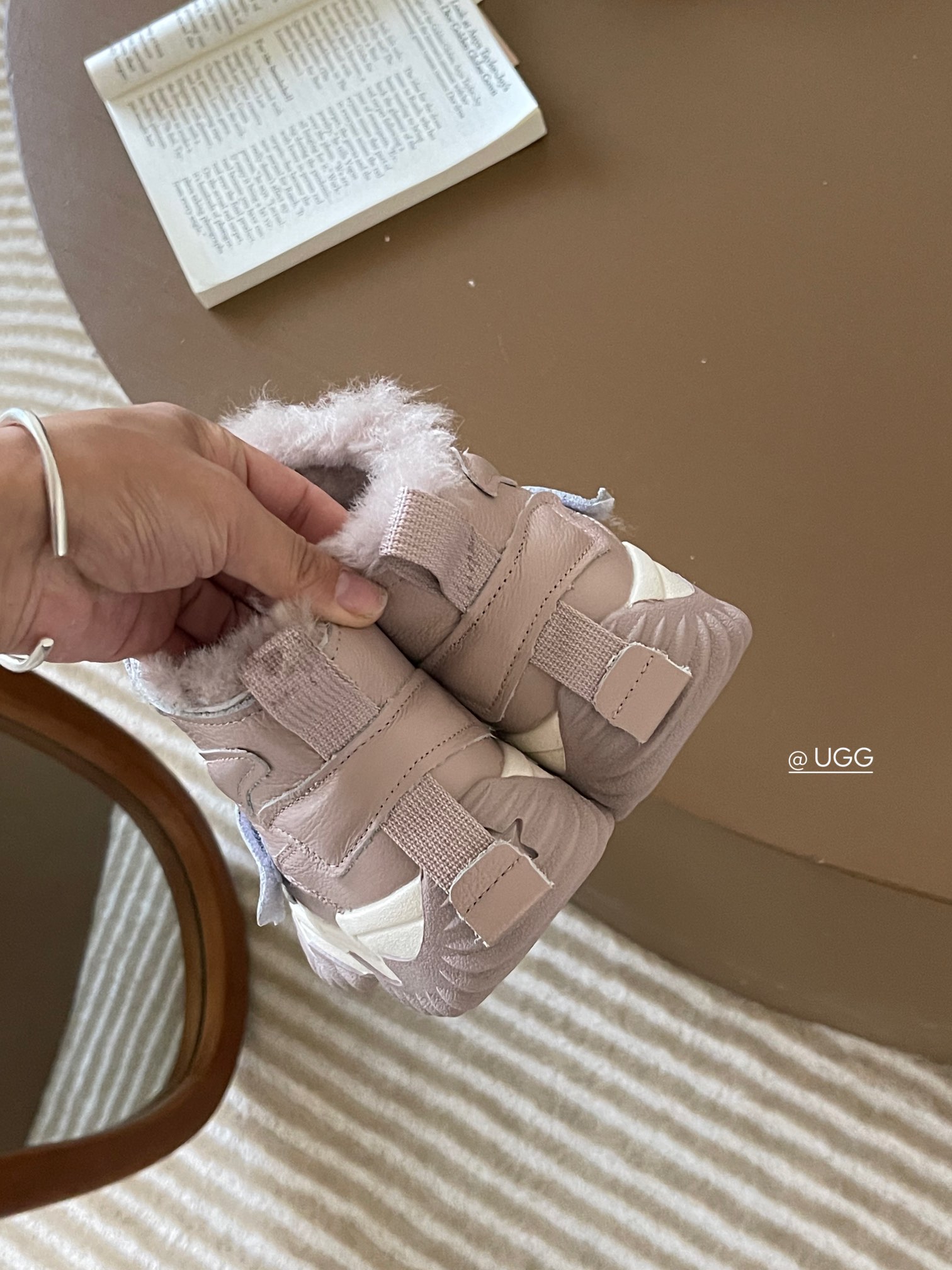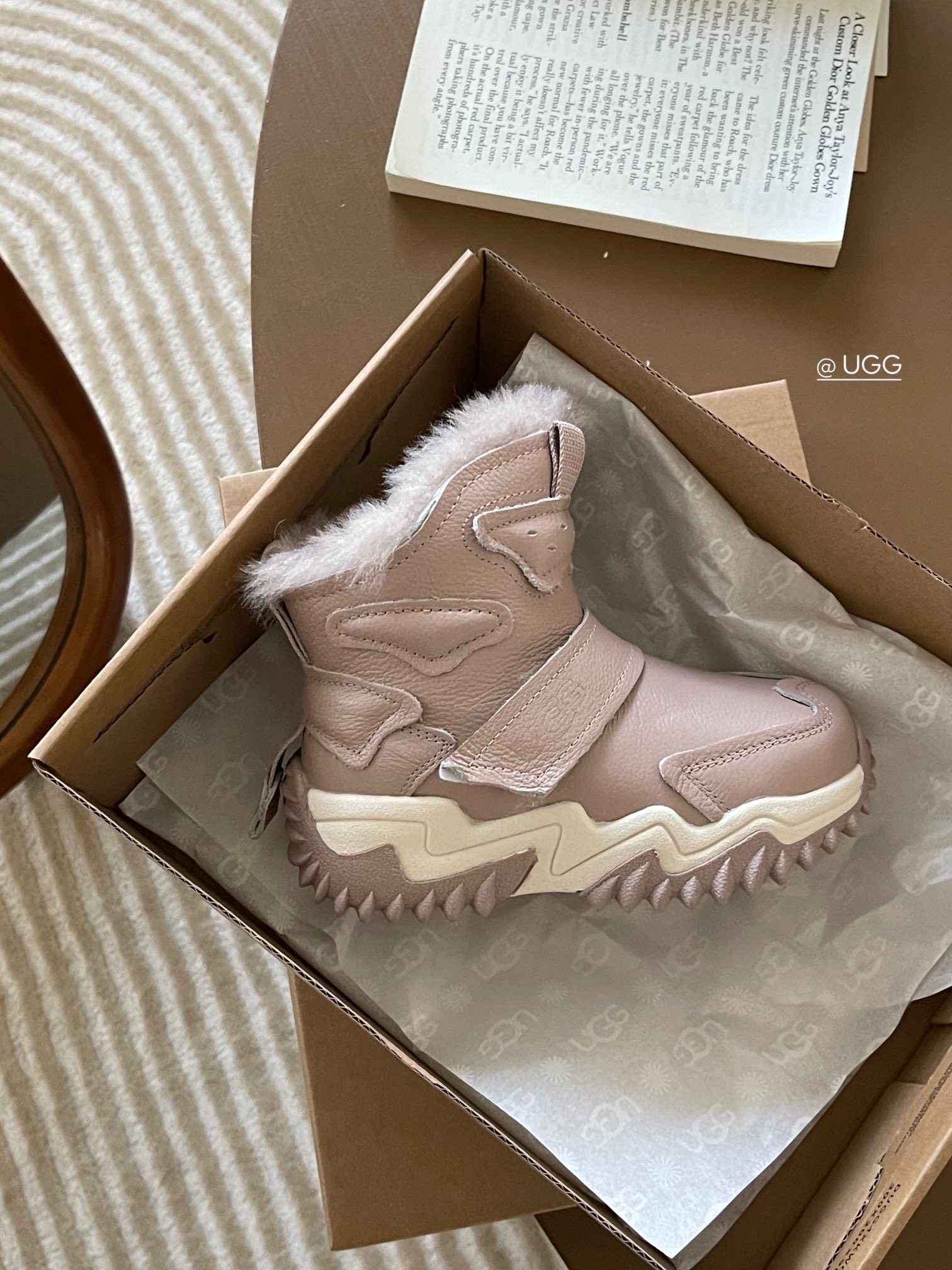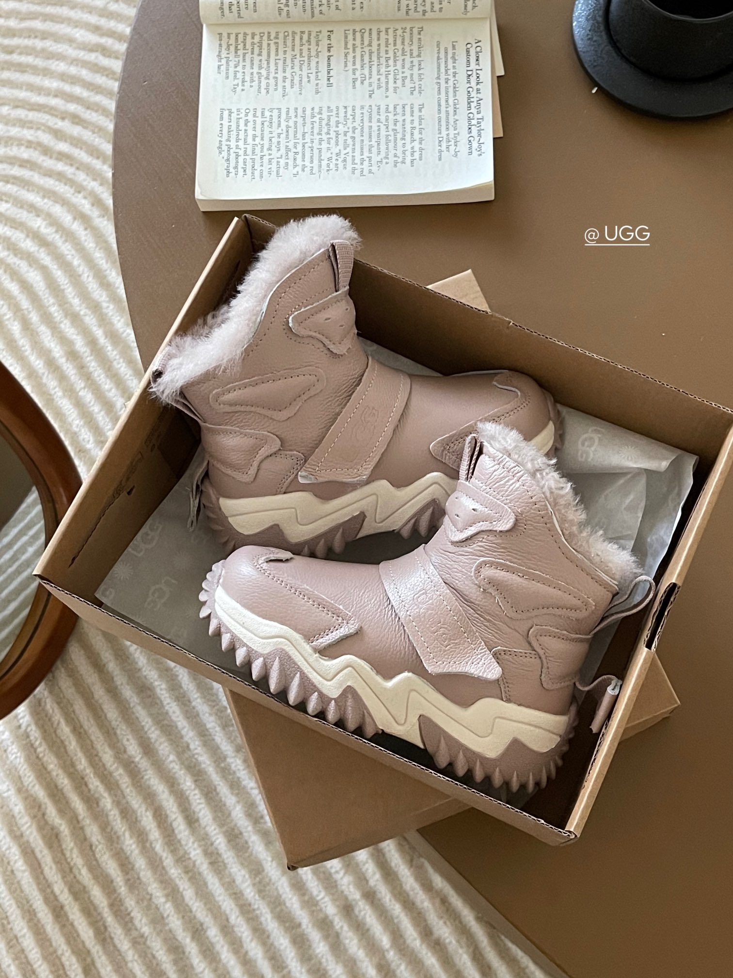 这款兒童鞋是AAAAA 1:1 质量 (非常棒). 使用了和原版一模一样的材料. 商标部分也保持了和UGG雪地靴一样. 图片拍摄是实物兒童鞋拍摄, 您所收到的实物保证和我们图片一模一样.