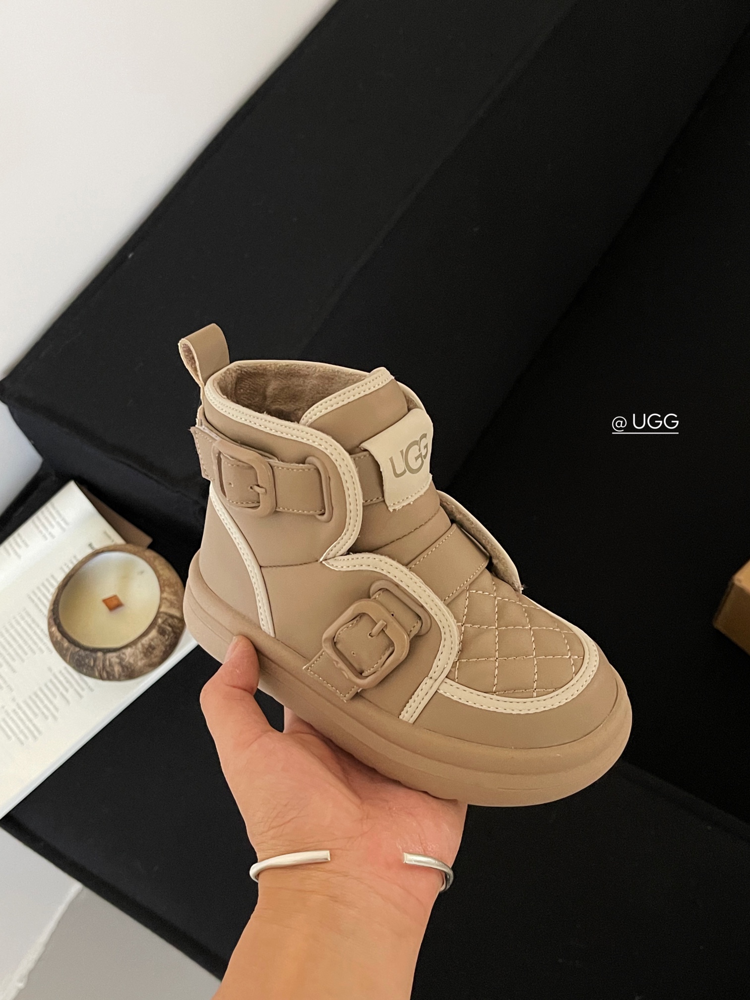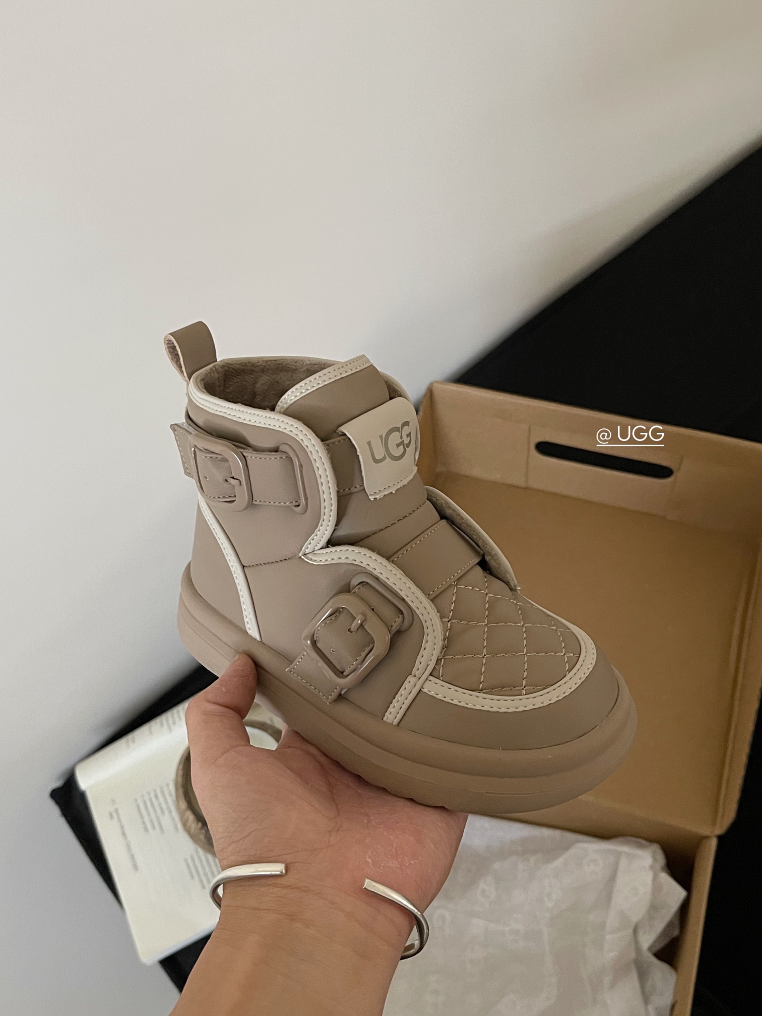 这款兒童鞋是AAAAA 1:1 质量 (非常棒). 使用了和原版一模一样的材料. 商标部分也保持了和UGG雪地靴一样. 图片拍摄是实物兒童鞋拍摄, 您所收到的实物保证和我们图片一模一样.