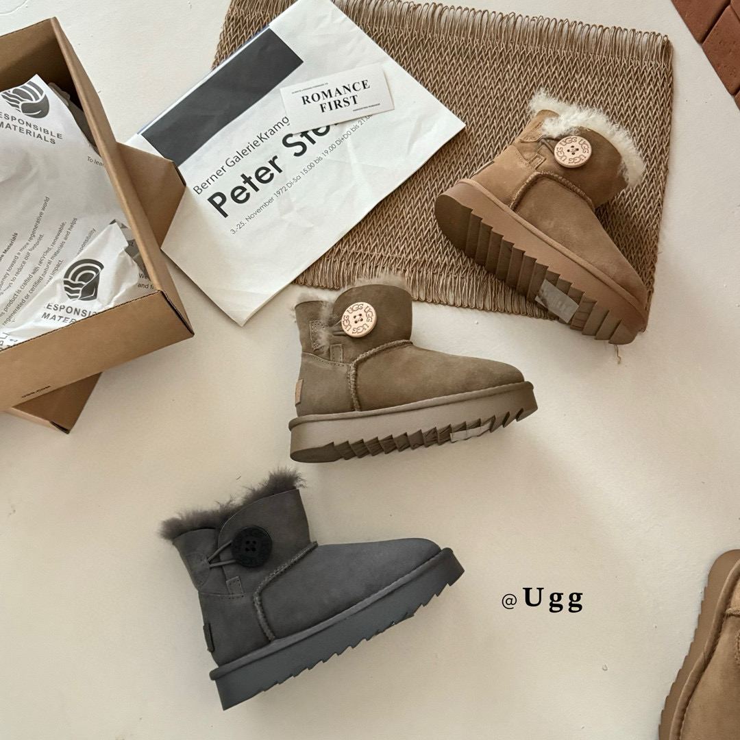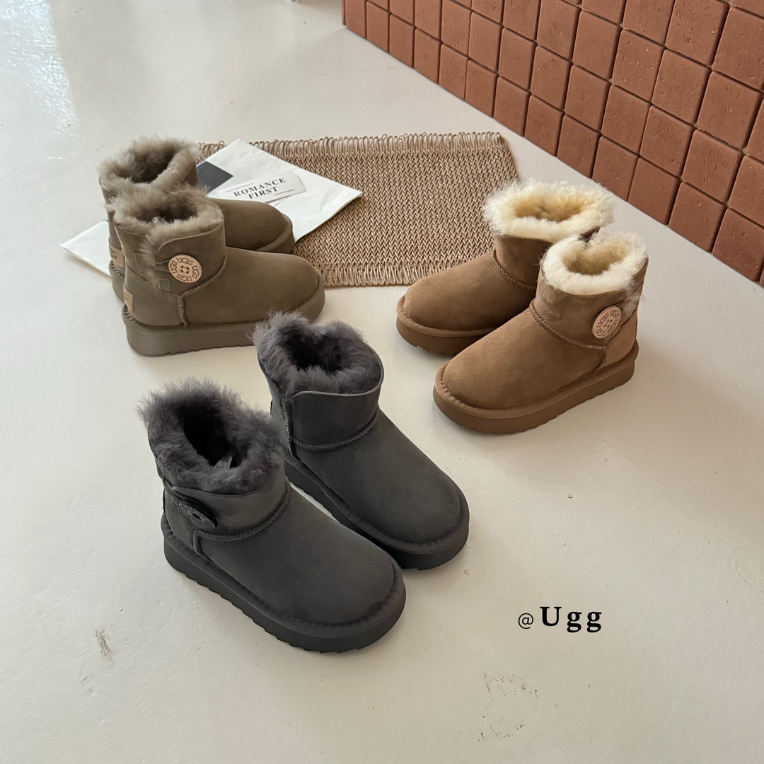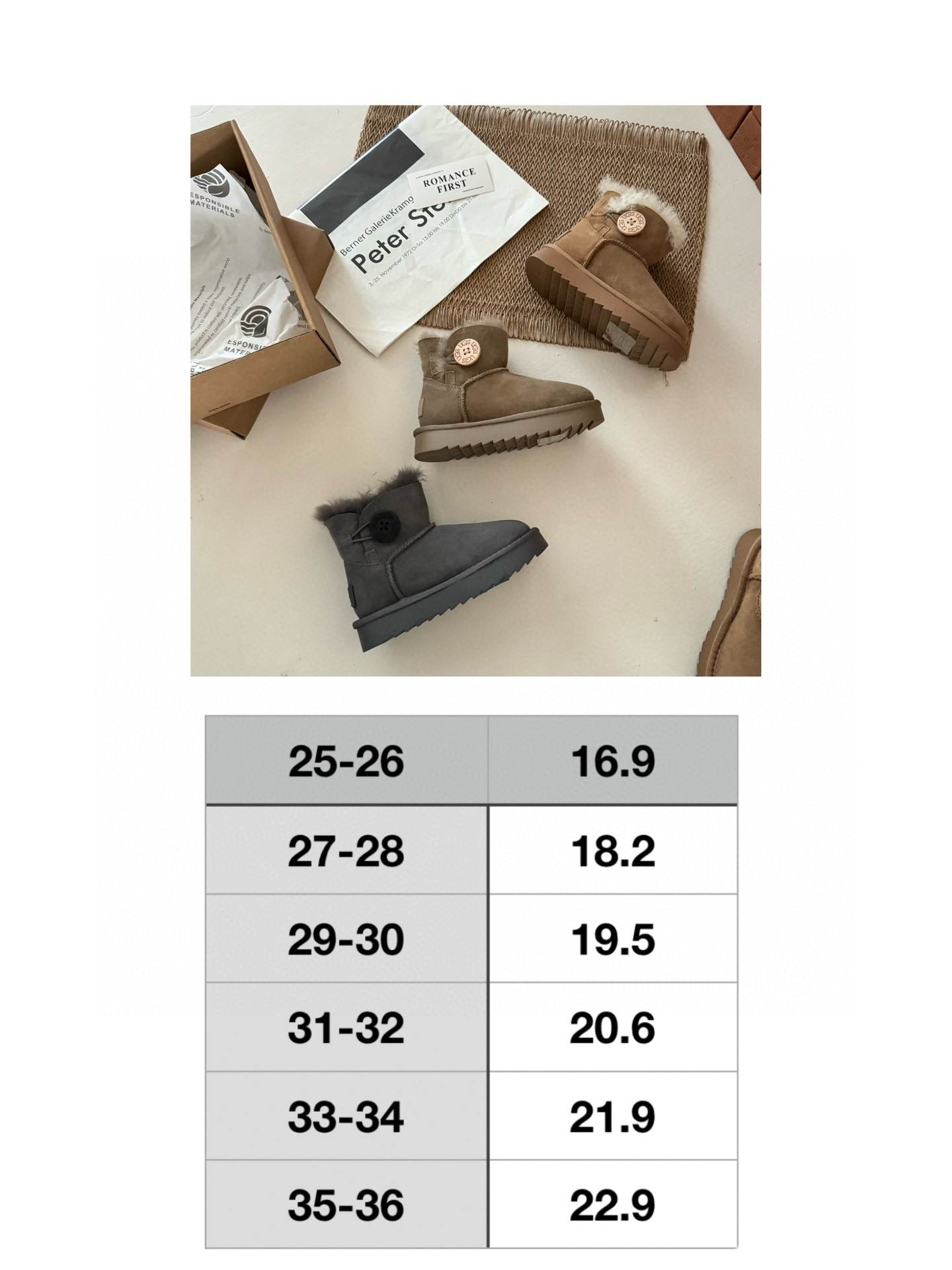 这款兒童鞋是AAAAA 1:1 质量 (非常棒). 使用了和原版一模一样的材料. 商标部分也保持了和UGG雪地靴一样. 图片拍摄是实物兒童鞋拍摄, 您所收到的实物保证和我们图片一模一样.