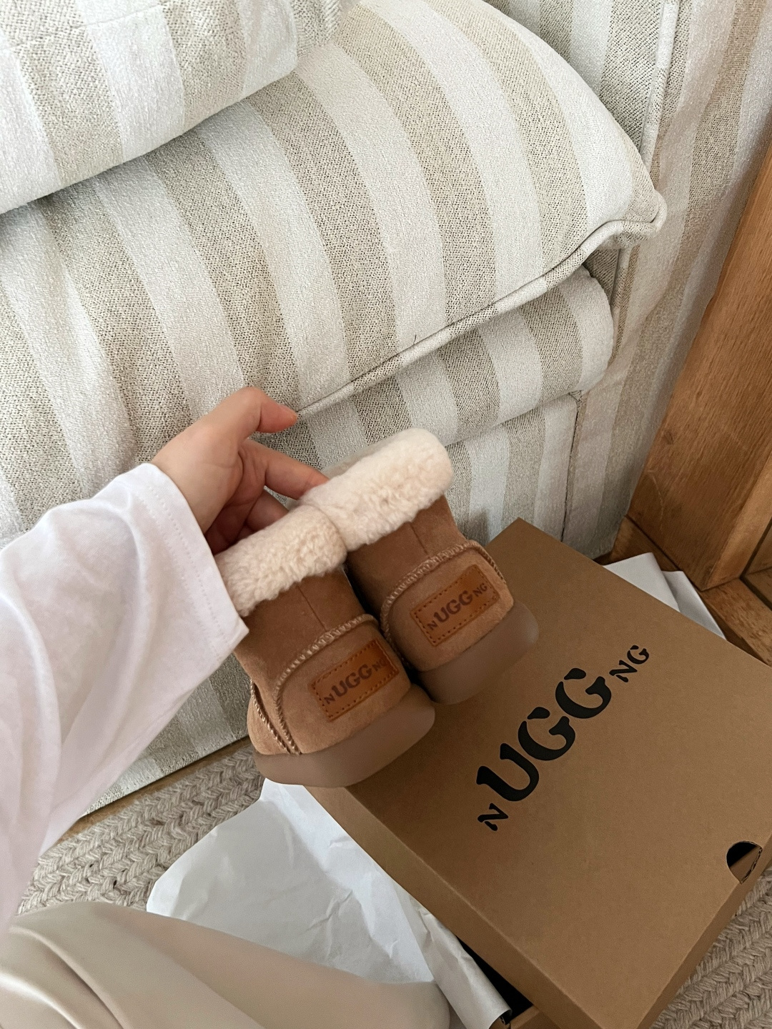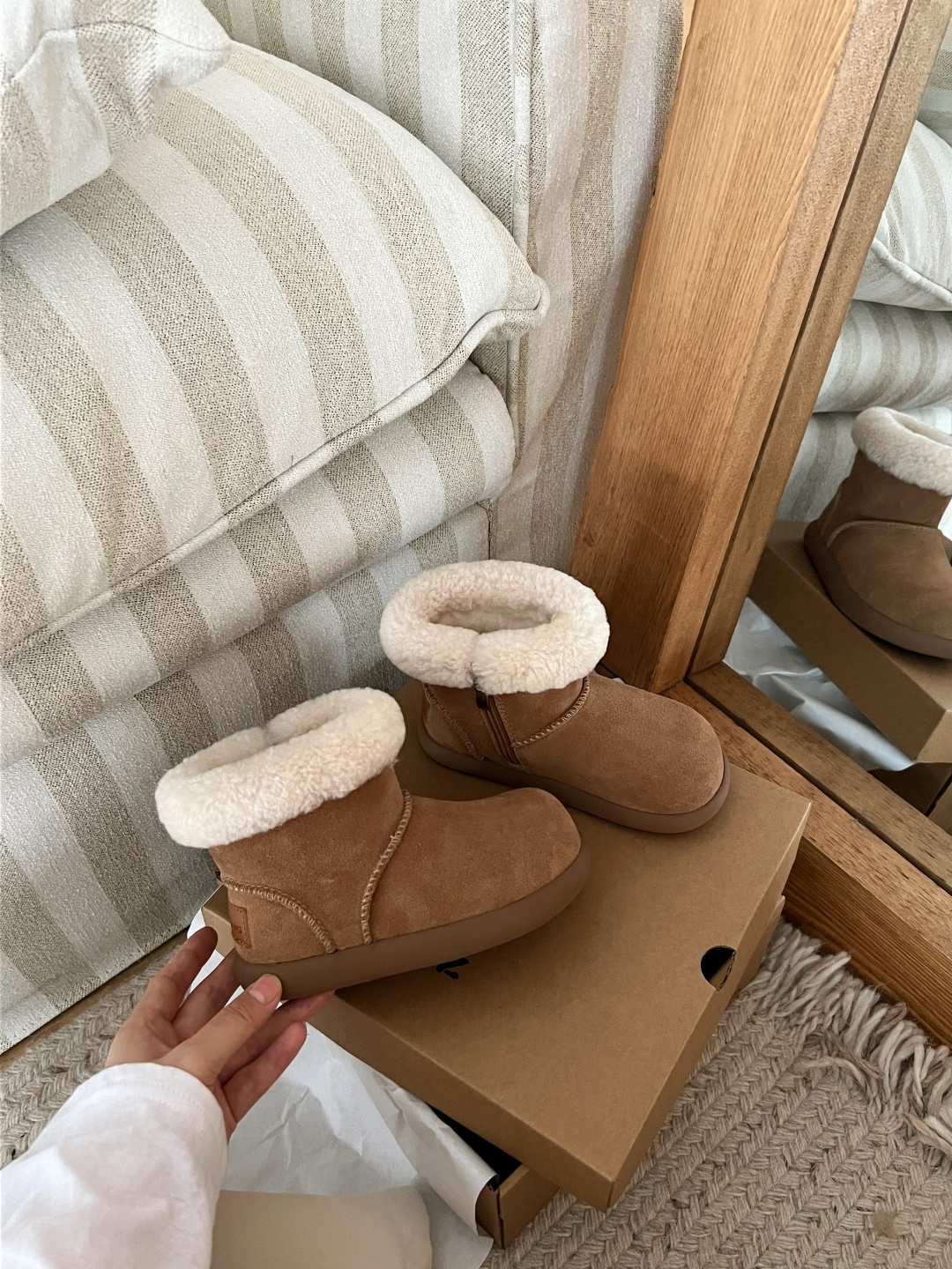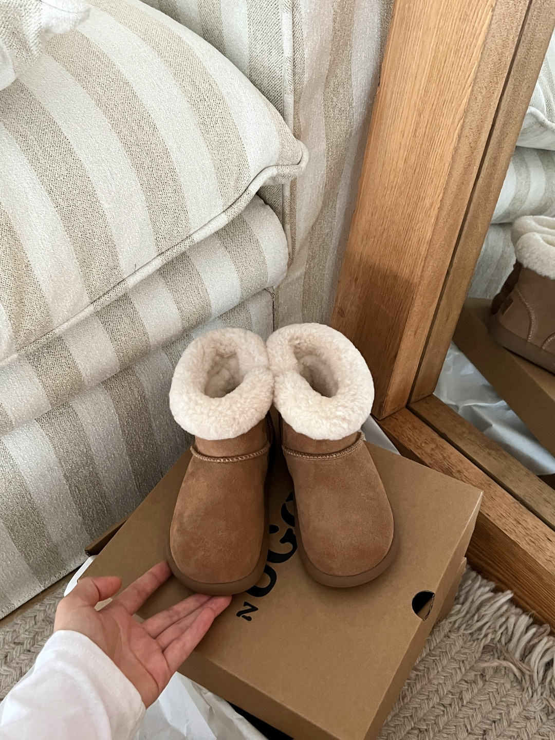 这款兒童鞋是AAAAA 1:1 质量 (非常棒). 使用了和原版一模一样的材料. 商标部分也保持了和UGG雪地靴一样. 图片拍摄是实物兒童鞋拍摄, 您所收到的实物保证和我们图片一模一样.