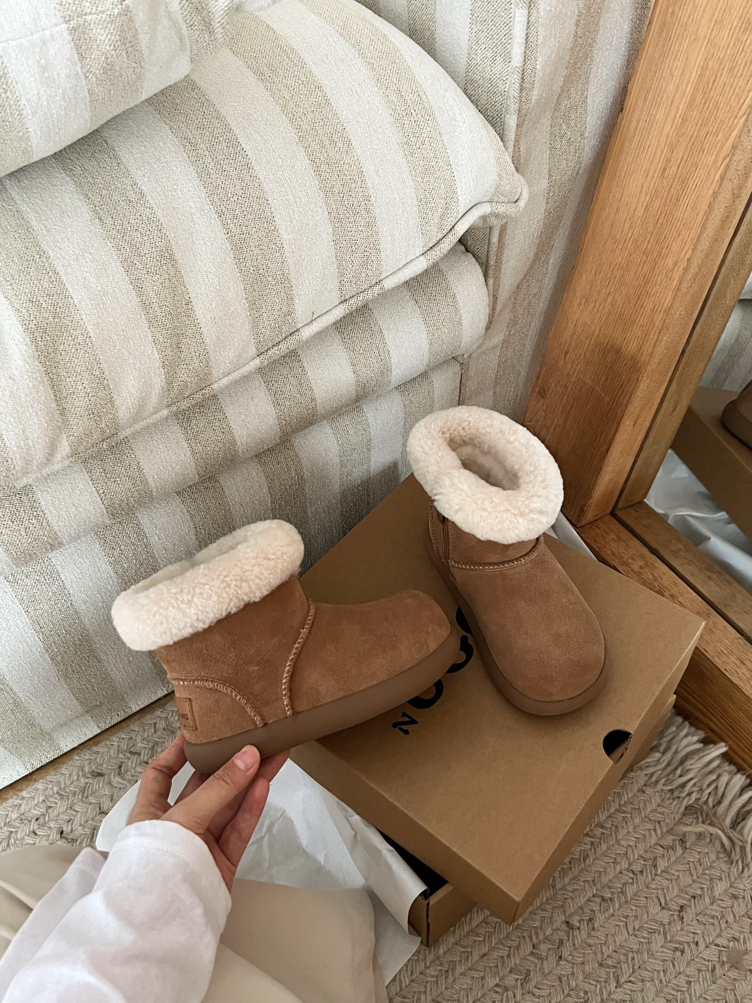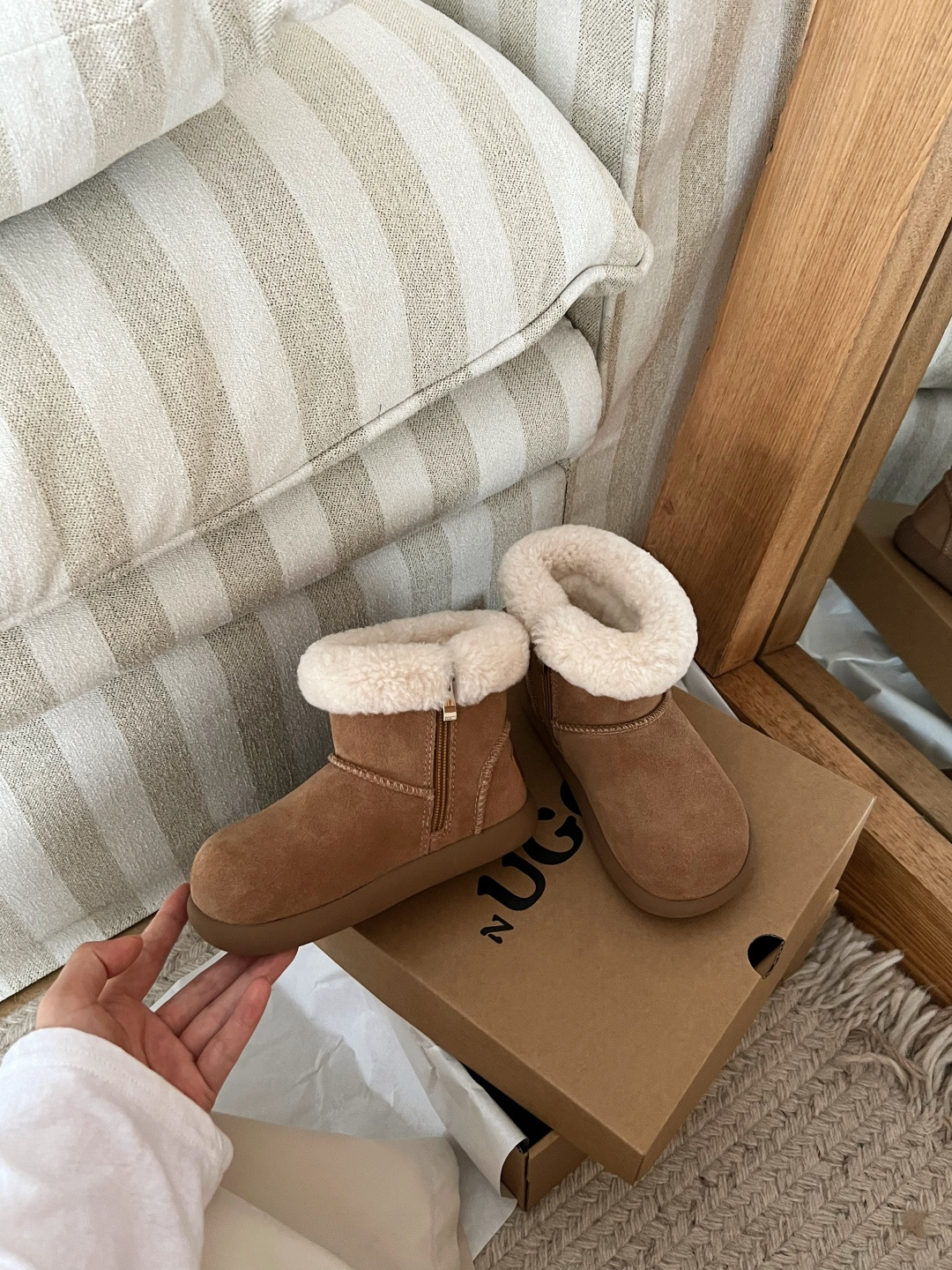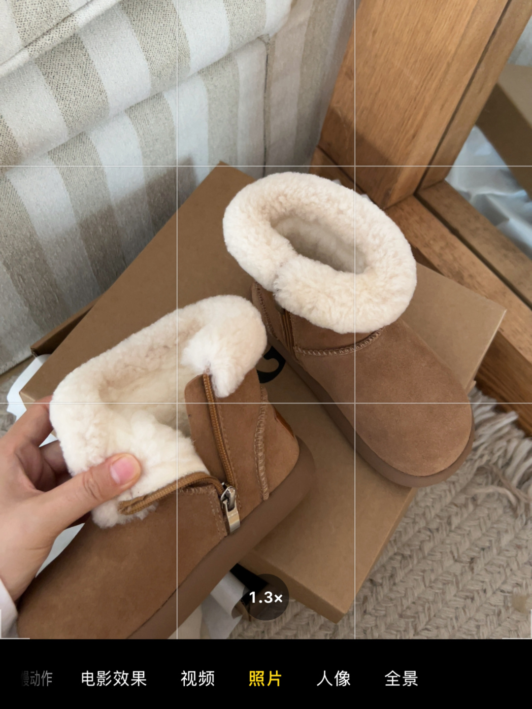 这款兒童鞋是AAAAA 1:1 质量 (非常棒). 使用了和原版一模一样的材料. 商标部分也保持了和UGG雪地靴一样. 图片拍摄是实物兒童鞋拍摄, 您所收到的实物保证和我们图片一模一样.