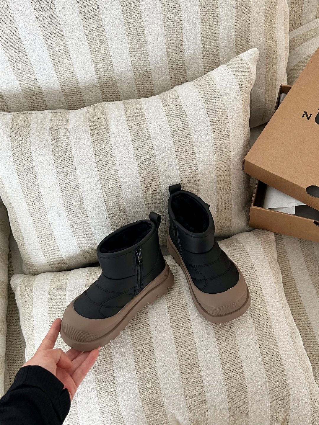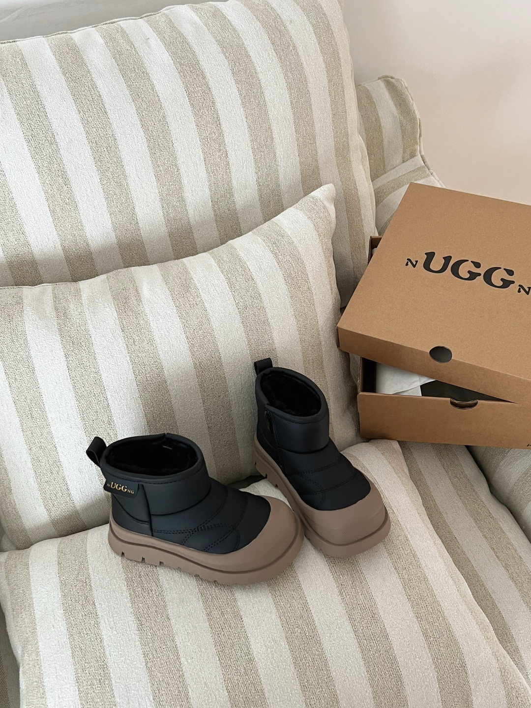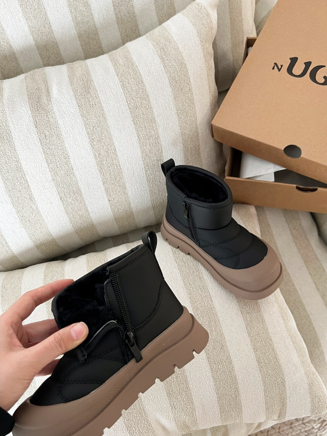 这款兒童鞋是AAAAA 1:1 质量 (非常棒). 使用了和原版一模一样的材料. 商标部分也保持了和UGG雪地靴一样. 图片拍摄是实物兒童鞋拍摄, 您所收到的实物保证和我们图片一模一样.