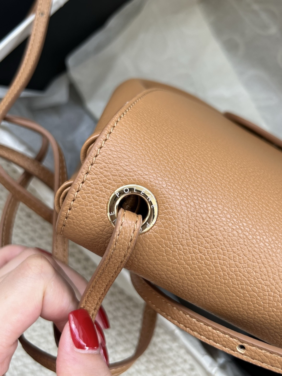 这款包包是AAAAA 1:1 质量 (非常棒). 使用了和原版一模一样的材料. 商标部分也保持了和Polene一样. 图片拍摄是实物包包拍摄, 您所收到的实物保证和我们图片一模一样.