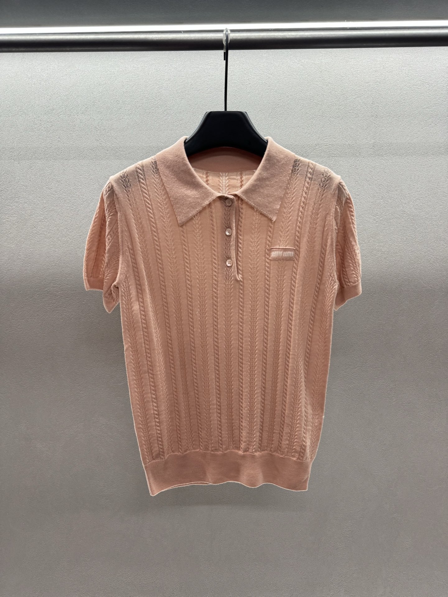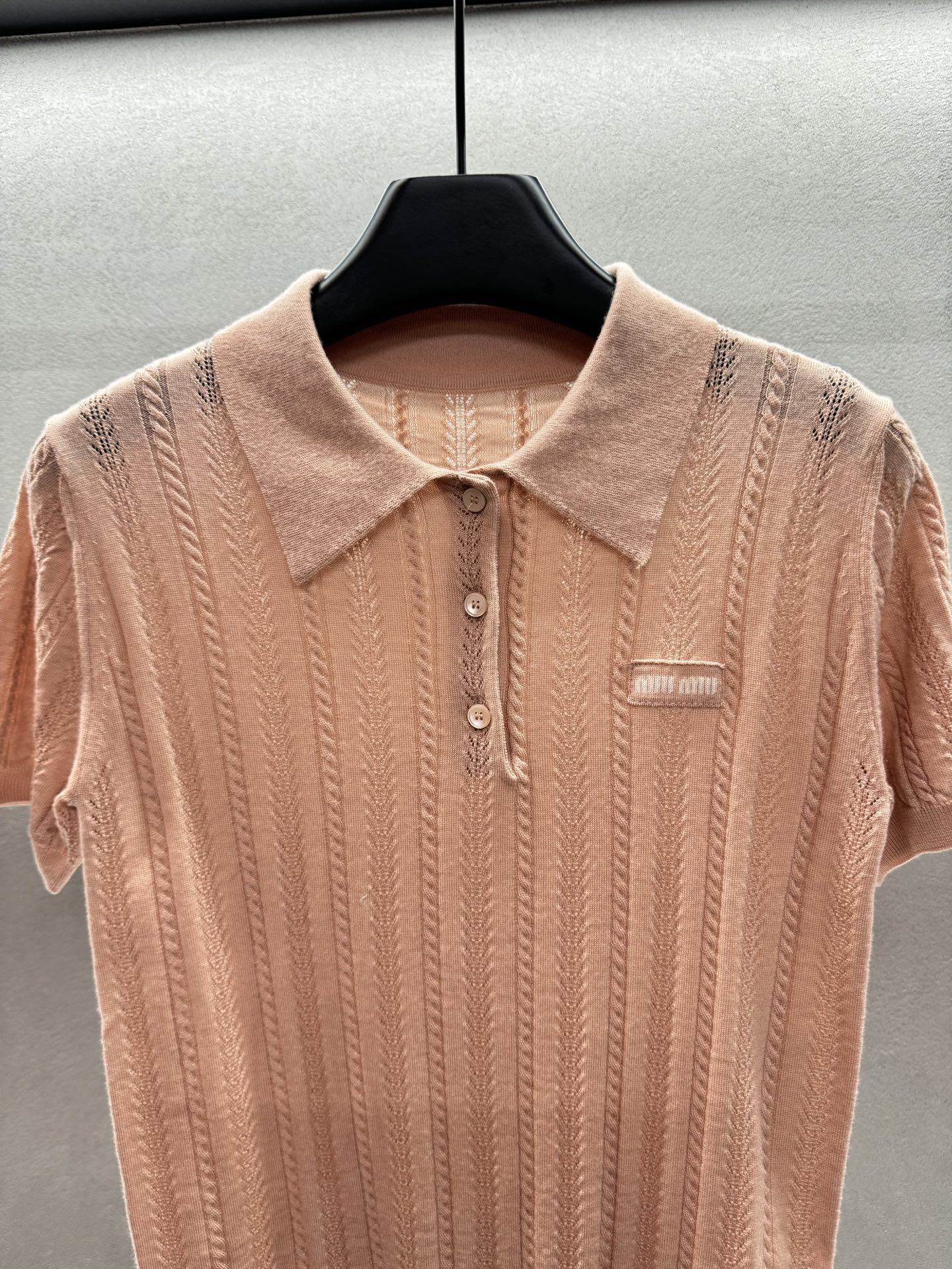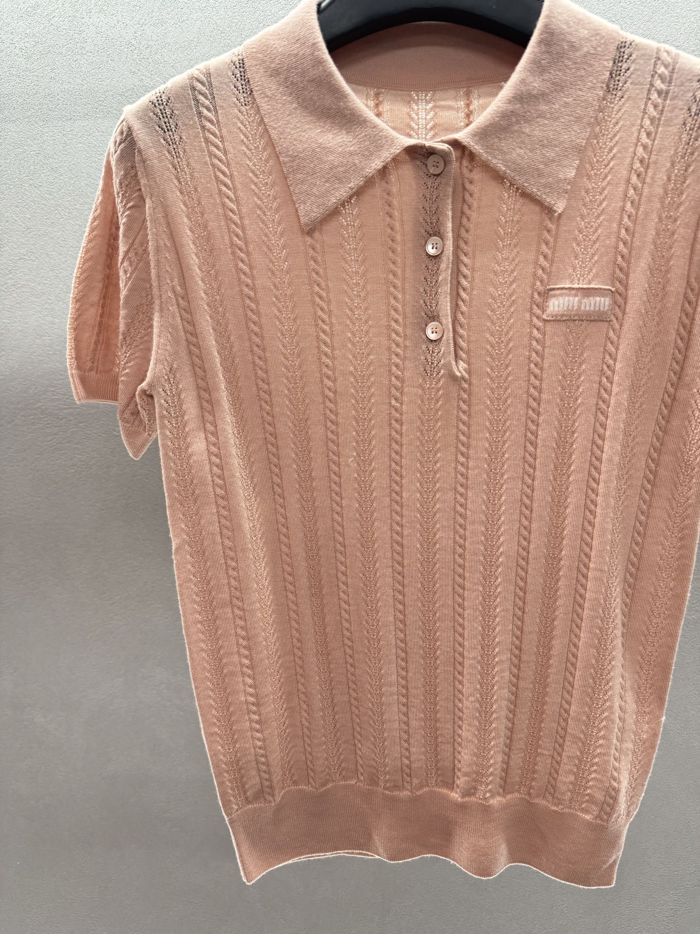 这款衣服是AAAAA 1:1 质量 (非常棒). 使用了和原版一模一样的材料. 商标部分也保持了和缪缪/Miu Miu一样. 图片拍摄是实物衣服拍摄, 您所收到的实物保证和我们图片一模一样.