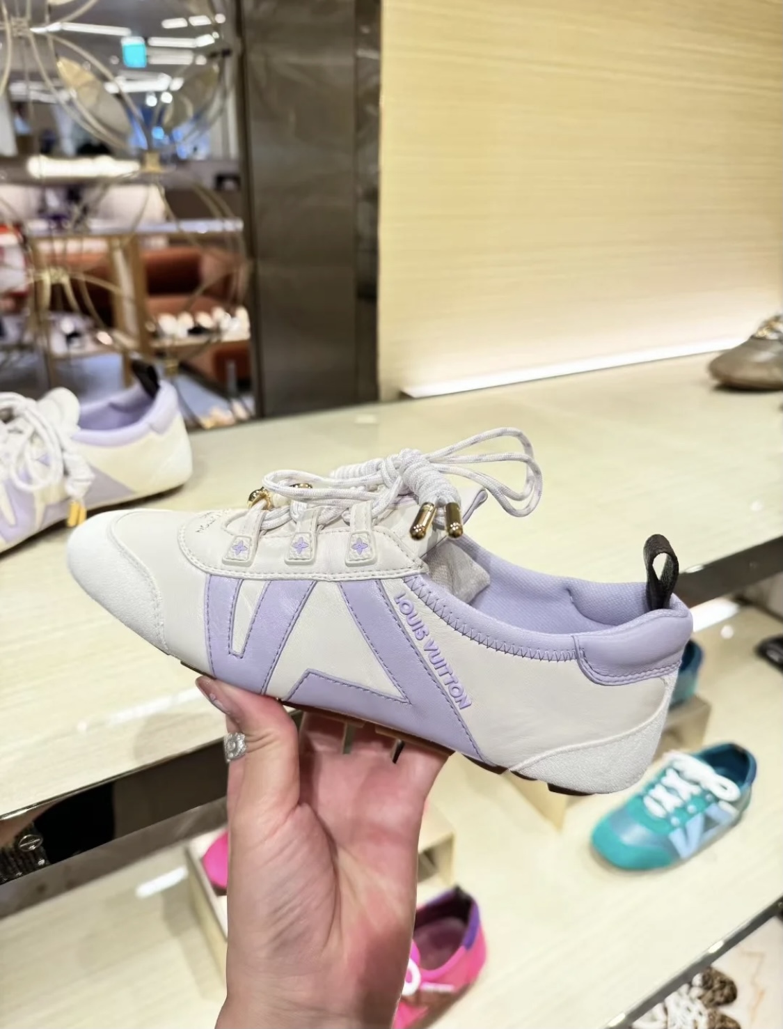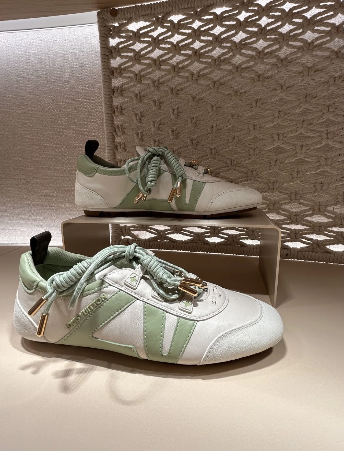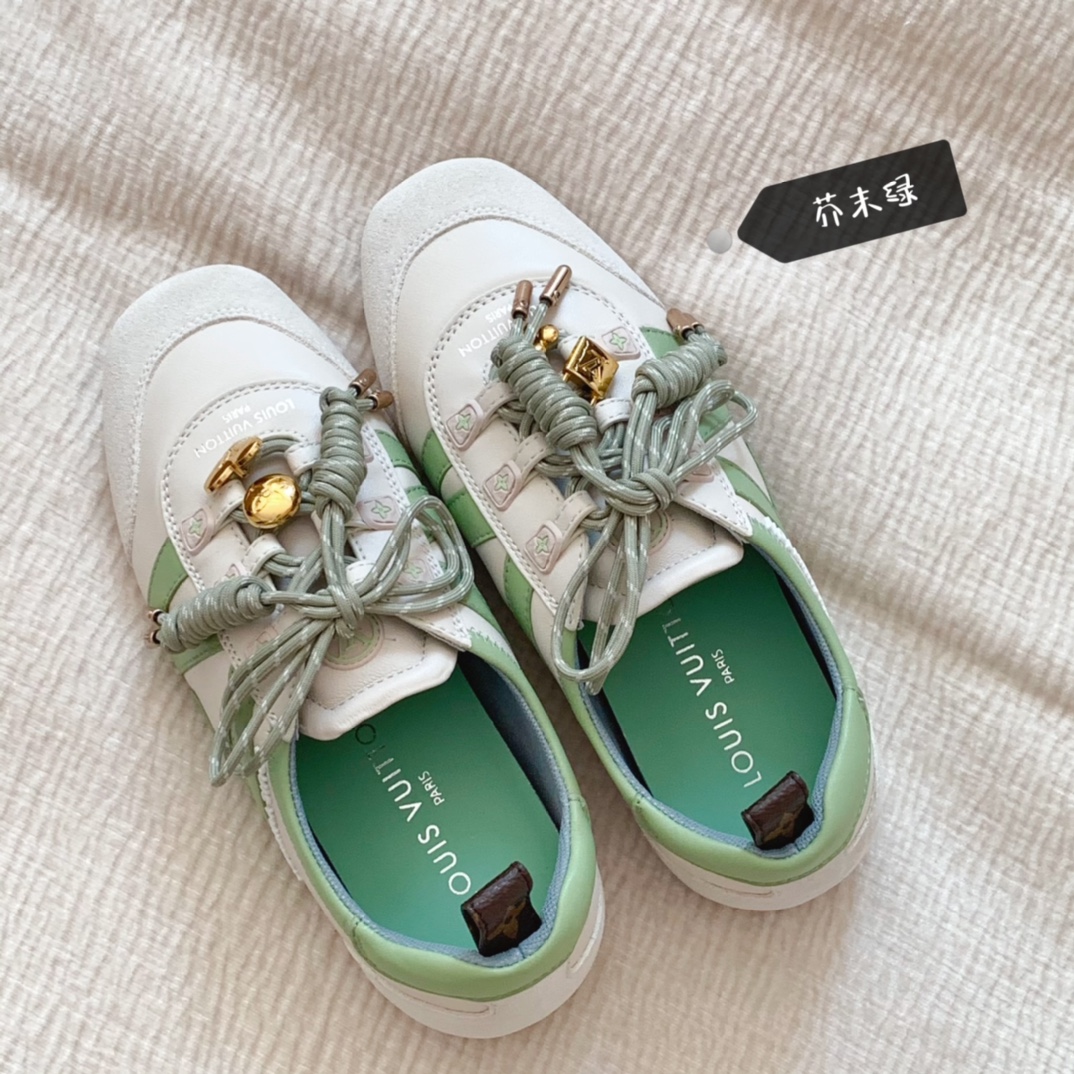 这款鞋子是AAAAA 1:1 质量 (非常棒). 使用了和原版一模一样的材料. 商标部分也保持了和路易威登/Louis Vuitton一样. 图片拍摄是实物鞋子拍摄, 您所收到的实物保证和我们图片一模一样.