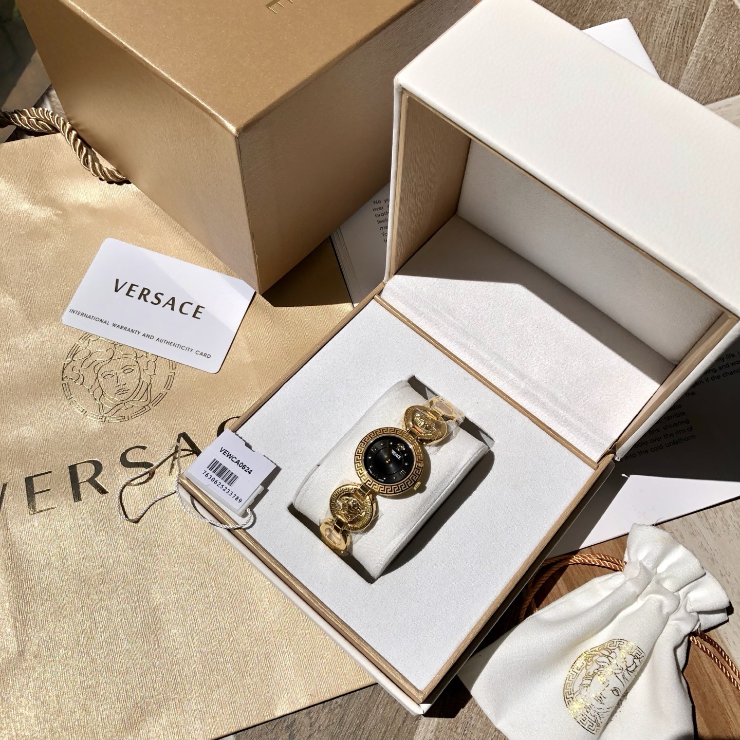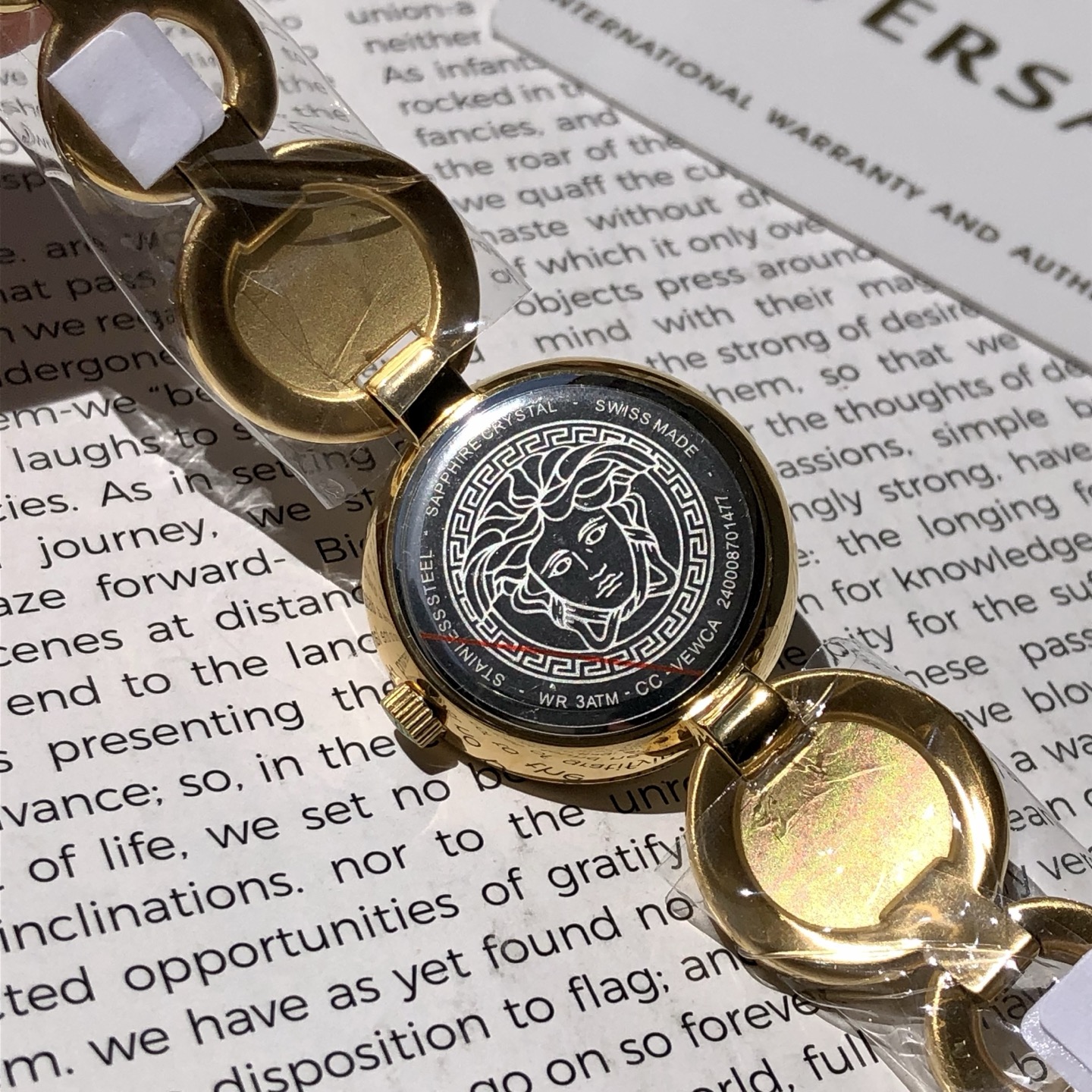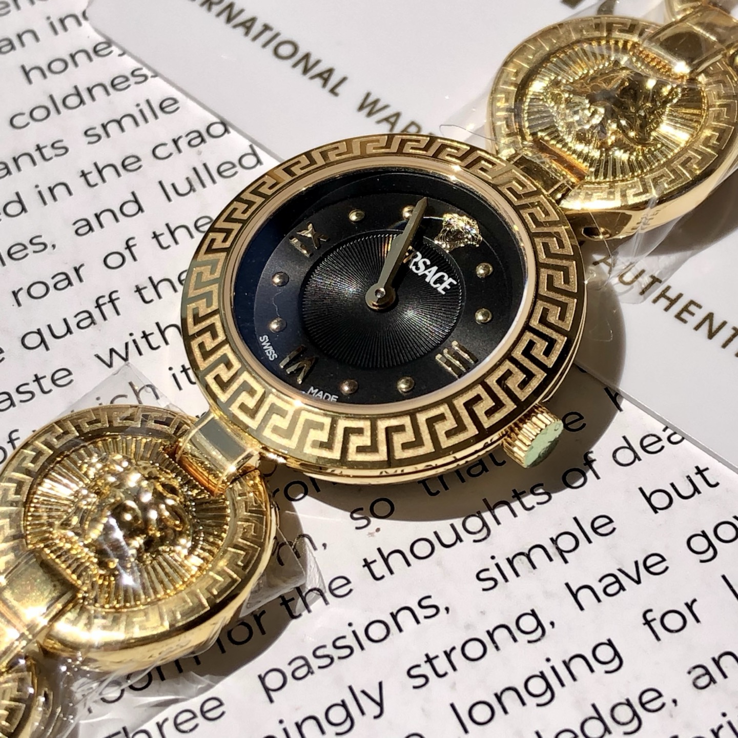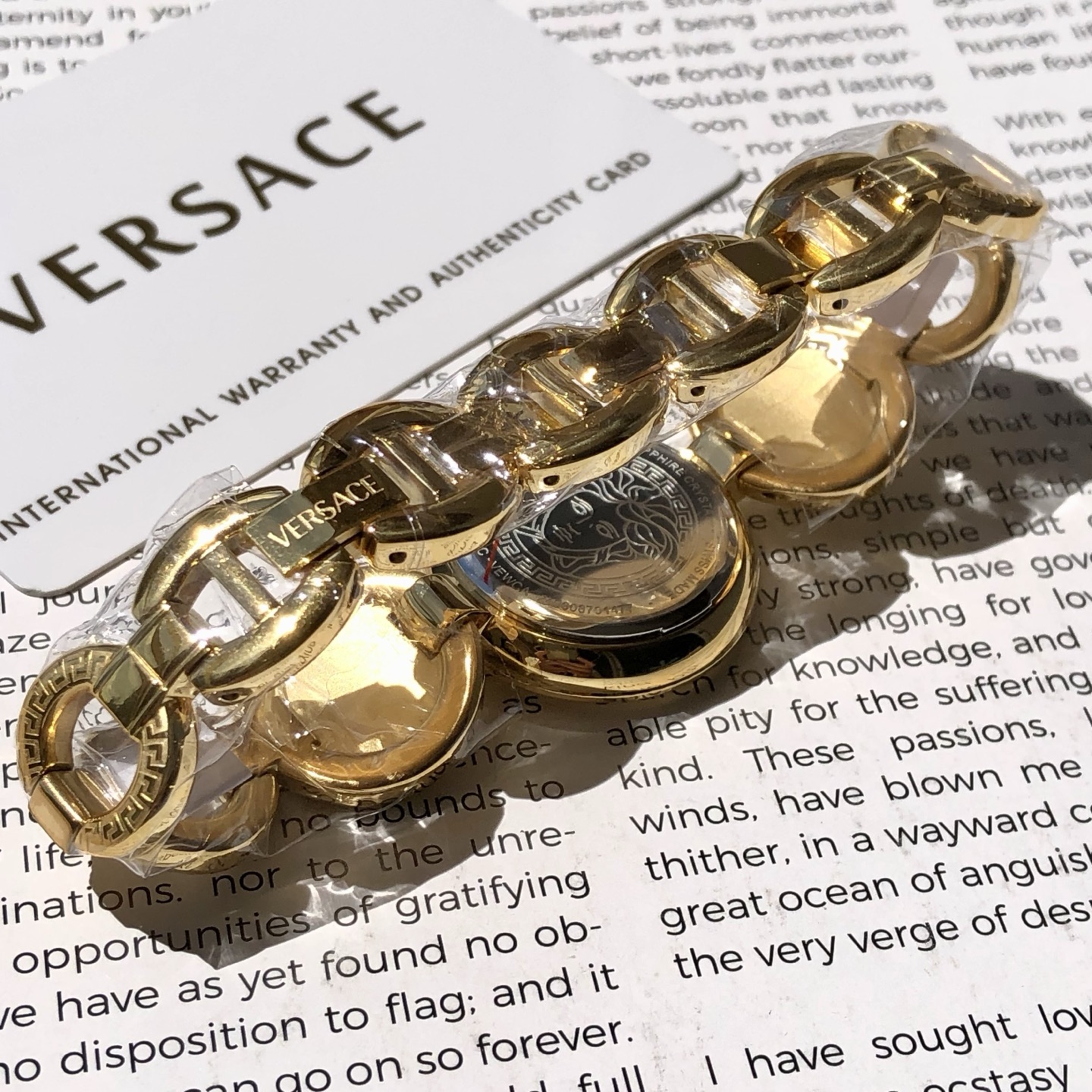 这款手表是AAAAA 1:1 质量 (非常棒). 使用了和原版一模一样的材料. 商标部分也保持了和范思哲/Versace一样. 图片拍摄是实物手表拍摄, 您所收到的实物保证和我们图片一模一样.
