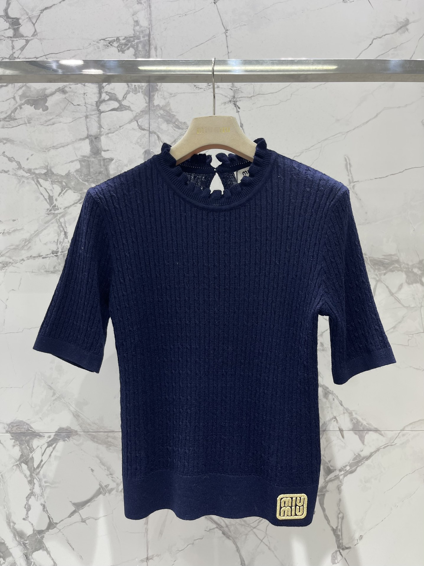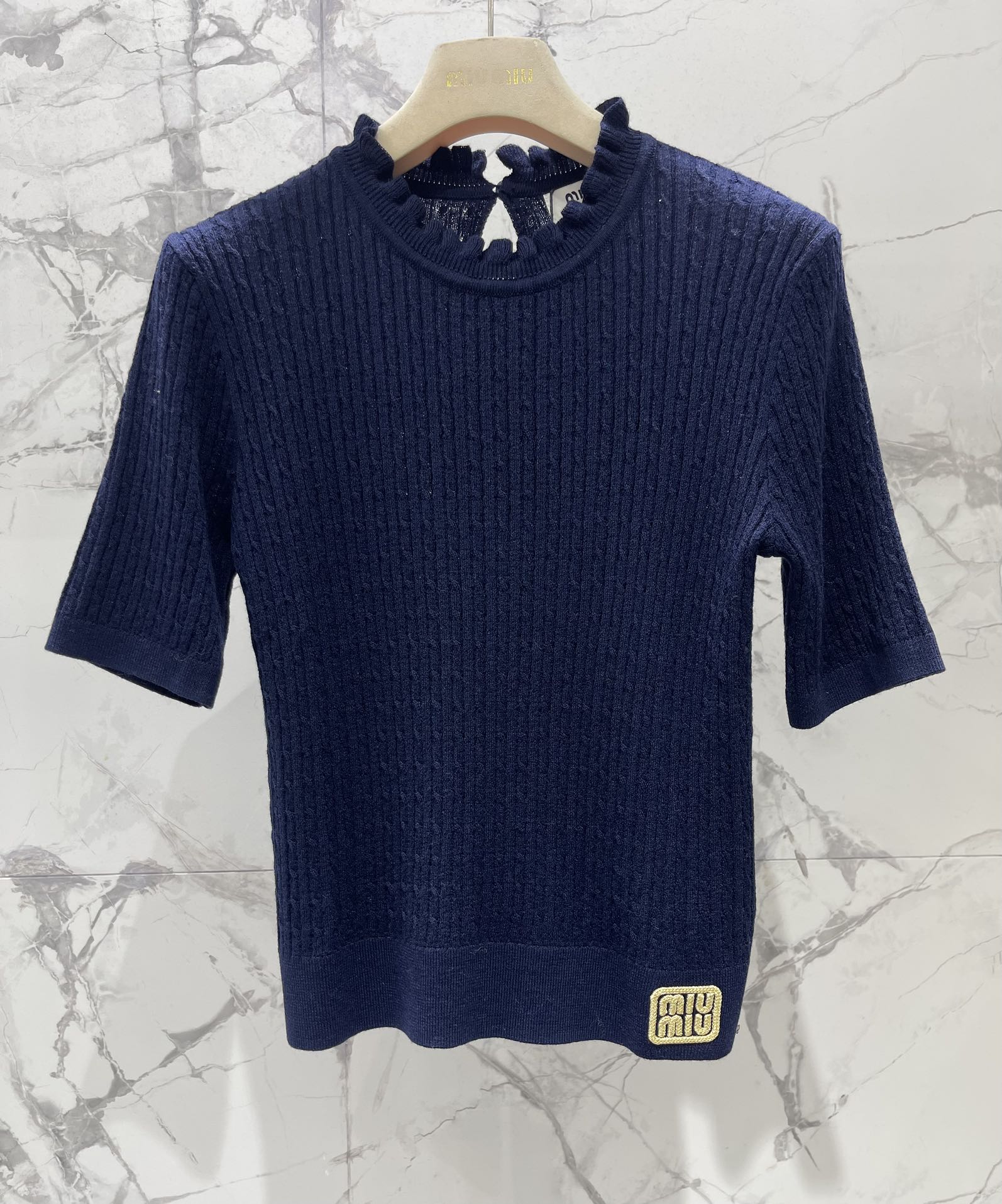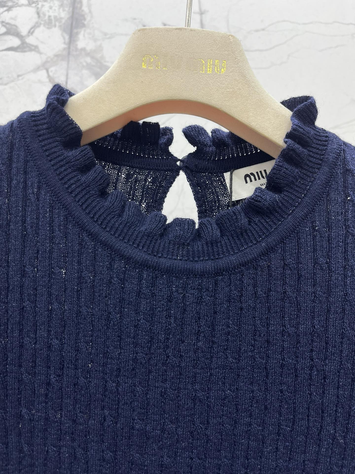 这款衣服是AAAAA 1:1 质量 (非常棒). 使用了和原版一模一样的材料. 商标部分也保持了和缪缪/Miu Miu一样. 图片拍摄是实物衣服拍摄, 您所收到的实物保证和我们图片一模一样.