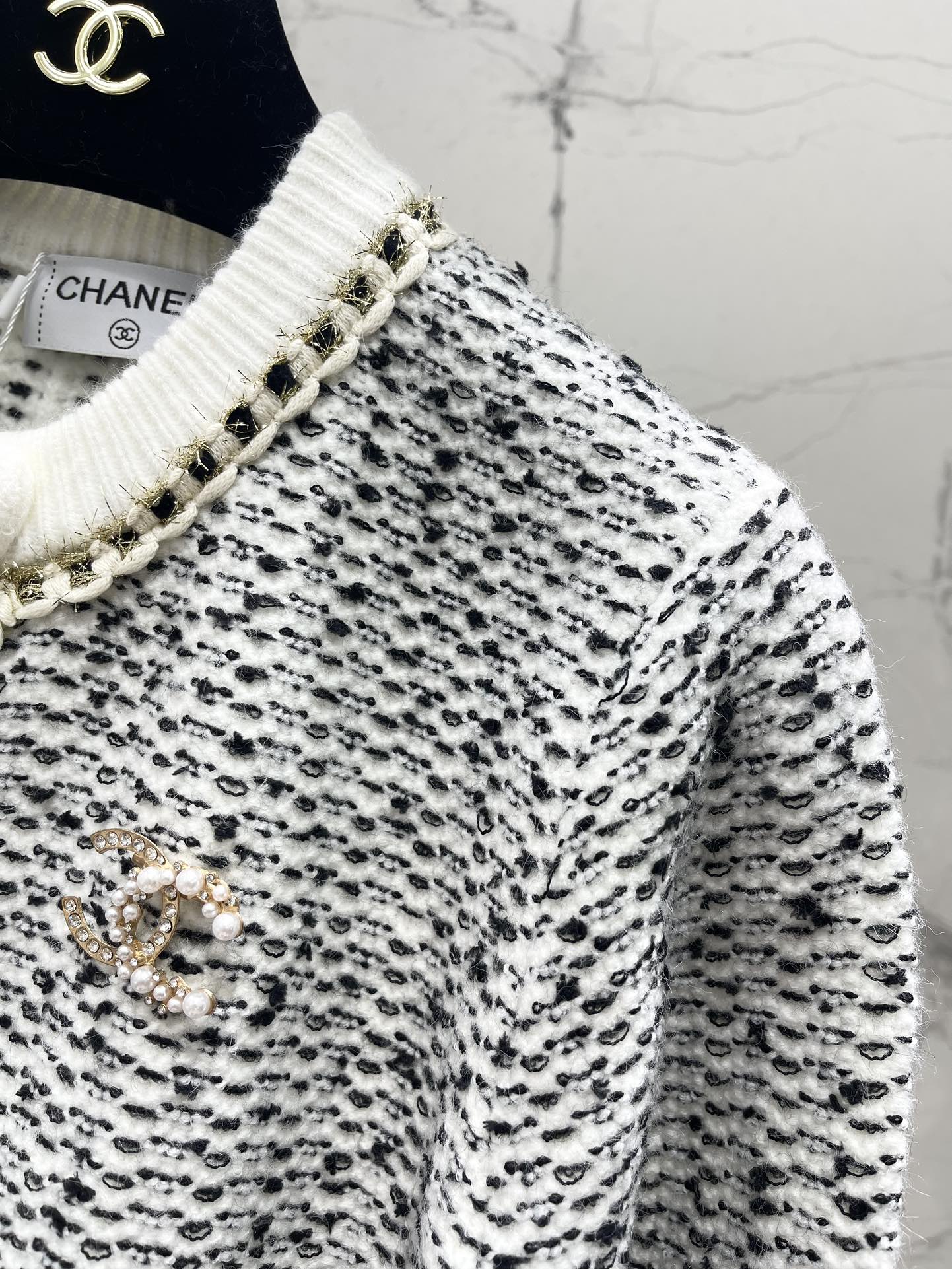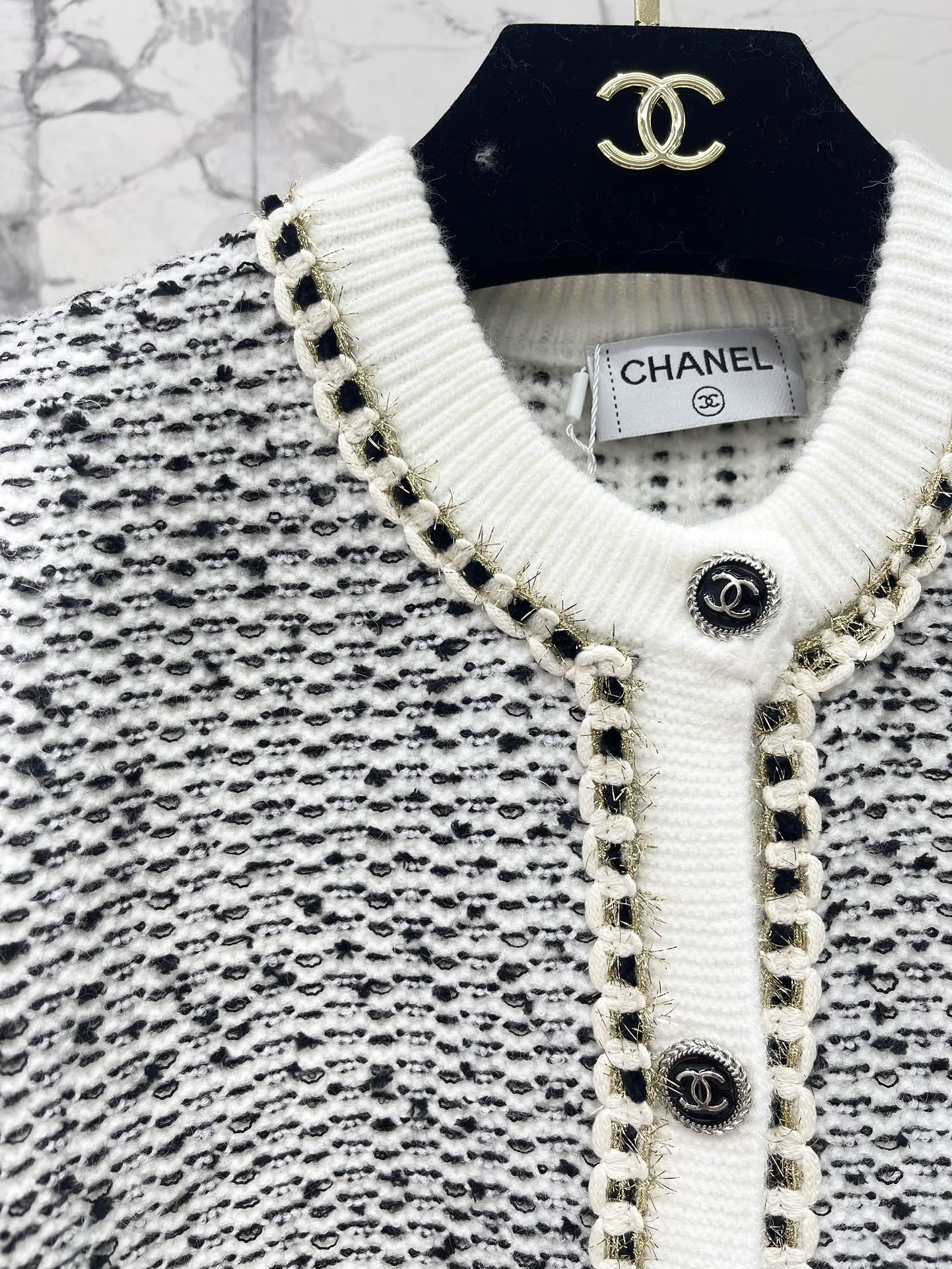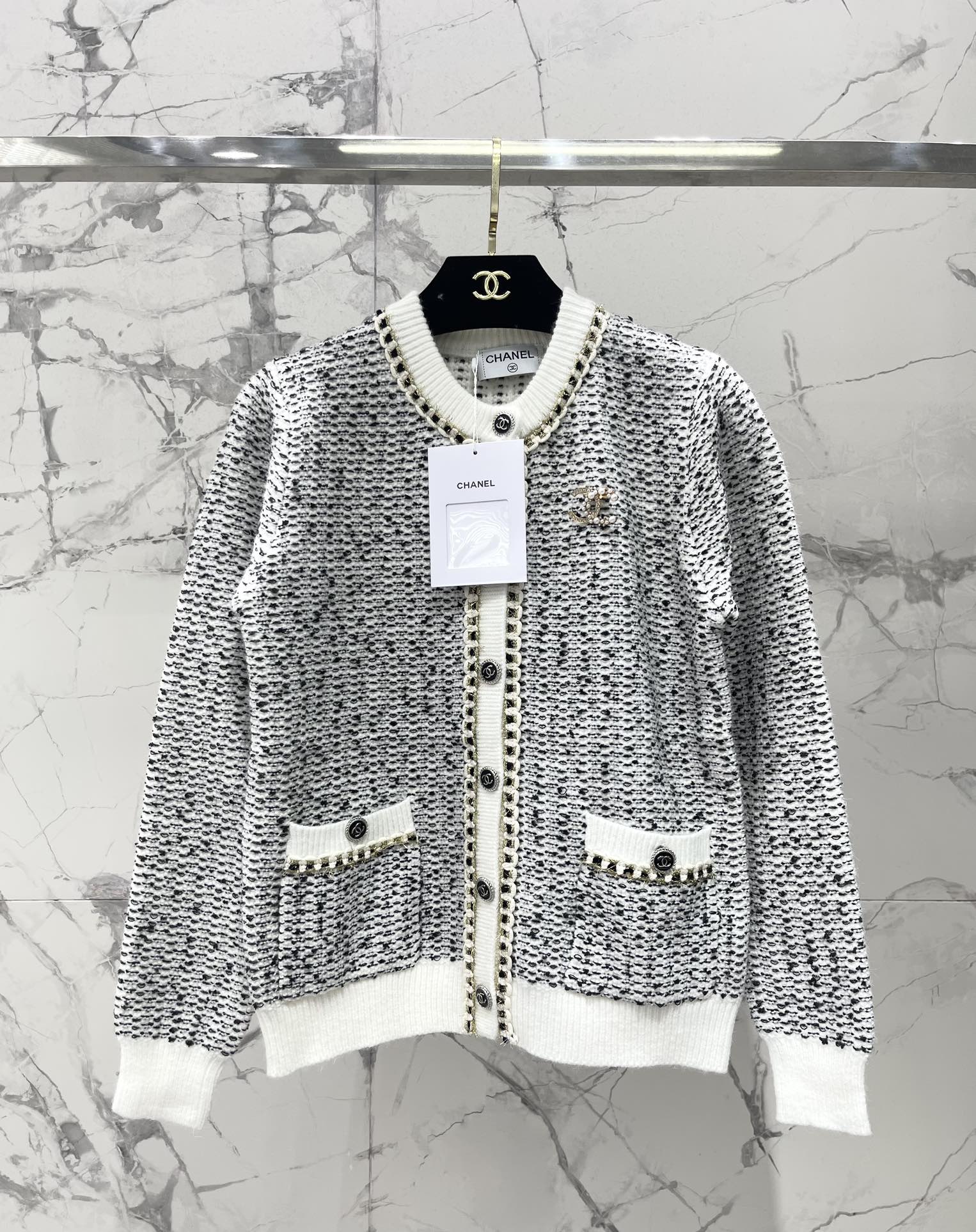 这款衣服是AAAAA 1:1 质量 (非常棒). 使用了和原版一模一样的材料. 商标部分也保持了和香奈儿/Chanel一样. 图片拍摄是实物衣服拍摄, 您所收到的实物保证和我们图片一模一样.