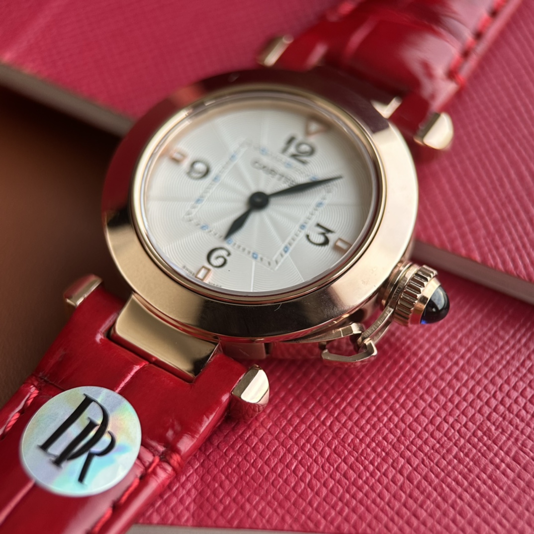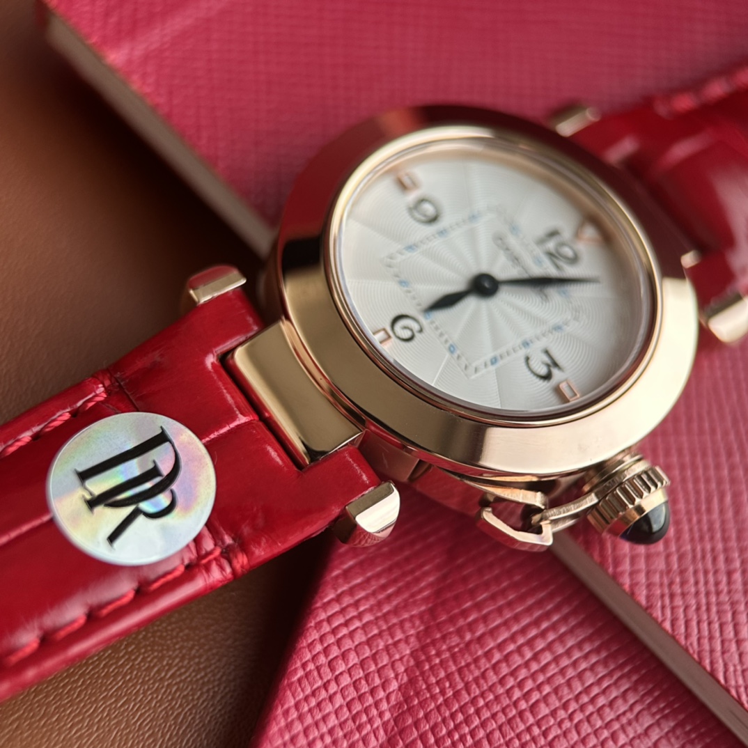 这款手表是AAAAA 1:1 质量 (非常棒). 使用了和原版一模一样的材料. 商标部分也保持了和卡地亚/Cartier一样. 图片拍摄是实物手表拍摄, 您所收到的实物保证和我们图片一模一样.