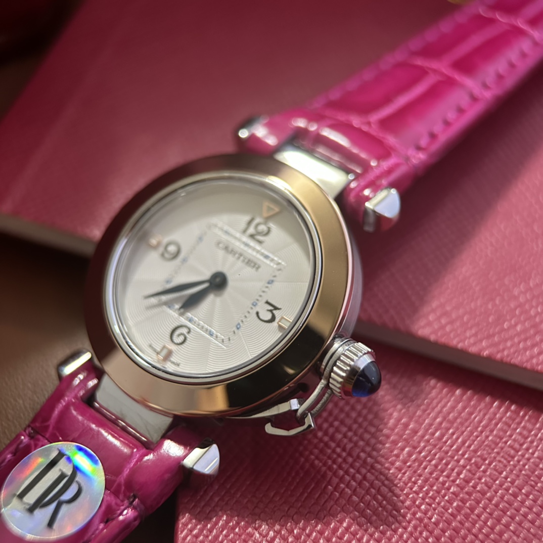 这款手表是AAAAA 1:1 质量 (非常棒). 使用了和原版一模一样的材料. 商标部分也保持了和卡地亚/Cartier一样. 图片拍摄是实物手表拍摄, 您所收到的实物保证和我们图片一模一样.