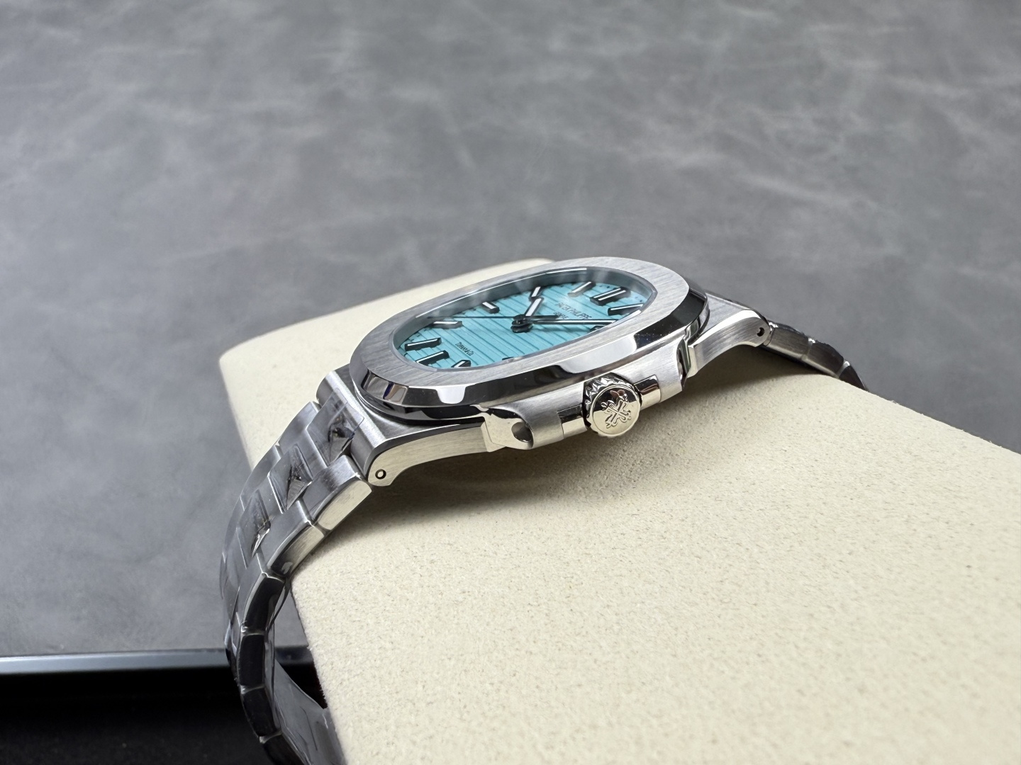 这款手表是AAAAA 1:1 质量 (非常棒). 使用了和原版一模一样的材料. 商标部分也保持了和百达翡丽/Patek Philippe一样. 图片拍摄是实物手表拍摄, 您所收到的实物保证和我们图片一模一样.