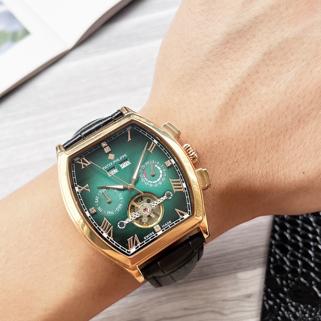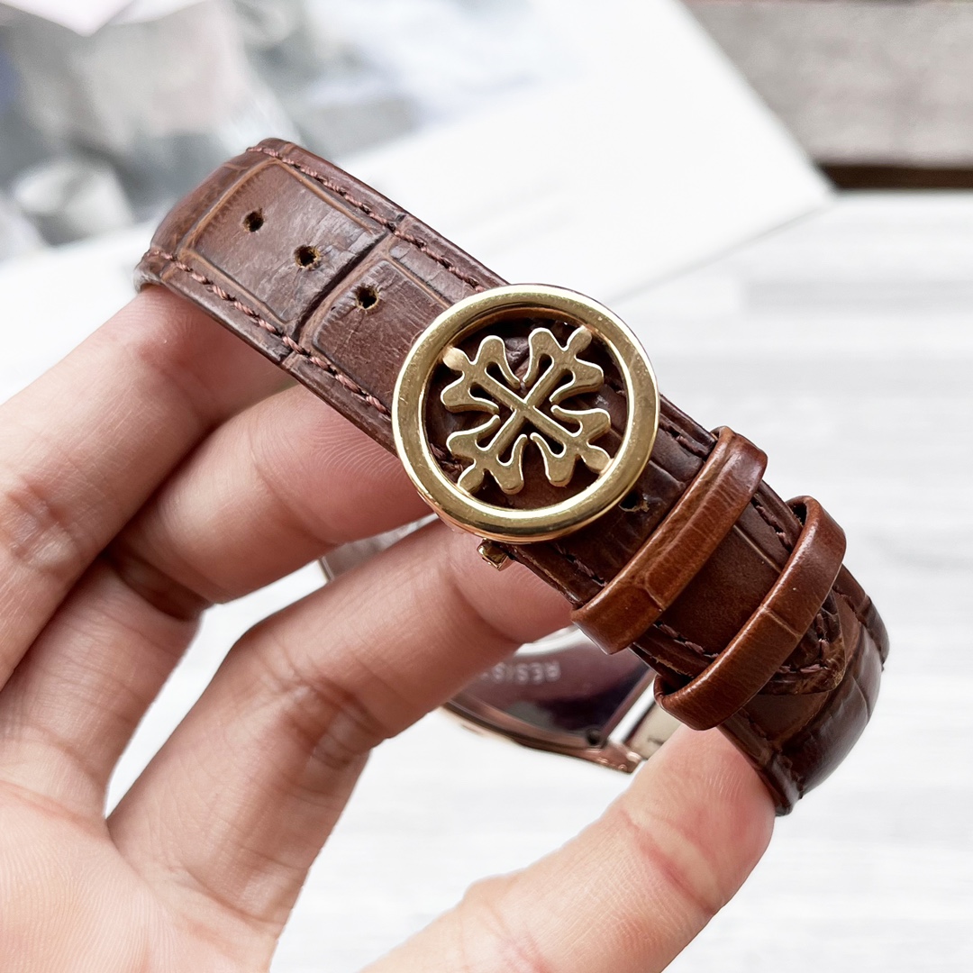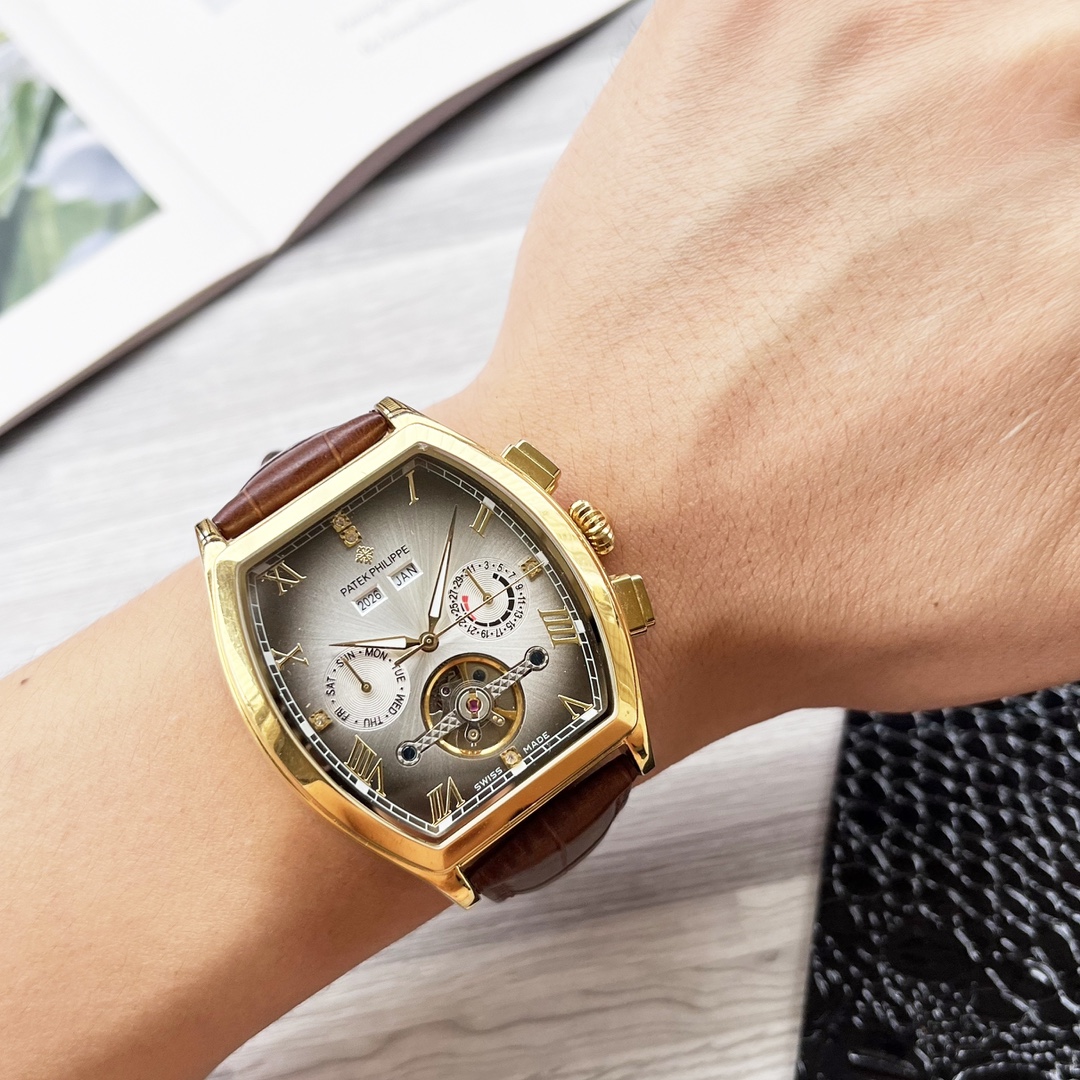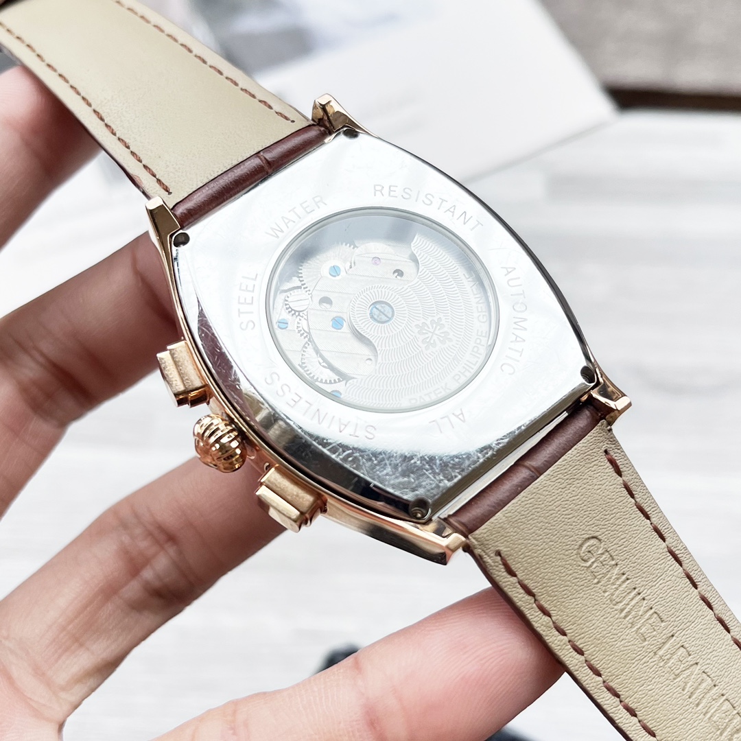 这款手表是AAAAA 1:1 质量 (非常棒). 使用了和原版一模一样的材料. 商标部分也保持了和百达翡丽/Patek Philippe一样. 图片拍摄是实物手表拍摄, 您所收到的实物保证和我们图片一模一样.