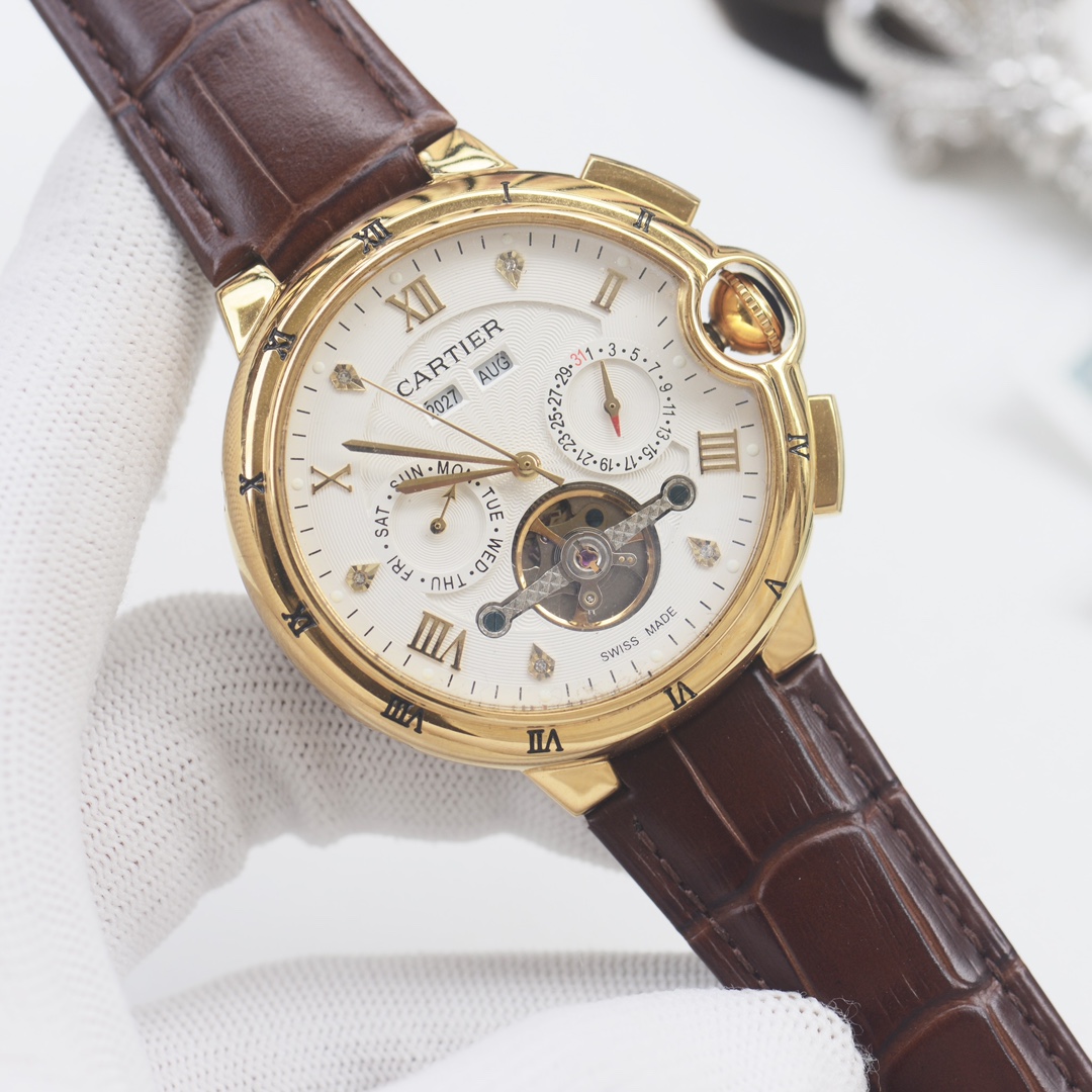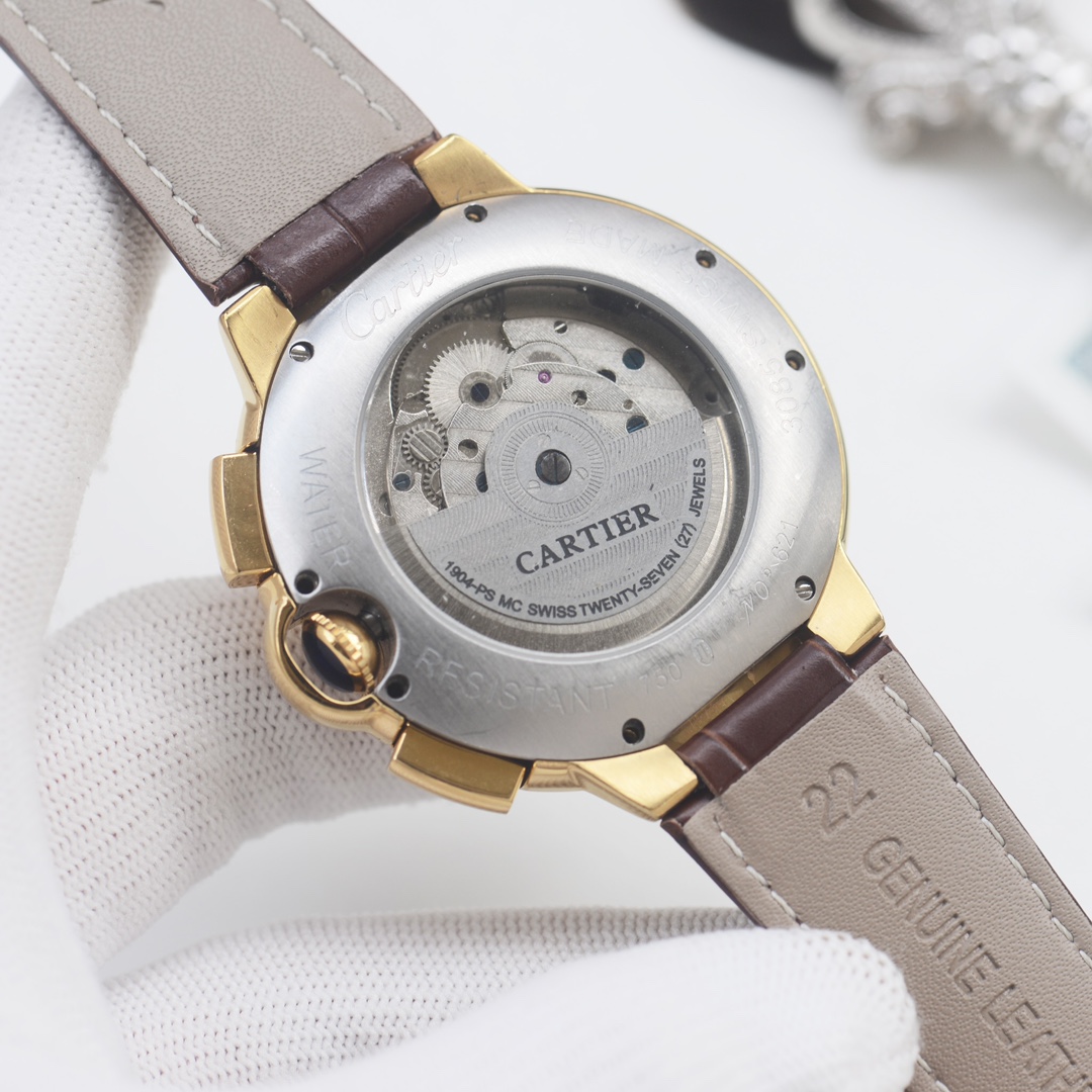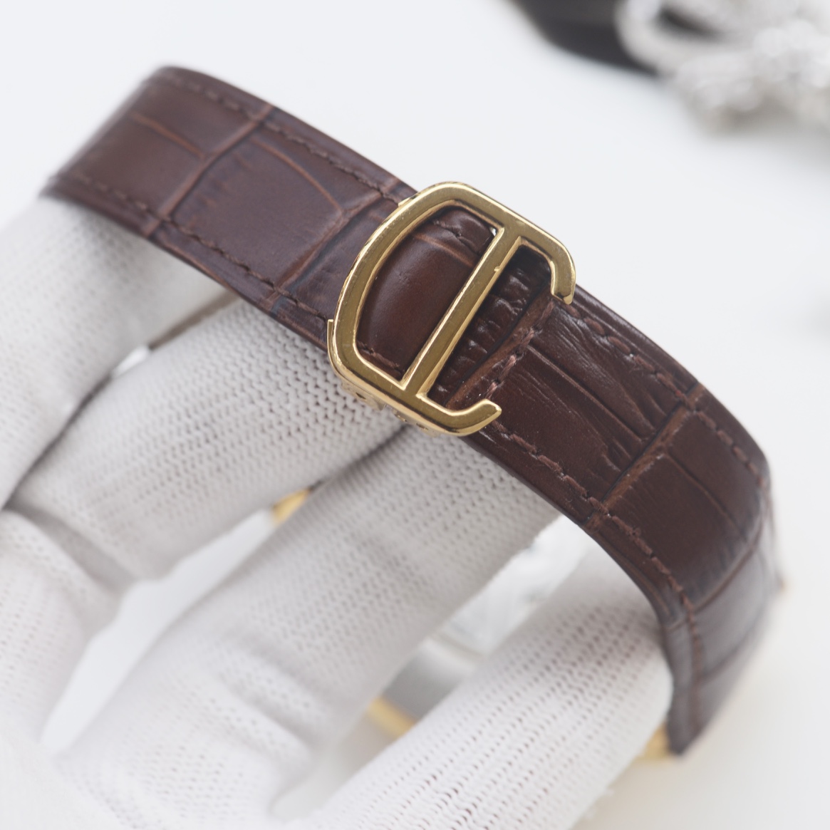 这款手表是AAAAA 1:1 质量 (非常棒). 使用了和原版一模一样的材料. 商标部分也保持了和卡地亚/Cartier一样. 图片拍摄是实物手表拍摄, 您所收到的实物保证和我们图片一模一样.