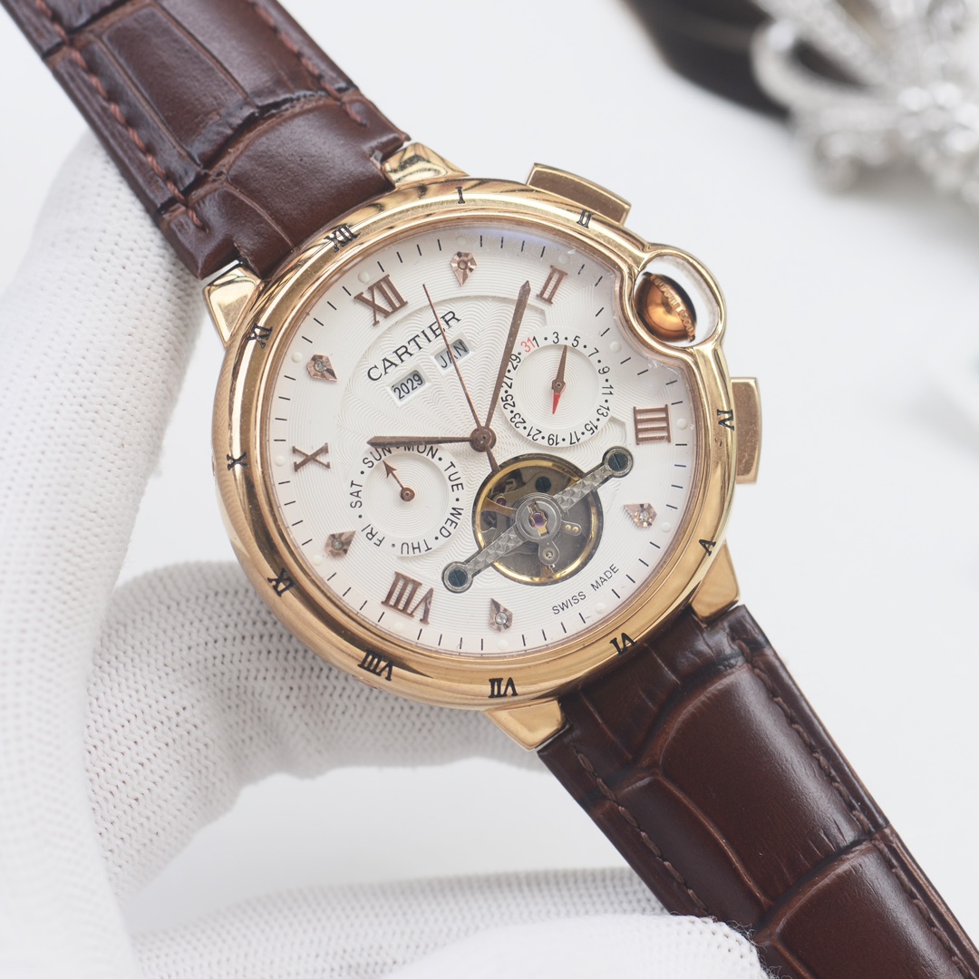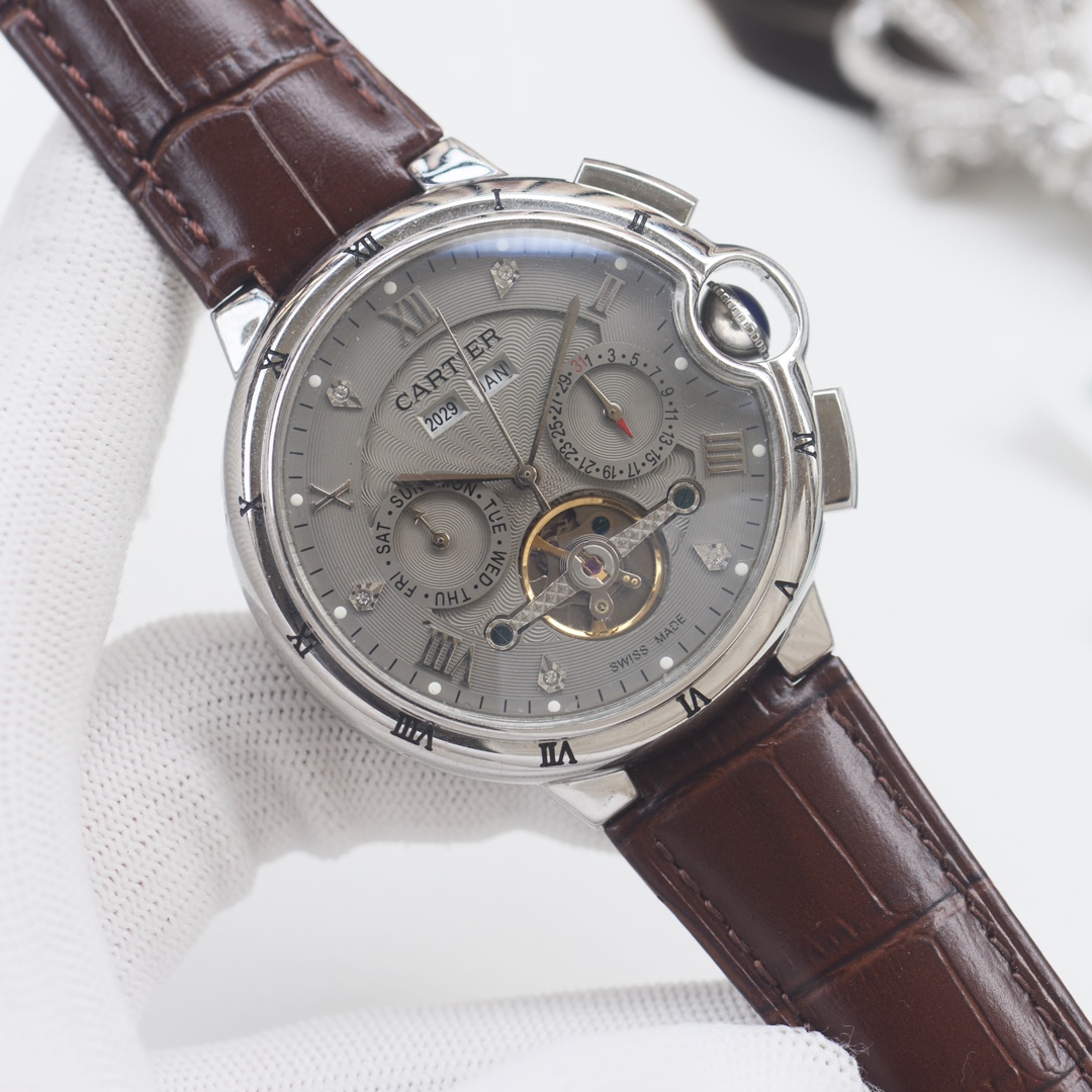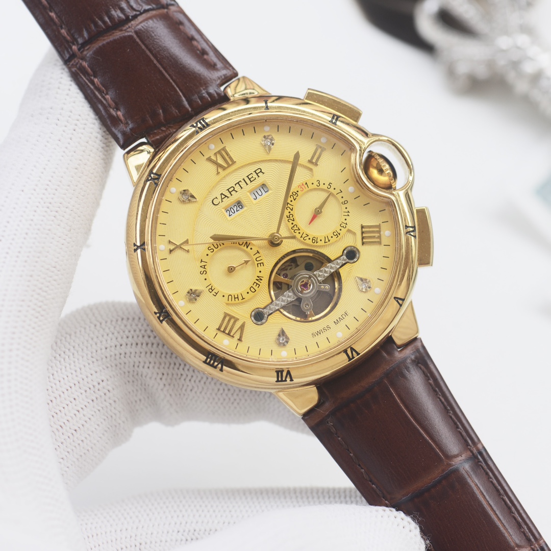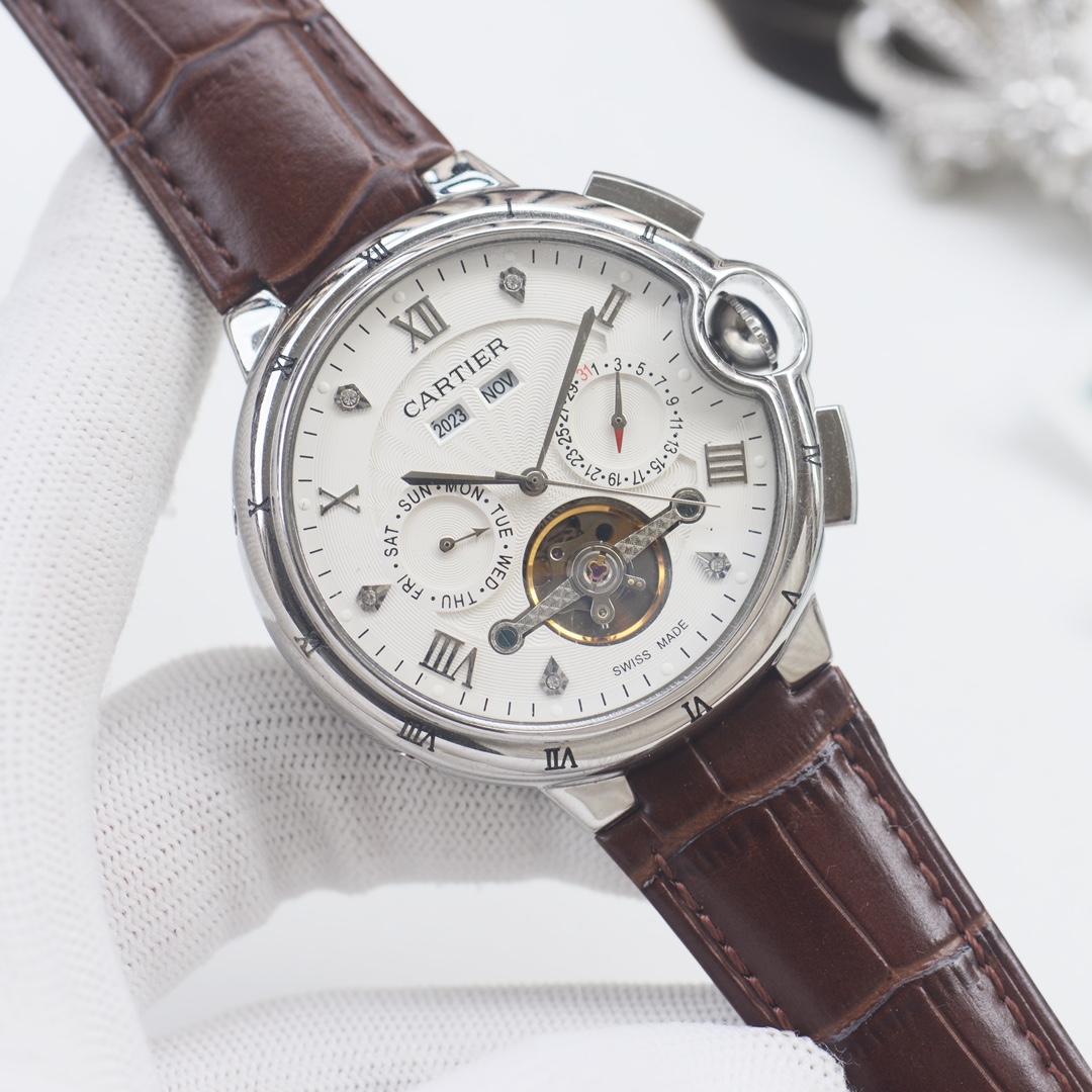 这款手表是AAAAA 1:1 质量 (非常棒). 使用了和原版一模一样的材料. 商标部分也保持了和卡地亚/Cartier一样. 图片拍摄是实物手表拍摄, 您所收到的实物保证和我们图片一模一样.